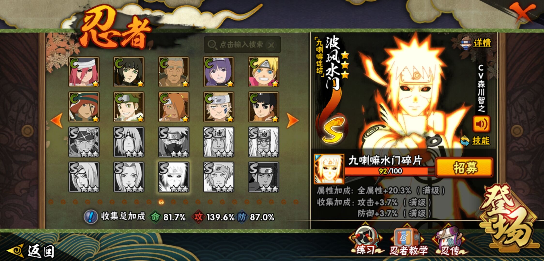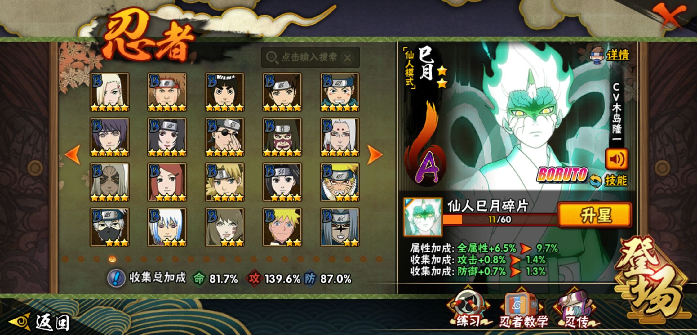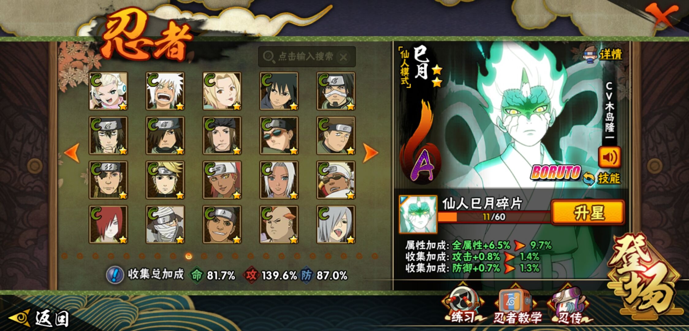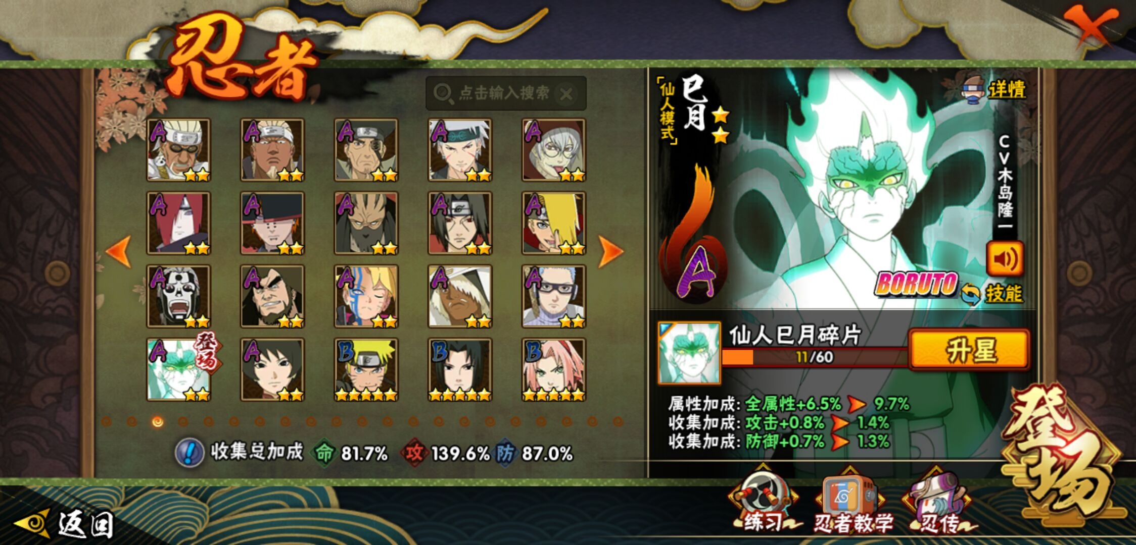 【火影忍者】【lyhy9399】战斗力:1288w;段位:中忍2阶;本服排名:126;vip:v10级;s忍:21个;a忍:36个;通灵兽:18个,s忍:暴怒第六尾漩涡鸣人|九喇嘛连结漩涡鸣人|永恒万花筒宇智波佐助|舞之豪杰自来也|传说中的三忍自来也|大蛇丸(普通)|死门迈特凯|波风水门|秽土转生波风水门|猿飞日斩(普通)|秽土转生猿飞日斩|秽土转生千手扉间|秽土转生解宇智波斑|须佐能乎宇智波鼬|神秘面具男(普通)|白面具宇智波斑|忍界大战宇智波带土|红夜之刃神秘面具男|天道佩恩|秽土转生长门|博人传大筒木金式__a忍:迈特凯(普通) 5星|猿飞阿斯玛(普通) 5星|干柿鬼鲛(普通) 5星|蝎(普通) 4星|飞段(普通) 4星|忍界大战日向宁次 3星|疾风传我爱罗 3星|忍者之路神秘面具男|万花筒写轮眼宇智波佐助|须佐能乎宇智波佐助|宇智波泉奈|忍界大战秋道丁次|幻之真容旗木卡卡西|青春爆炸迈特凯|宇智波止水(普通)|青年波风水门|近松十人卫千代|五代目水影照美冥|秽土转生桃地再不斩|忍界大战奇拉比|青年艾|忍界大战土台|漂泊武士千手扉间|半蛇斗篷药师兜|青年长门|漂泊浪客佩恩六道|绯流琥蝎|宇智波鼬(普通)|迪达拉(普通)|死司凭血飞段|羁绊神农|桃式显现漩涡博人|五代目雷影达鲁伊|六代目水影长十郎|仙人模式巳月|四代目土影黑土__通灵兽:忍犬(普通)|蓝蛇|砂之守鹤|蛤蟆吉|忍龟|镰鼬|猿魔|山椒鱼|蜃|蛤蟆仙人|鲛鲨|蛤蟆健|蛞蝓(普通)|乌鸦(普通)|蛤蟆龙|蛤蟆广|梦貘|鹰