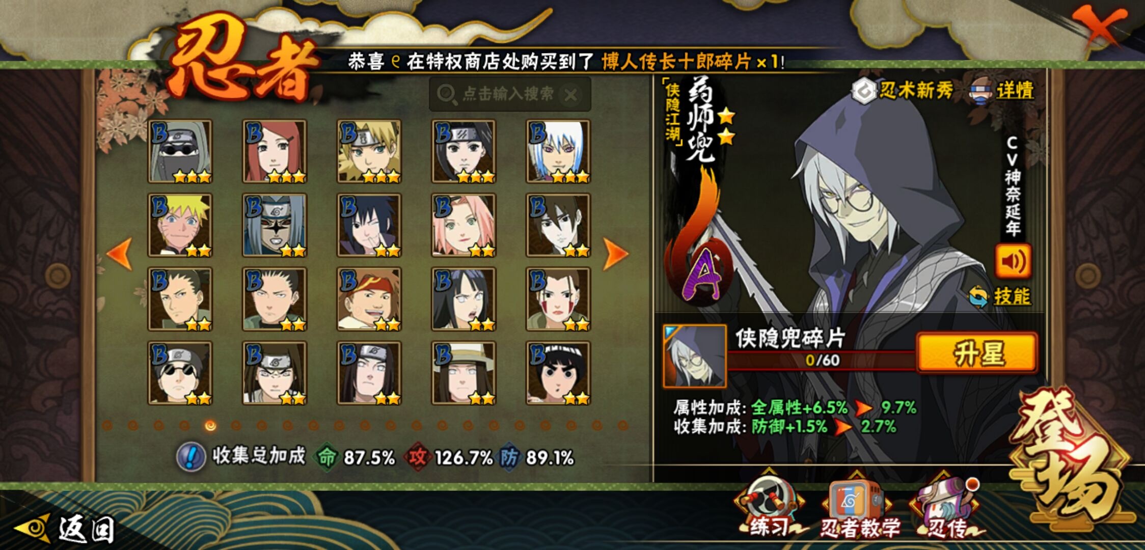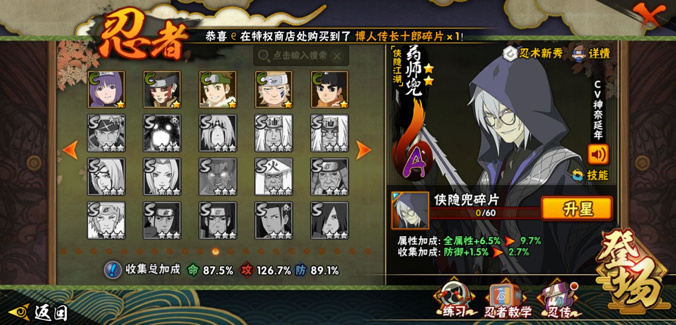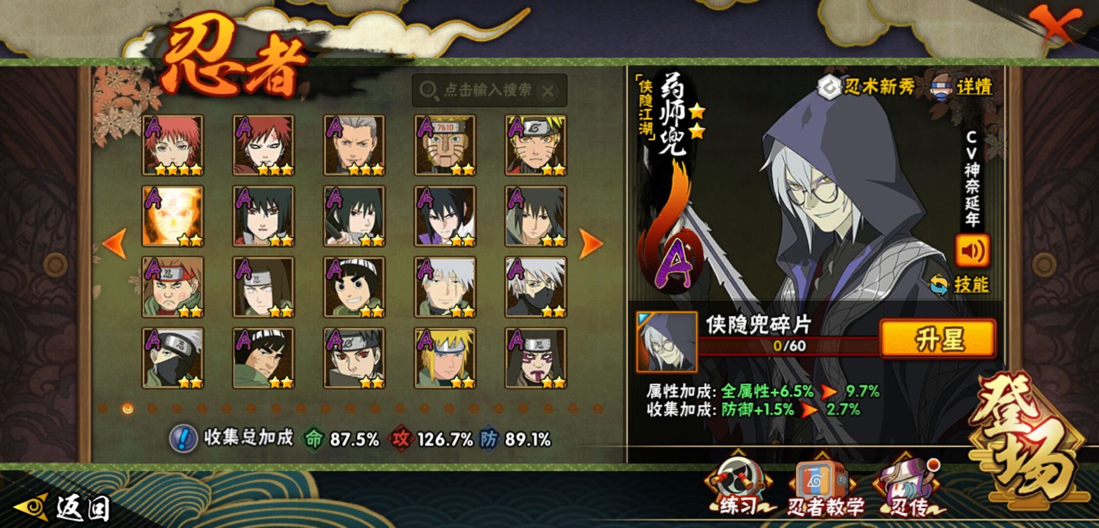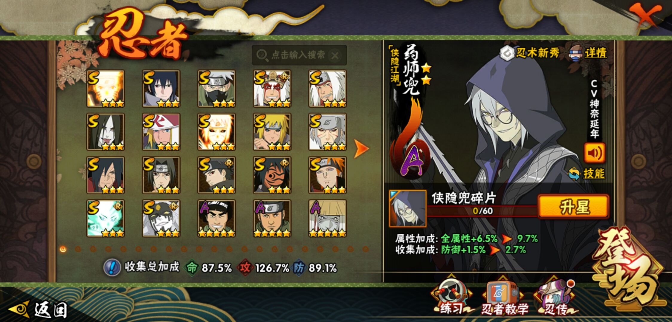 【火影忍者】【lyhy9400】战斗力:980w;段位:上忍2阶;vip:v11级;s忍:17个;a忍:47个;通灵兽:16个,s忍:九喇嘛连结漩涡鸣人|永恒万花筒宇智波佐助|须佐能乎旗木卡卡西|舞之豪杰自来也|传说中的三忍自来也|大蛇丸(普通)|波风水门|九喇嘛连结波风水门|秽土转生波风水门|秽土转生千手扉间|秽土转生解宇智波斑|须佐能乎宇智波鼬|须佐能乎宇智波止水|红夜之刃神秘面具男|天道佩恩|最终章大筒木舍人|大筒木桃式__a忍:迈特凯(普通) 5星|猿飞阿斯玛(普通) 5星|干柿鬼鲛(普通) 5星|蝎(普通) 4星|疾风传我爱罗 3星|飞段(普通) 3星|初始形态机械鸣人|仙人模式漩涡鸣人|九尾查克拉漩涡鸣人|万花筒写轮眼宇智波佐助|须佐能乎宇智波佐助|侠隐江湖宇智波佐助|宇智波泉奈|忍界大战秋道丁次|忍界大战日向宁次|忍界大战李洛克|幻之真容旗木卡卡西|万花筒写轮眼旗木卡卡西|忍界大战旗木卡卡西|青春爆炸迈特凯|宇智波止水(普通)|青年波风水门|忍界大战勘九郎|近松十人卫千代|五代目水影照美冥|秽土转生桃地再不斩|青年艾|忍界大战土台|漂泊武士千手扉间|侠隐江湖药师兜|不缘|不动|青年长门|秽土转生角都|晓大蛇丸|绯流琥蝎|宇智波鼬(普通)|新春限定宇智波鼬|迪达拉(普通)|秽土转生迪达拉|死司凭血飞段|侠隐江湖大野木|羁绊神农|桃式显现漩涡博人|五代目雷影达鲁伊|六代目水影长十郎|仙人模式巳月__通灵兽:忍犬(普通)|蓝蛇|蛤蟆吉|砂之守鹤|忍龟|镰鼬|猿魔|山椒鱼|蛞蝓(普通)|蜃|蛤蟆仙人|鲛鲨|蛤蟆健|乌鸦(普通)|蛤蟆龙|蛤蟆广
