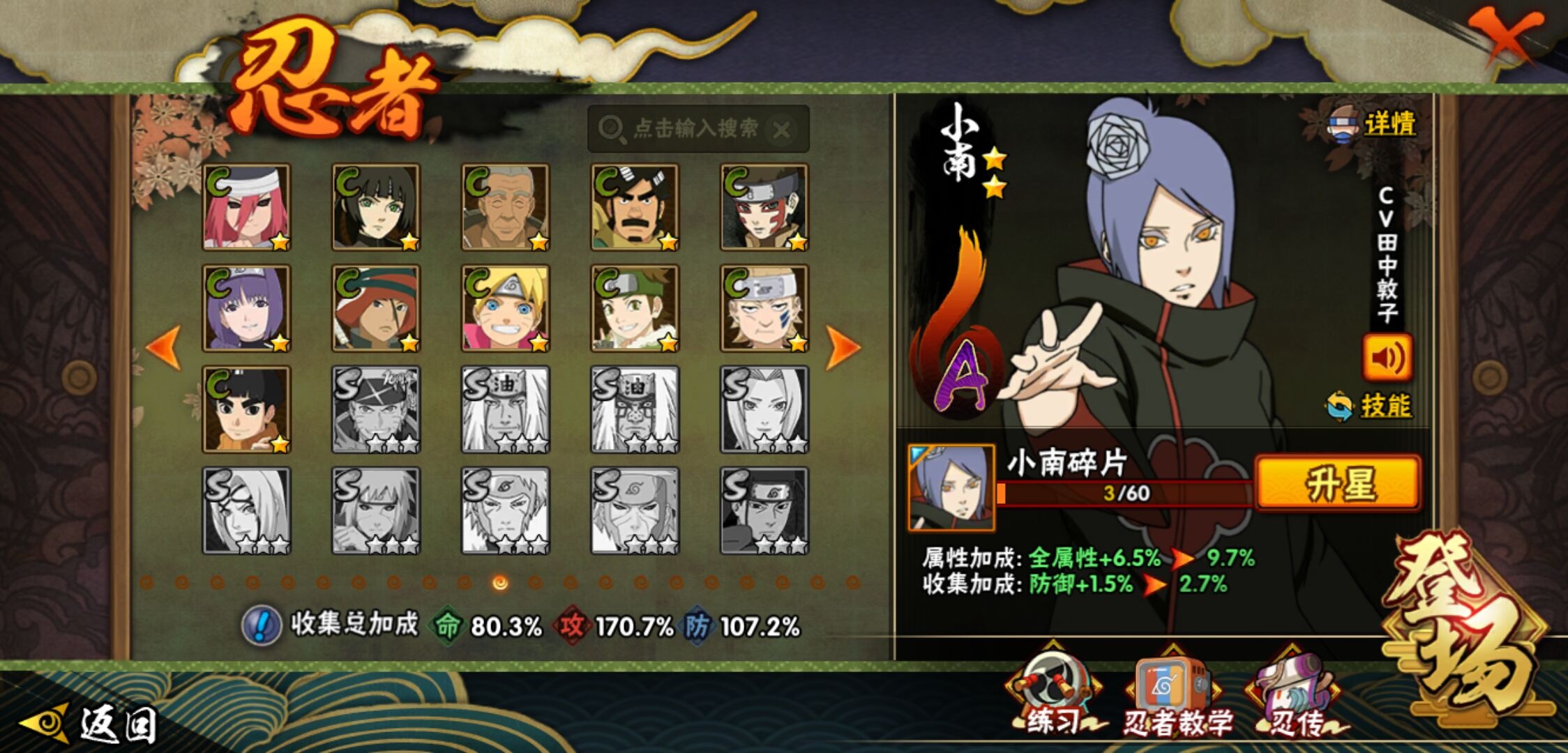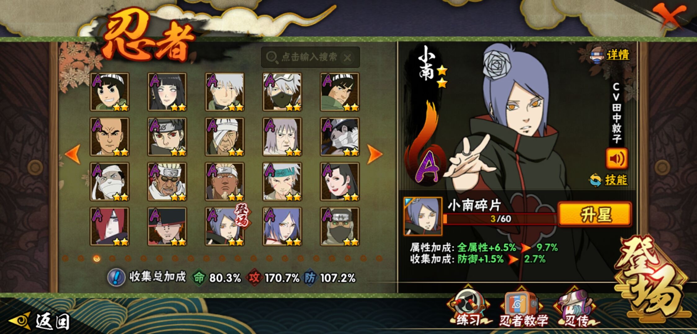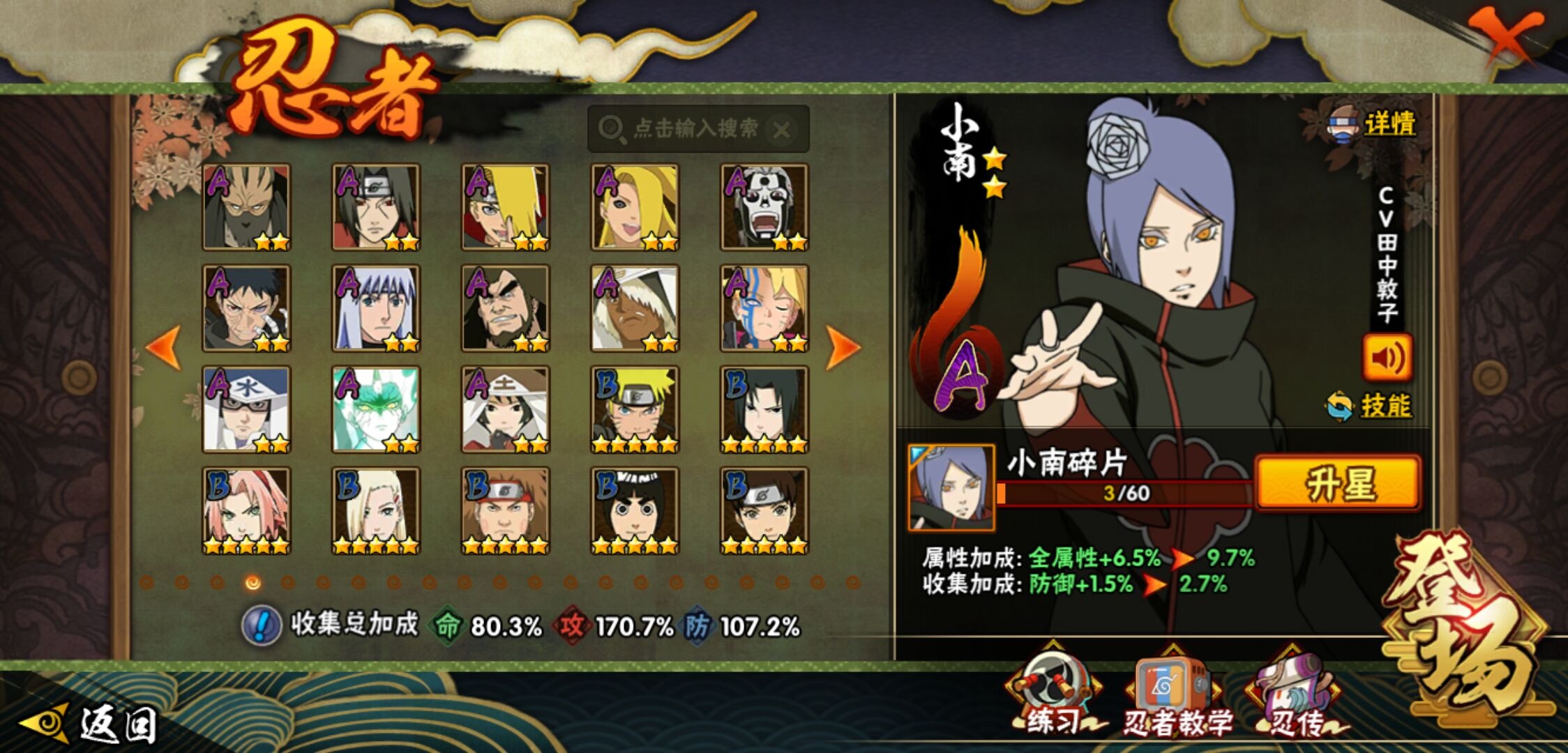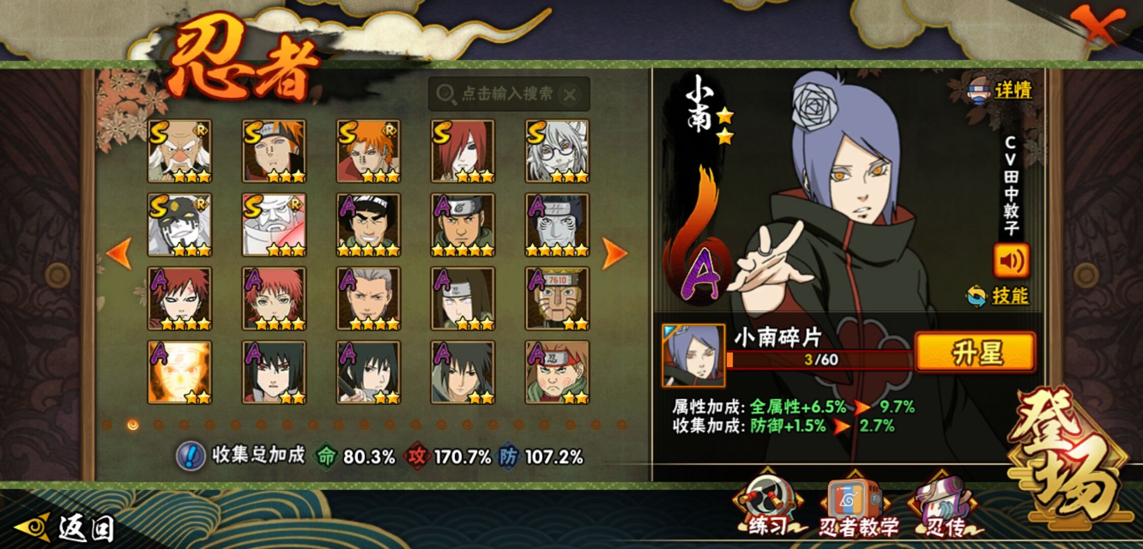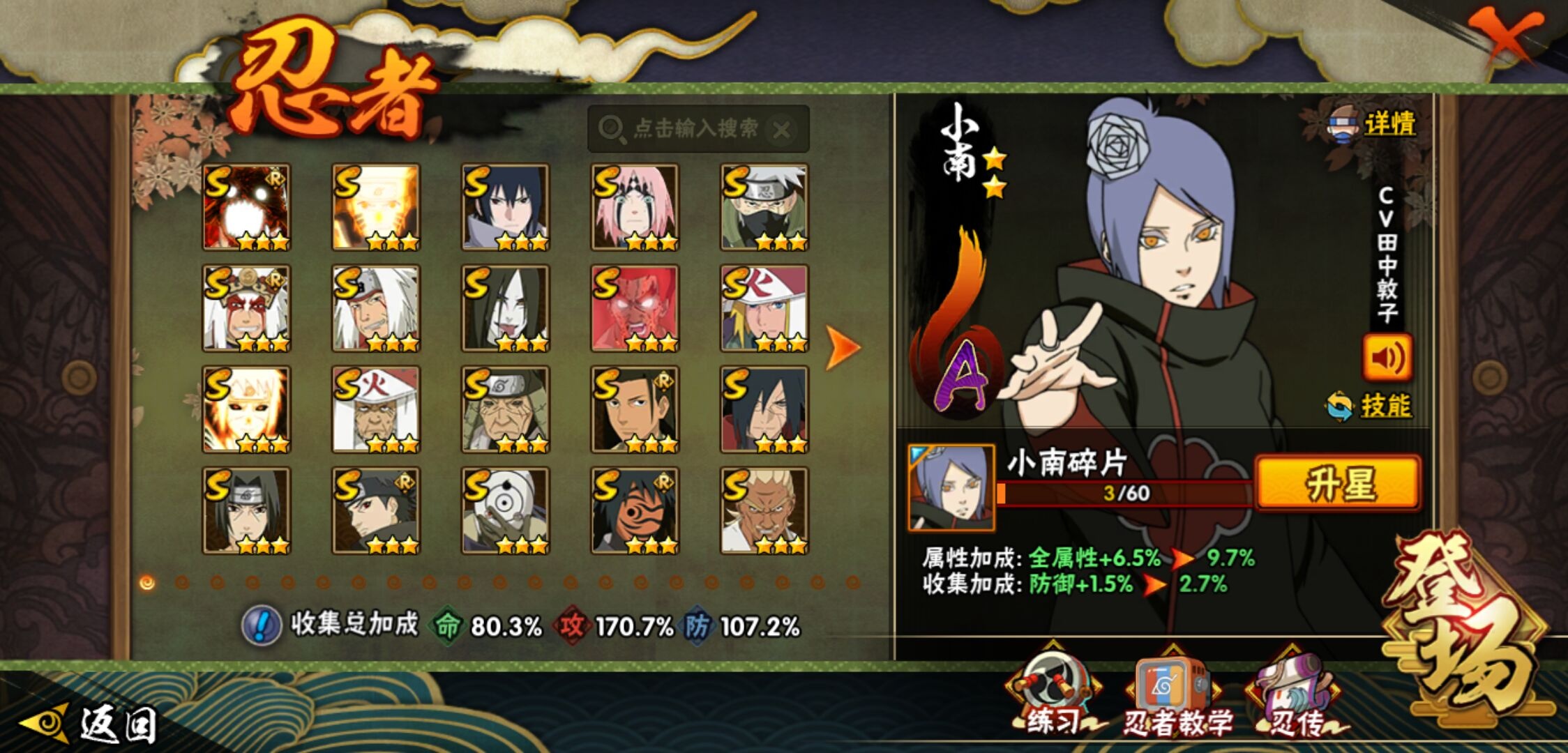 【火影忍者】【lyhy9416】战斗力:1262w;段位:上忍2阶;本服排名:147;vip:v12级;s忍:27个;a忍:46个;通灵兽:20个,s忍:暴怒第六尾漩涡鸣人|九喇嘛连结漩涡鸣人|永恒万花筒宇智波佐助|忍界大战春野樱|须佐能乎旗木卡卡西|舞之豪杰自来也|传说中的三忍自来也|大蛇丸(普通)|死门迈特凯|波风水门|九喇嘛连结波风水门|猿飞日斩(普通)|秽土转生猿飞日斩|木叶创立千手柱间|秽土转生解宇智波斑|须佐能乎宇智波鼬|须佐能乎宇智波止水|白面具宇智波斑|红夜之刃神秘面具男|忍界大战艾|忍界大战大野木|天道佩恩|超佩恩天道|秽土转生长门|仙人模式药师兜|大筒木桃式|博人传大筒木金式__a忍:迈特凯(普通) 5星|猿飞阿斯玛(普通) 5星|干柿鬼鲛(普通) 5星|疾风传我爱罗 4星|蝎(普通) 4星|飞段(普通) 4星|忍界大战日向宁次 3星|初始形态机械鸣人|九尾查克拉漩涡鸣人|万花筒写轮眼宇智波佐助|须佐能乎宇智波佐助|宇智波泉奈|忍界大战秋道丁次|忍界大战李洛克|最终章日向雏田|幻之真容旗木卡卡西|元气夏日旗木卡卡西|青春爆炸迈特凯|地陆|宇智波止水(普通)|志村团藏|近松十人卫千代|秽土转生桃地再不斩|漂泊武士桃地再不斩|奇拉比(普通)|青年艾|漂泊武士千手扉间|不缘|青年长门|漂泊浪客佩恩六道|小南(普通)|漂泊浪客小南|地怨虞角都|绯流琥蝎|宇智波鼬(普通)|迪达拉(普通)|秽土转生迪达拉|死司凭血飞段|漂泊浪客宇智波带土|加藤断|羁绊神农|五代目雷影达鲁伊|桃式显现漩涡博人|六代目水影长十郎|仙人模式巳月|四代目土影黑土__通灵兽:忍犬(普通)|蓝蛇|蛤蟆吉|忍龟|镰鼬|猿魔|山椒鱼|蜃|蛤蟆仙人|砂之守鹤|鲛鲨|蛤蟆健|乌鸦(普通)|蛞蝓(普通)|怒鬼爪|蛤蟆龙|蛤蟆广|梦貘|辛牙|鹰