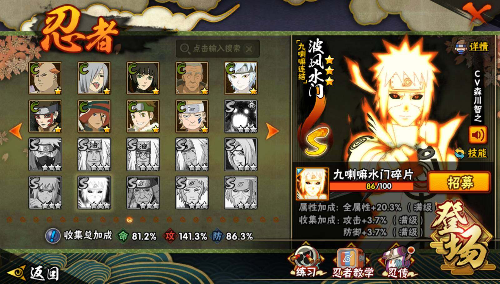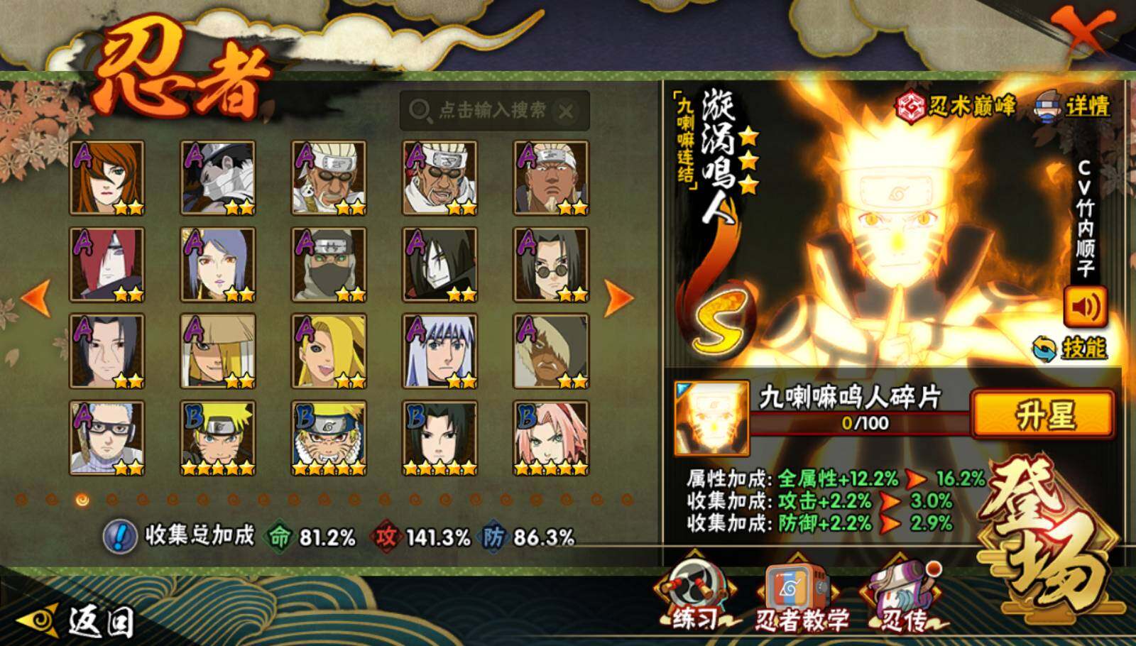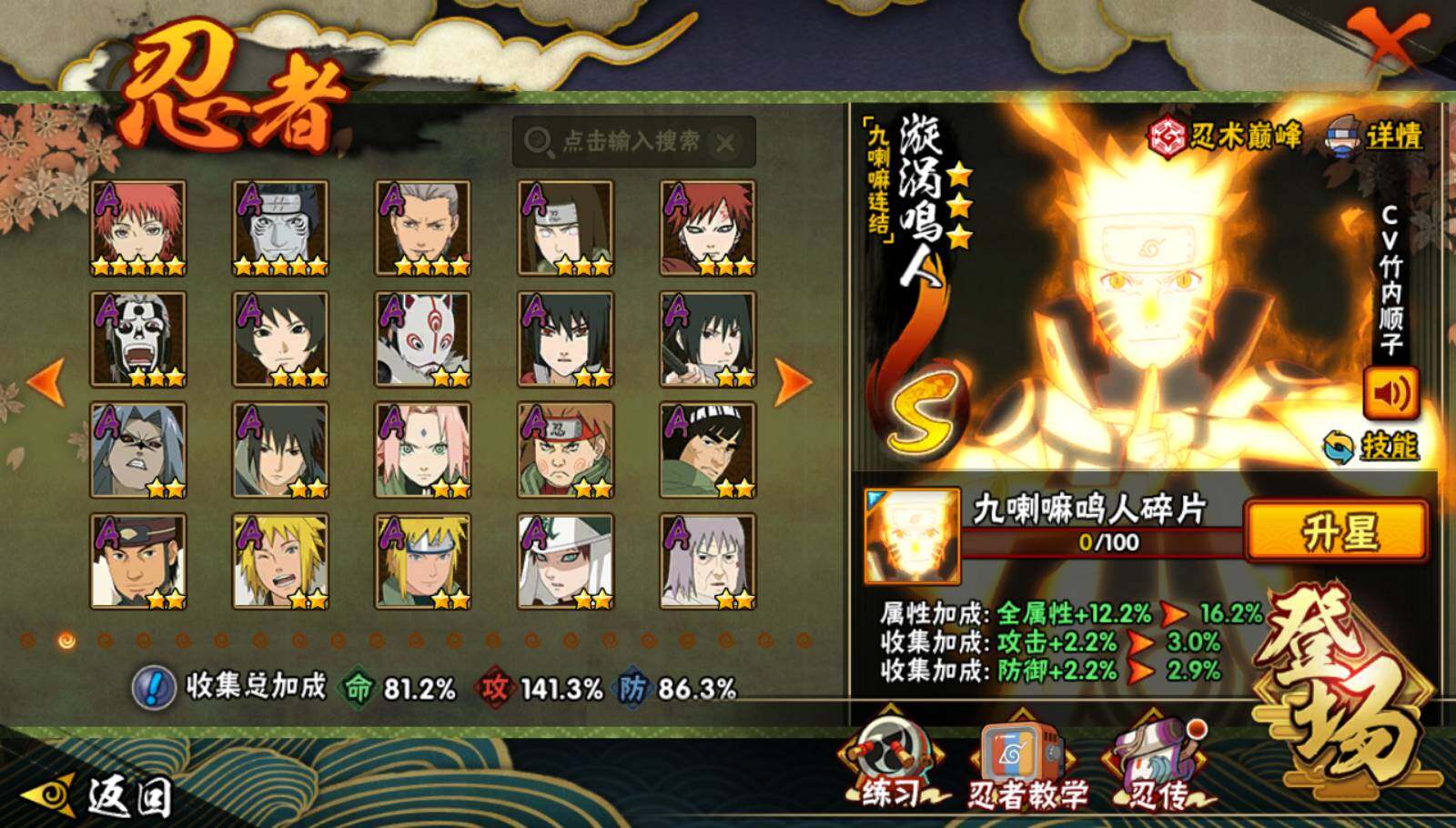 【hyyh823】v12/战力1100w/s忍18/a忍38/3星宇智波斑「秽土转生」/2星波风水门「新春限定」/2星达鲁伊「博人传」/5星猿飞阿斯玛/5星蝎/2星照美冥「五代目水影」/5星迈特凯/2星宇智波鼬「新春限定」/3星日向宁次「忍界大战」/2星奇拉比「忍界大战」/2星神秘面具男「忍者之路」/3星罗砂「四代目风影」/3星药师兜「仙人模式」/2星长十郎「六代目水影」/2星桃地再不斩「秽土转生」/2星春野樱「百豪」/4星纲手/3星迈特凯「死门」/3星佩恩·天道「超」/2星迪达拉「秽土转生」/3星飞段「死司凭血」/3星春野樱「忍界大战」/2星宇智波佐助「万花筒写轮眼」/2星我爱罗「忍界大战」/2星迪达拉/2星大蛇丸「晓」/3星宇智波佐助「永恒万花筒」/3星宇智波鼬「秽土转生」/2星长门「青年」/2星宇智波佐助「疾风传咒印」/3星宇智波带土「忍界大战」/2星角都「地怨虞」/3星波风水门/3星漩涡鸣人「九喇嘛连结」/2星秋道丁次「忍界大战」/3星千手柱间「秽土转生」/3星我爱罗「疾风传」/2星波风水门「青年」/3星自来也「舞之豪杰」/3星黑土「博人传」/2星小南「新春限定」/4星飞段/2星奇拉比/2星宇智波鼬「夏日限定」/2星加藤断/2星宇智波泉奈/4星猿飞日斩/3星大蛇丸/3星宇智波斑「秽土转生·解」/2星艾「青年」/2星迈特凯「青春爆炸」/2星宇智波佐助「须佐能乎」/2星猿飞阿斯玛「七夕限定」/5星干柿鬼鲛/2星千代「近松十人卫」/3星宇智波鼬「须佐能乎」