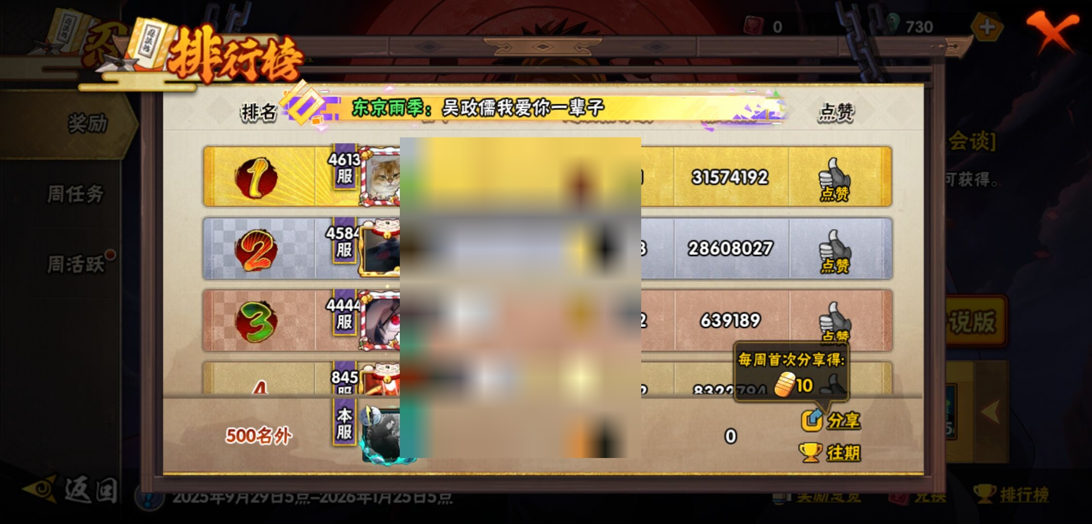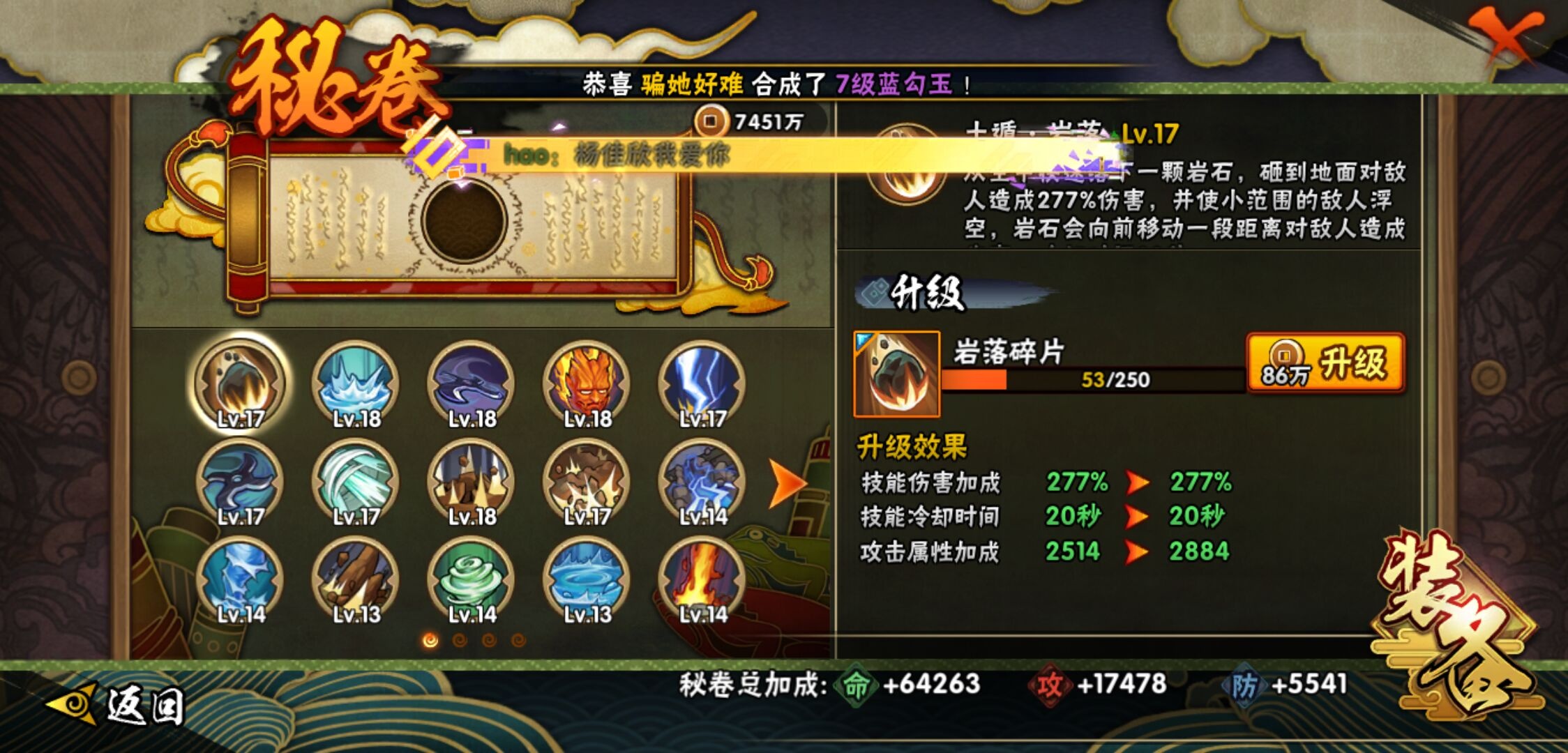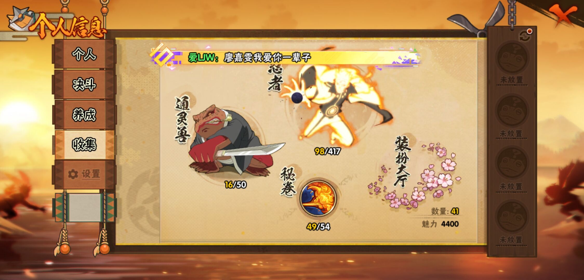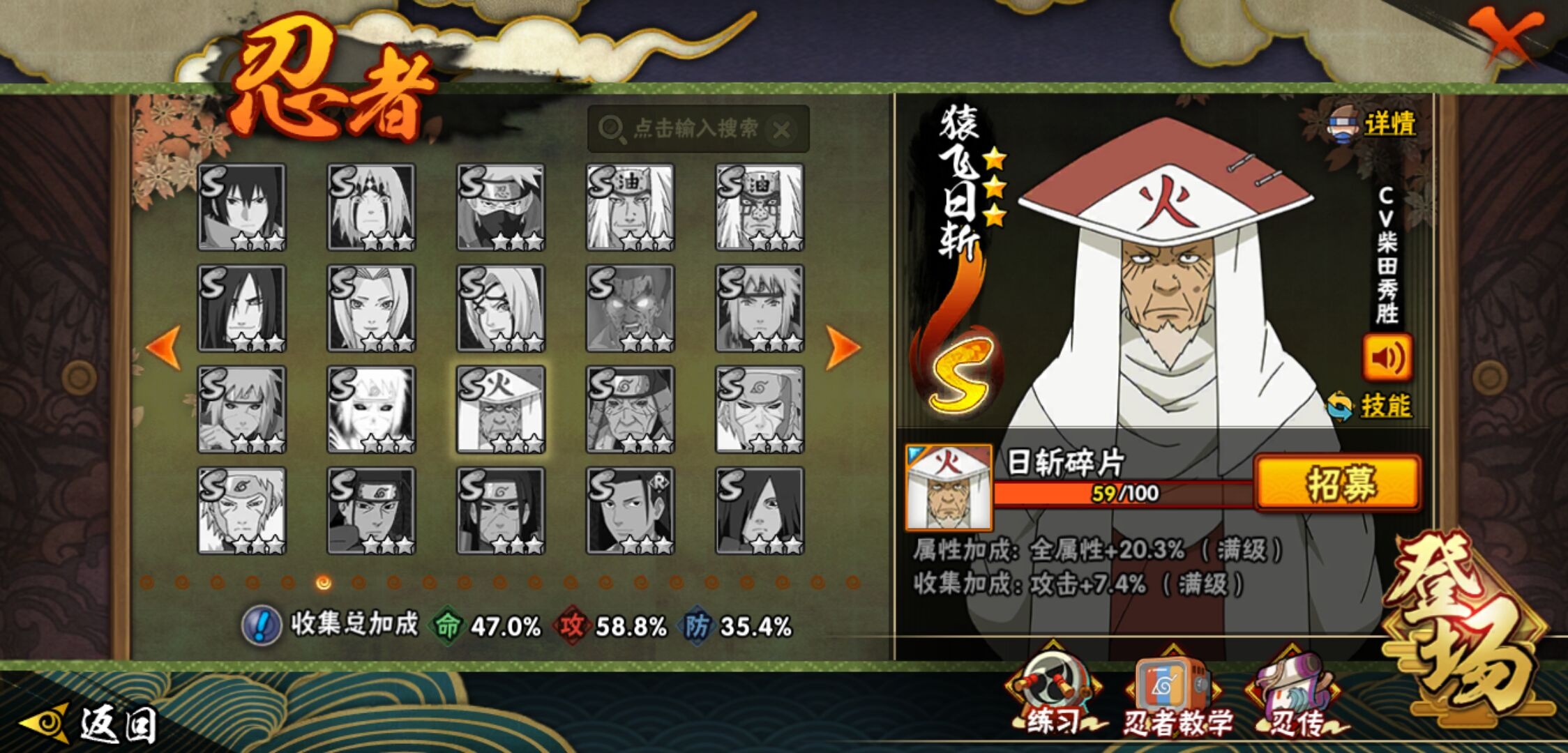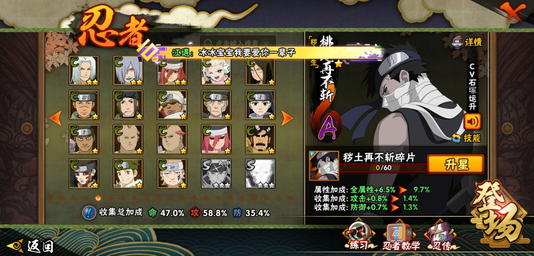 【火影忍者】【lyhy9436】战斗力:683w;段位:下忍1阶;本服排名:84;vip:v9级;s忍:6个;a忍:24个;通灵兽:15个,s忍:暴怒第六尾漩涡鸣人|舞之豪杰自来也|传说中的三忍自来也|须佐能乎宇智波鼬|天道佩恩|最终章大筒木舍人__a忍:迈特凯(普通) 5星|猿飞阿斯玛(普通) 4星|干柿鬼鲛(普通) 4星|初始形态机械鸣人|宇智波泉奈|忍界大战秋道丁次|幻之真容旗木卡卡西|青春爆炸迈特凯|桃地再不斩|秽土转生桃地再不斩|忍界大战奇拉比|忍界大战土台|黑绝|秽土转生角都|绯流琥蝎|蝎(普通)|宇智波鼬(普通)|夏日限定宇智波鼬|迪达拉(普通)|飞段(普通)|死司凭血飞段|漂泊浪客宇智波带土|侠隐江湖大野木|羁绊神农__通灵兽:忍犬(普通)|蓝蛇|蛤蟆吉|忍龟|砂之守鹤|镰鼬|猿魔|山椒鱼|蜃|蛤蟆仙人|鲛鲨|蛤蟆健|乌鸦(普通)|蛞蝓(普通)|蛤蟆龙