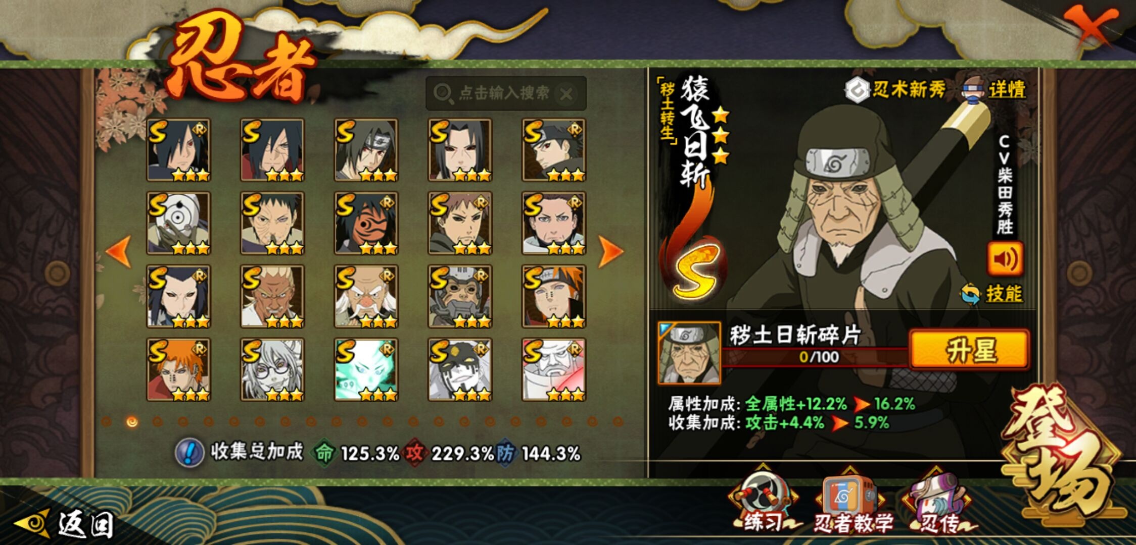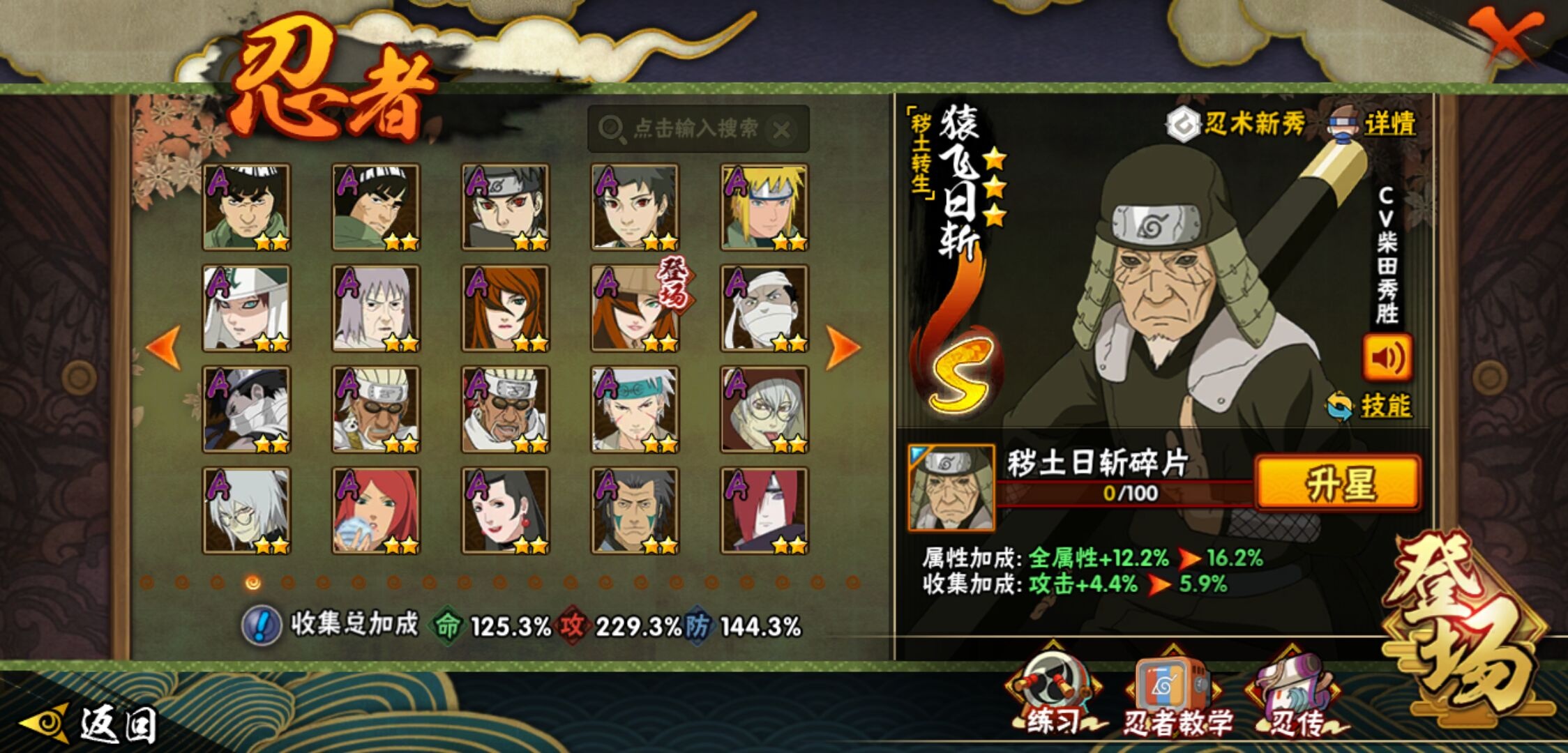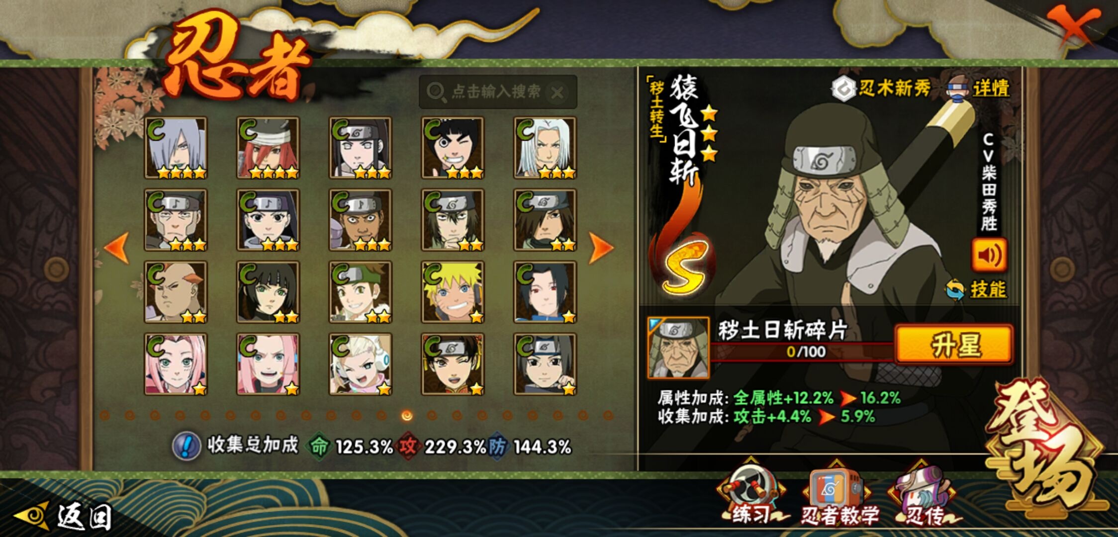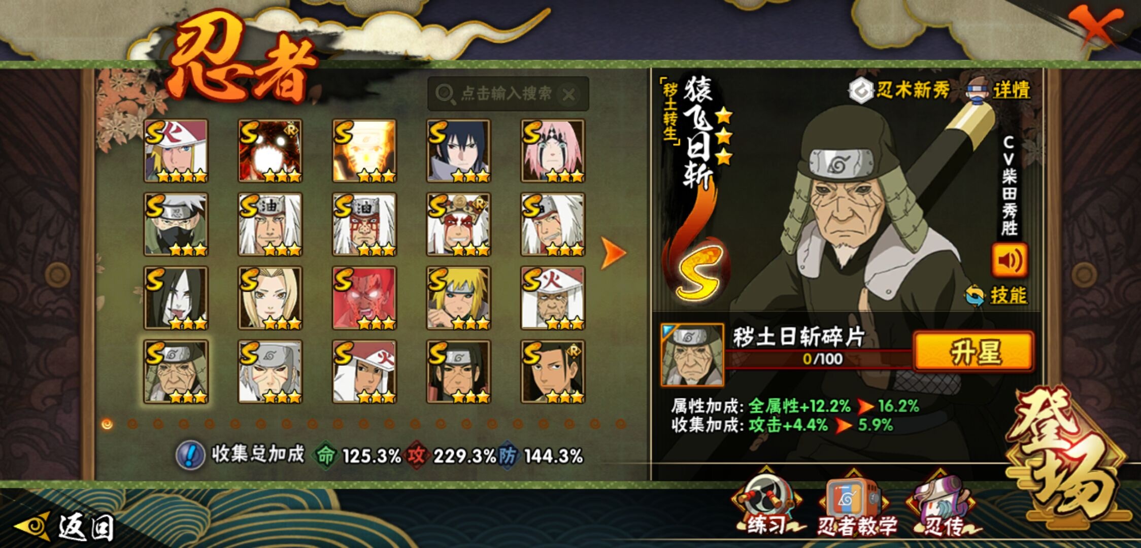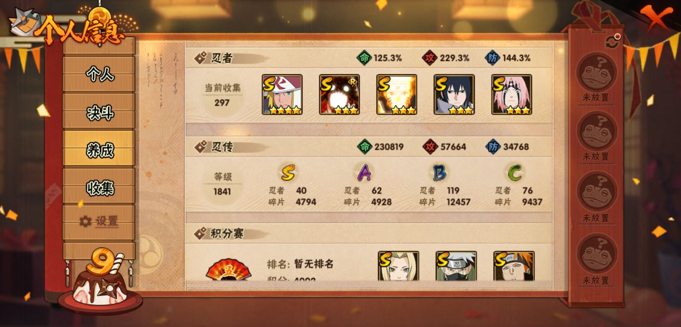 【火影忍者】【lyhy9440】战斗力:1850w;段位:上忍2阶;本服排名:50;vip:v13级;s忍:40个;a忍:62个;通灵兽:24个,s忍:波风水门 4星|暴怒第六尾漩涡鸣人|九喇嘛连结漩涡鸣人|永恒万花筒宇智波佐助|忍界大战春野樱|须佐能乎旗木卡卡西|自来也(普通)|仙人模式自来也|舞之豪杰自来也|传说中的三忍自来也|大蛇丸(普通)|纲手(普通)|死门迈特凯|秽土转生波风水门|猿飞日斩(普通)|秽土转生猿飞日斩|秽土转生千手扉间|千手柱间(普通)|秽土转生千手柱间|木叶创立千手柱间|木叶创立宇智波斑|秽土转生解宇智波斑|须佐能乎宇智波鼬|秽土转生宇智波鼬|须佐能乎宇智波止水|白面具宇智波斑|忍界大战宇智波带土|红夜之刃神秘面具男|四代目风影罗砂|初代目风影烈斗|秽土转生三代目风影|忍界大战艾|忍界大战大野木|秽土转生半藏|天道佩恩|超佩恩天道|仙人模式药师兜|最终章大筒木舍人|大筒木桃式|博人传大筒木金式__a忍:迈特凯(普通) 5星|猿飞阿斯玛(普通) 5星|蝎(普通) 5星|干柿鬼鲛(普通) 5星|疾风传我爱罗 4星|死司凭血飞段 4星|青年艾 3星|忍界大战土台 3星|飞段(普通) 3星|初始形态机械鸣人|忍者之路神秘面具男|九尾查克拉漩涡鸣人 3星|万花筒写轮眼宇智波佐助|须佐能乎宇智波佐助|宇智波泉奈|忍界大战秋道丁次|忍界大战日向宁次|忍界大战李洛克|最终章日向雏田|幻之真容旗木卡卡西|忍界大战迈特凯|青春爆炸迈特凯|宇智波止水(普通)|新春限定宇智波止水|青年波风水门|忍界大战我爱罗|近松十人卫千代|五代目水影照美冥|侠隐江湖照美冥|漂泊武士桃地再不斩|秽土转生桃地再不斩|忍界大战奇拉比|奇拉比(普通)|漂泊武士千手扉间|半蛇斗篷药师兜|侠隐江湖药师兜|不风|不缘|不动|青年长门|漂泊浪客佩恩六道|小南(普通)|漂泊浪客小南|地怨虞角都|秽土转生角都|绯流琥蝎|百机操演蝎|晓创生蝎|宇智波鼬(普通)|夏日限定宇智波鼬|迪达拉(普通)|秽土转生迪达拉|新春限定迪达拉|漂泊浪客宇智波带土|侠隐江湖大野木|羁绊神农|木叶上忍猿飞木叶丸|六代目水影长十郎|五代目雷影达鲁伊|桃式显现漩涡博人|仙人模式巳月|四代目土影黑土__通灵兽:忍犬(普通)|蓝蛇|蛤蟆吉|忍龟|镰鼬|猿魔|山椒鱼|砂之守鹤|蛞蝓(普通)|蜃|蛤蟆仙人|鲛鲨|蛤蟆健|乌鸦(普通)|蛤蟆龙|熊猫|螃蟹|蛤蟆广|梦貘|鹰|辛牙|蜘蛛|怒鬼爪|怒鬼无臂