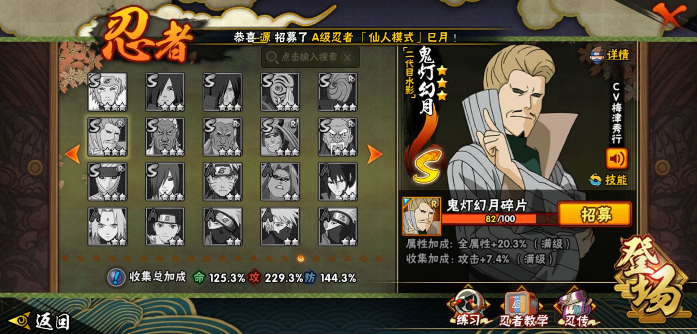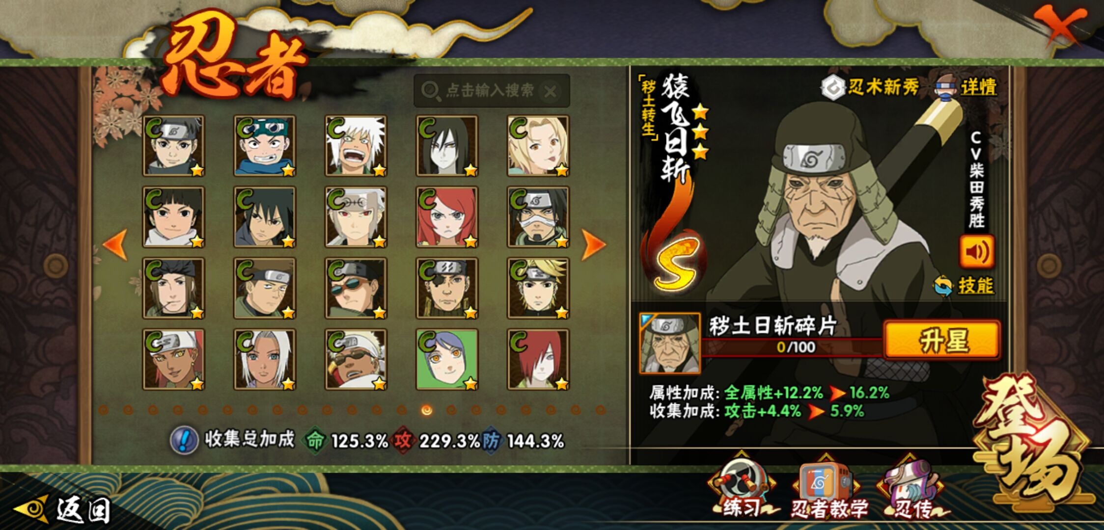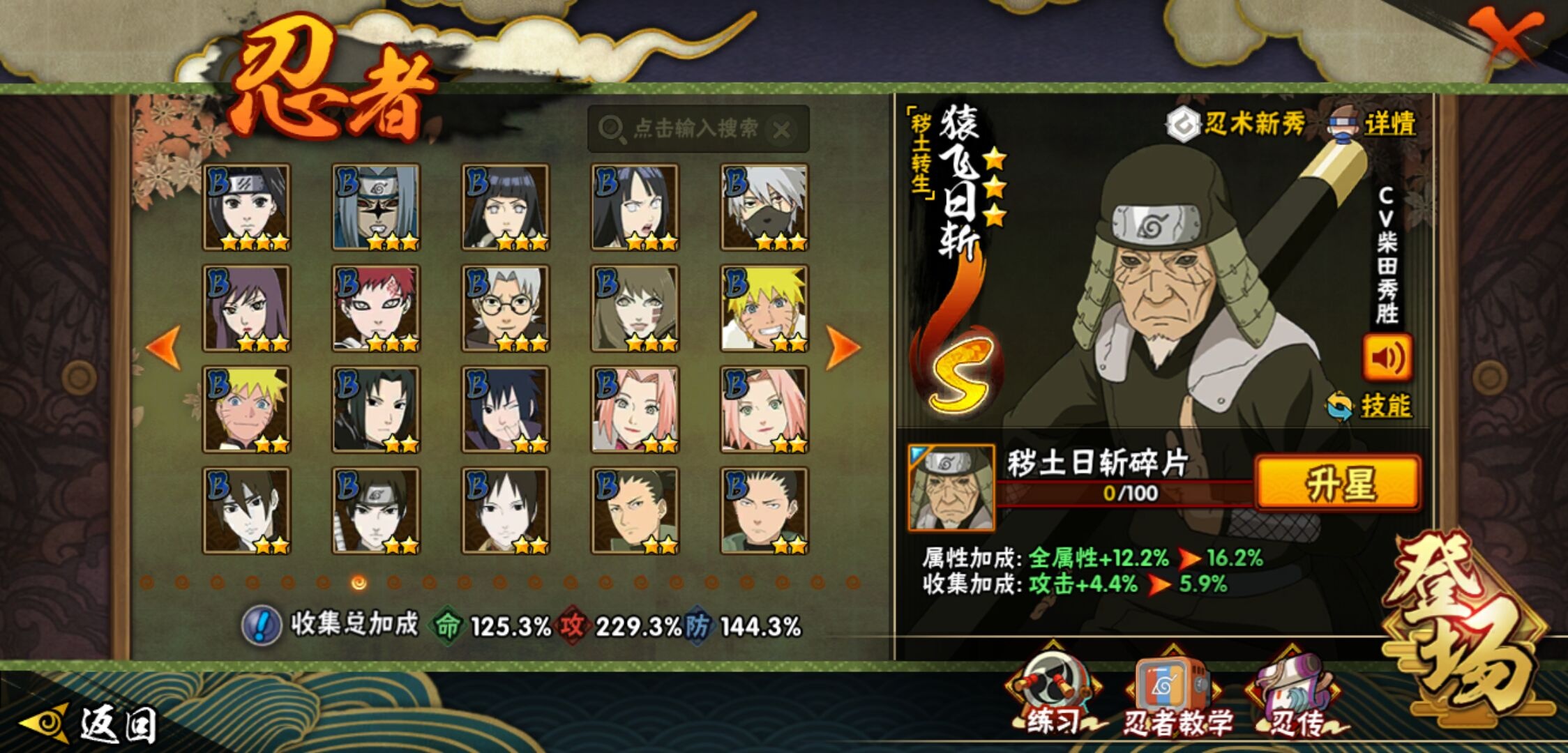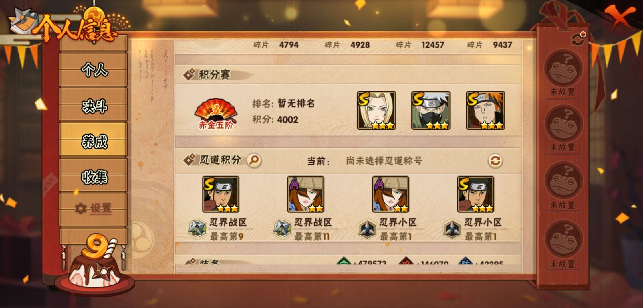 【火影忍者】【lyhy9440】战斗力:1850w;段位:上忍2阶;本服排名:50;vip:v13级;s忍:40个;a忍:62个;通灵兽:24个,s忍:波风水门 4星|暴怒第六尾漩涡鸣人|九喇嘛连结漩涡鸣人|永恒万花筒宇智波佐助|忍界大战春野樱|须佐能乎旗木卡卡西|自来也(普通)|仙人模式自来也|舞之豪杰自来也|传说中的三忍自来也|大蛇丸(普通)|纲手(普通)|死门迈特凯|秽土转生波风水门|猿飞日斩(普通)|秽土转生猿飞日斩|秽土转生千手扉间|千手柱间(普通)|秽土转生千手柱间|木叶创立千手柱间|木叶创立宇智波斑|秽土转生解宇智波斑|须佐能乎宇智波鼬|秽土转生宇智波鼬|须佐能乎宇智波止水|白面具宇智波斑|忍界大战宇智波带土|红夜之刃神秘面具男|四代目风影罗砂|初代目风影烈斗|秽土转生三代目风影|忍界大战艾|忍界大战大野木|秽土转生半藏|天道佩恩|超佩恩天道|仙人模式药师兜|最终章大筒木舍人|大筒木桃式|博人传大筒木金式__a忍:迈特凯(普通) 5星|猿飞阿斯玛(普通) 5星|蝎(普通) 5星|干柿鬼鲛(普通) 5星|疾风传我爱罗 4星|死司凭血飞段 4星|青年艾 3星|忍界大战土台 3星|飞段(普通) 3星|初始形态机械鸣人|忍者之路神秘面具男|九尾查克拉漩涡鸣人 3星|万花筒写轮眼宇智波佐助|须佐能乎宇智波佐助|宇智波泉奈|忍界大战秋道丁次|忍界大战日向宁次|忍界大战李洛克|最终章日向雏田|幻之真容旗木卡卡西|忍界大战迈特凯|青春爆炸迈特凯|宇智波止水(普通)|新春限定宇智波止水|青年波风水门|忍界大战我爱罗|近松十人卫千代|五代目水影照美冥|侠隐江湖照美冥|漂泊武士桃地再不斩|秽土转生桃地再不斩|忍界大战奇拉比|奇拉比(普通)|漂泊武士千手扉间|半蛇斗篷药师兜|侠隐江湖药师兜|不风|不缘|不动|青年长门|漂泊浪客佩恩六道|小南(普通)|漂泊浪客小南|地怨虞角都|秽土转生角都|绯流琥蝎|百机操演蝎|晓创生蝎|宇智波鼬(普通)|夏日限定宇智波鼬|迪达拉(普通)|秽土转生迪达拉|新春限定迪达拉|漂泊浪客宇智波带土|侠隐江湖大野木|羁绊神农|木叶上忍猿飞木叶丸|六代目水影长十郎|五代目雷影达鲁伊|桃式显现漩涡博人|仙人模式巳月|四代目土影黑土__通灵兽:忍犬(普通)|蓝蛇|蛤蟆吉|忍龟|镰鼬|猿魔|山椒鱼|砂之守鹤|蛞蝓(普通)|蜃|蛤蟆仙人|鲛鲨|蛤蟆健|乌鸦(普通)|蛤蟆龙|熊猫|螃蟹|蛤蟆广|梦貘|鹰|辛牙|蜘蛛|怒鬼爪|怒鬼无臂