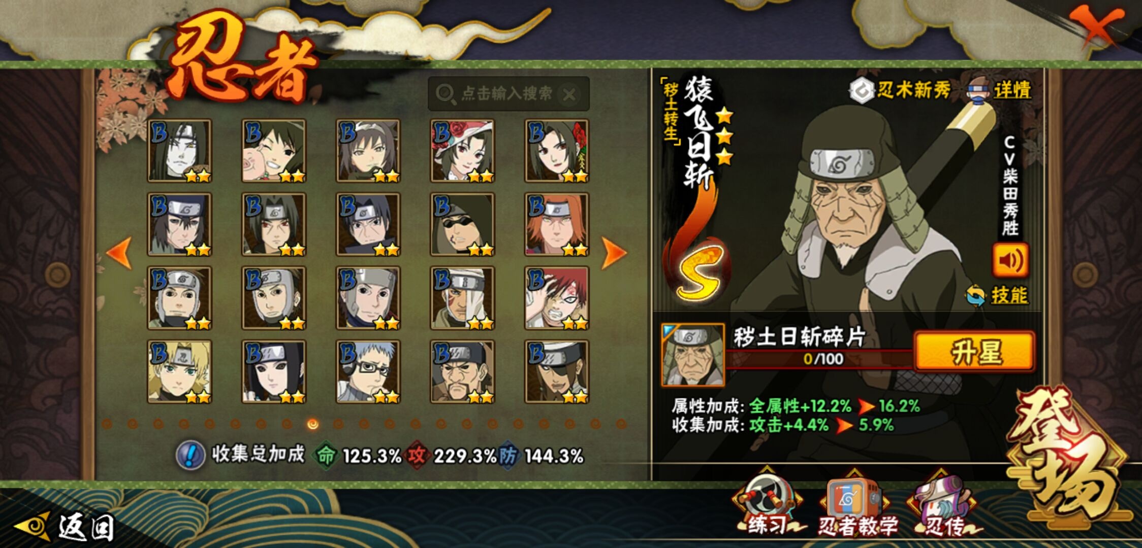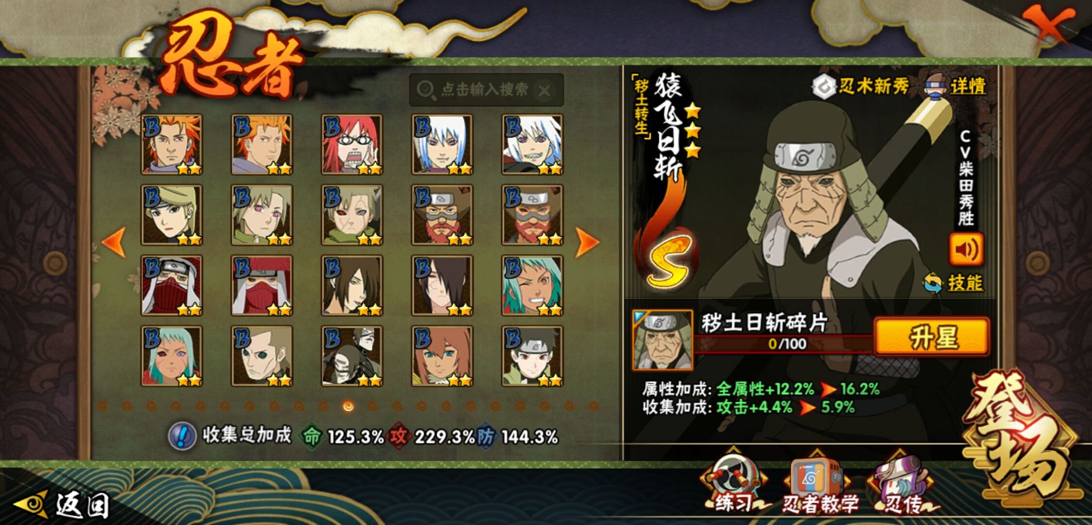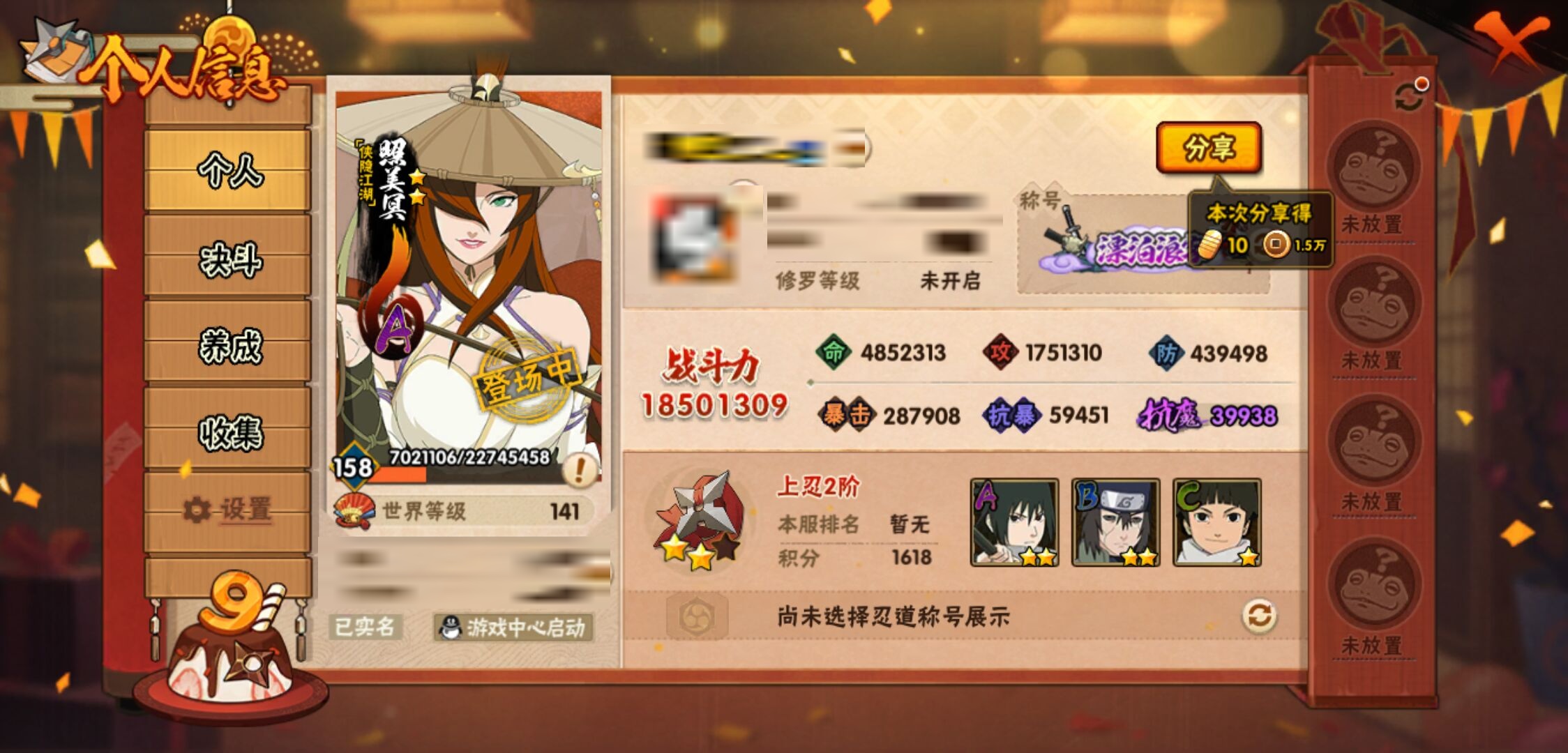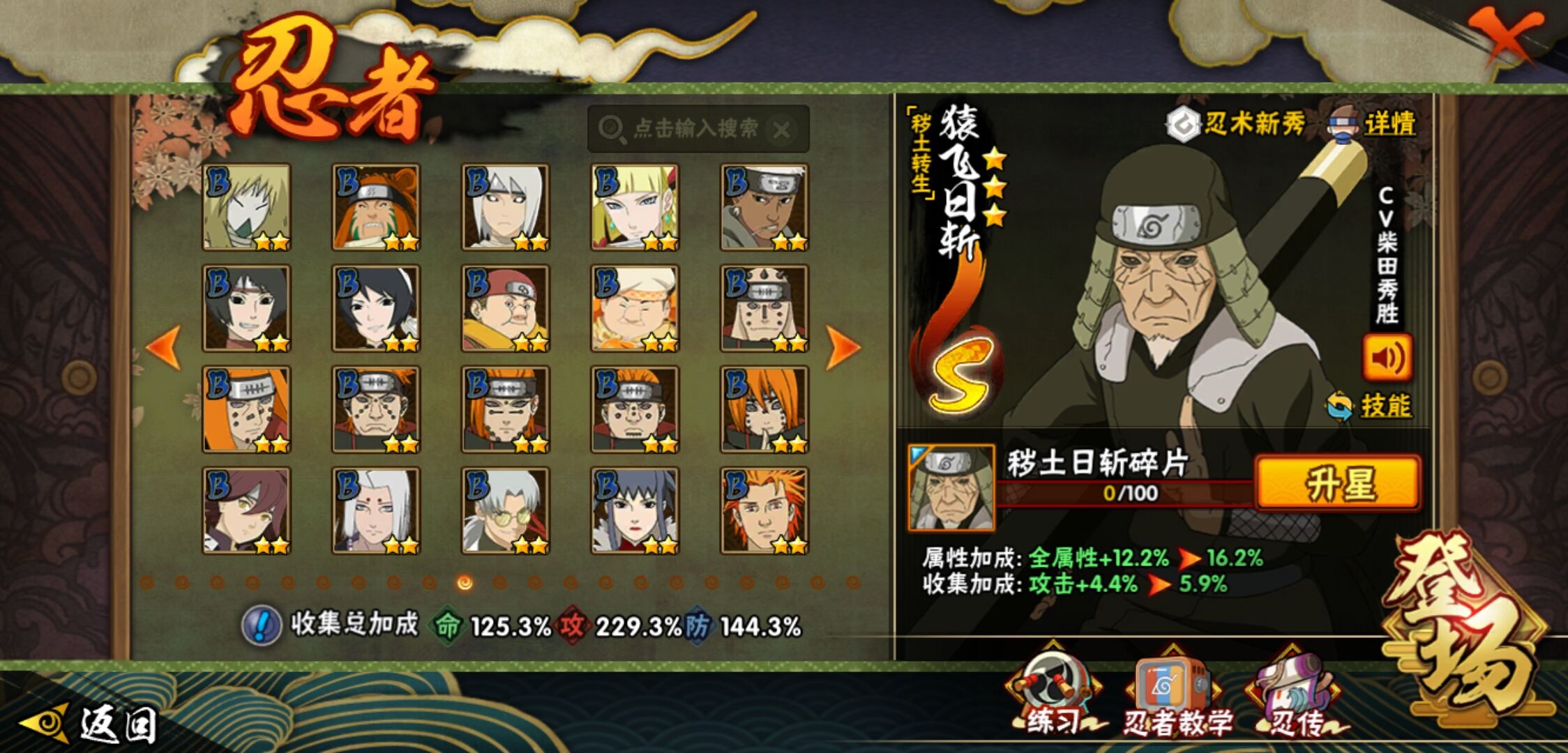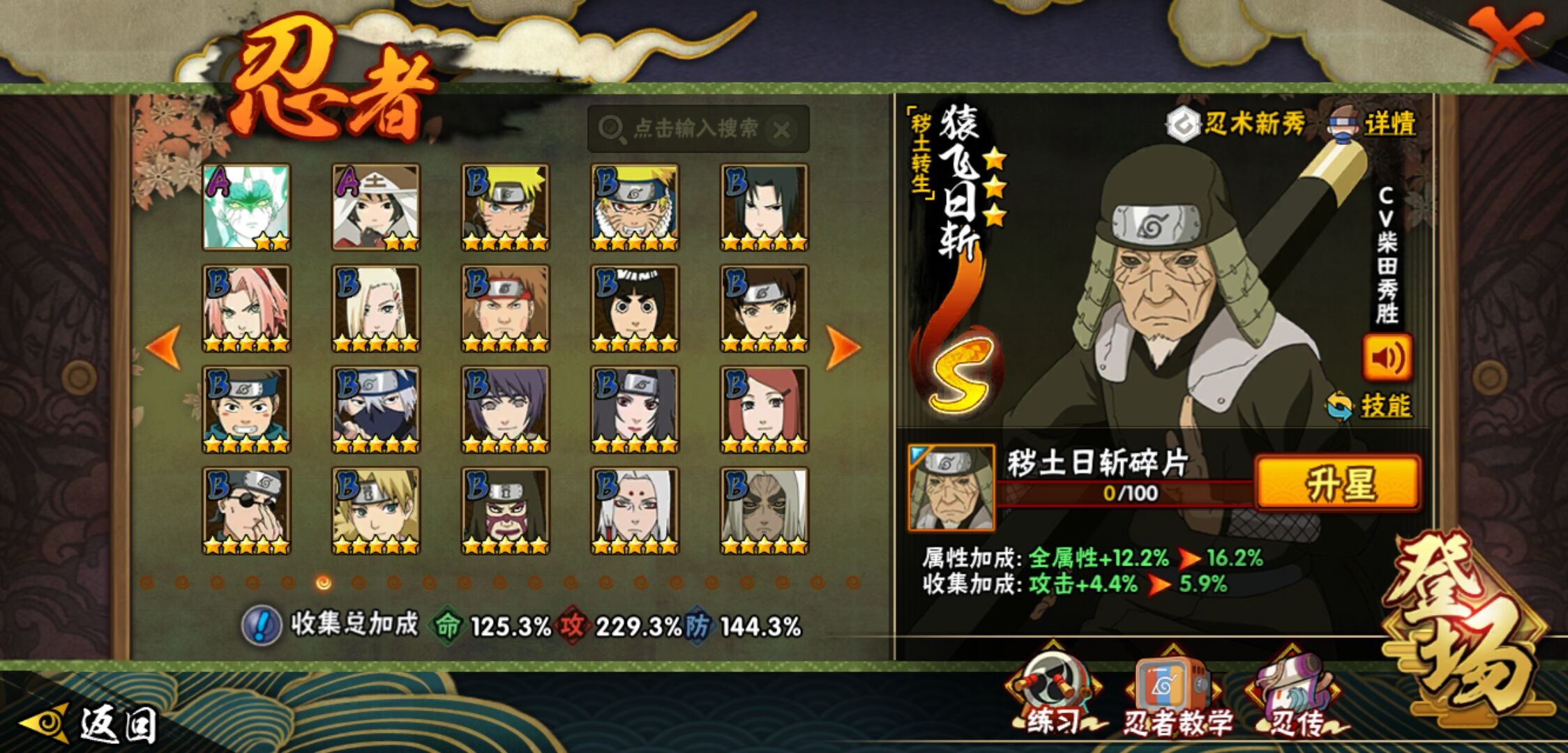 【火影忍者】【lyhy9440】战斗力:1850w;段位:上忍2阶;本服排名:50;vip:v13级;s忍:40个;a忍:62个;通灵兽:24个,s忍:波风水门 4星|暴怒第六尾漩涡鸣人|九喇嘛连结漩涡鸣人|永恒万花筒宇智波佐助|忍界大战春野樱|须佐能乎旗木卡卡西|自来也(普通)|仙人模式自来也|舞之豪杰自来也|传说中的三忍自来也|大蛇丸(普通)|纲手(普通)|死门迈特凯|秽土转生波风水门|猿飞日斩(普通)|秽土转生猿飞日斩|秽土转生千手扉间|千手柱间(普通)|秽土转生千手柱间|木叶创立千手柱间|木叶创立宇智波斑|秽土转生解宇智波斑|须佐能乎宇智波鼬|秽土转生宇智波鼬|须佐能乎宇智波止水|白面具宇智波斑|忍界大战宇智波带土|红夜之刃神秘面具男|四代目风影罗砂|初代目风影烈斗|秽土转生三代目风影|忍界大战艾|忍界大战大野木|秽土转生半藏|天道佩恩|超佩恩天道|仙人模式药师兜|最终章大筒木舍人|大筒木桃式|博人传大筒木金式__a忍:迈特凯(普通) 5星|猿飞阿斯玛(普通) 5星|蝎(普通) 5星|干柿鬼鲛(普通) 5星|疾风传我爱罗 4星|死司凭血飞段 4星|青年艾 3星|忍界大战土台 3星|飞段(普通) 3星|初始形态机械鸣人|忍者之路神秘面具男|九尾查克拉漩涡鸣人 3星|万花筒写轮眼宇智波佐助|须佐能乎宇智波佐助|宇智波泉奈|忍界大战秋道丁次|忍界大战日向宁次|忍界大战李洛克|最终章日向雏田|幻之真容旗木卡卡西|忍界大战迈特凯|青春爆炸迈特凯|宇智波止水(普通)|新春限定宇智波止水|青年波风水门|忍界大战我爱罗|近松十人卫千代|五代目水影照美冥|侠隐江湖照美冥|漂泊武士桃地再不斩|秽土转生桃地再不斩|忍界大战奇拉比|奇拉比(普通)|漂泊武士千手扉间|半蛇斗篷药师兜|侠隐江湖药师兜|不风|不缘|不动|青年长门|漂泊浪客佩恩六道|小南(普通)|漂泊浪客小南|地怨虞角都|秽土转生角都|绯流琥蝎|百机操演蝎|晓创生蝎|宇智波鼬(普通)|夏日限定宇智波鼬|迪达拉(普通)|秽土转生迪达拉|新春限定迪达拉|漂泊浪客宇智波带土|侠隐江湖大野木|羁绊神农|木叶上忍猿飞木叶丸|六代目水影长十郎|五代目雷影达鲁伊|桃式显现漩涡博人|仙人模式巳月|四代目土影黑土__通灵兽:忍犬(普通)|蓝蛇|蛤蟆吉|忍龟|镰鼬|猿魔|山椒鱼|砂之守鹤|蛞蝓(普通)|蜃|蛤蟆仙人|鲛鲨|蛤蟆健|乌鸦(普通)|蛤蟆龙|熊猫|螃蟹|蛤蟆广|梦貘|鹰|辛牙|蜘蛛|怒鬼爪|怒鬼无臂