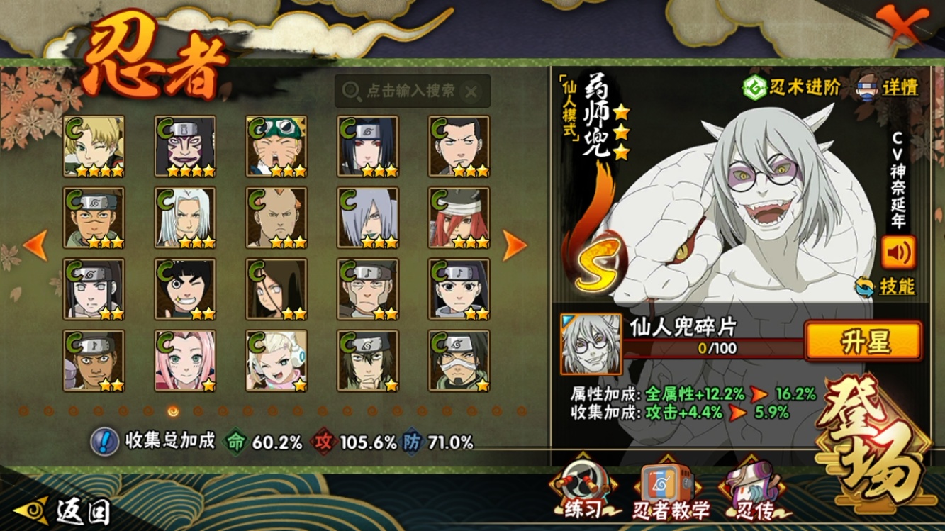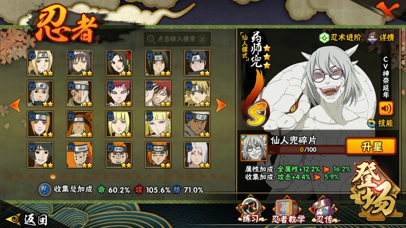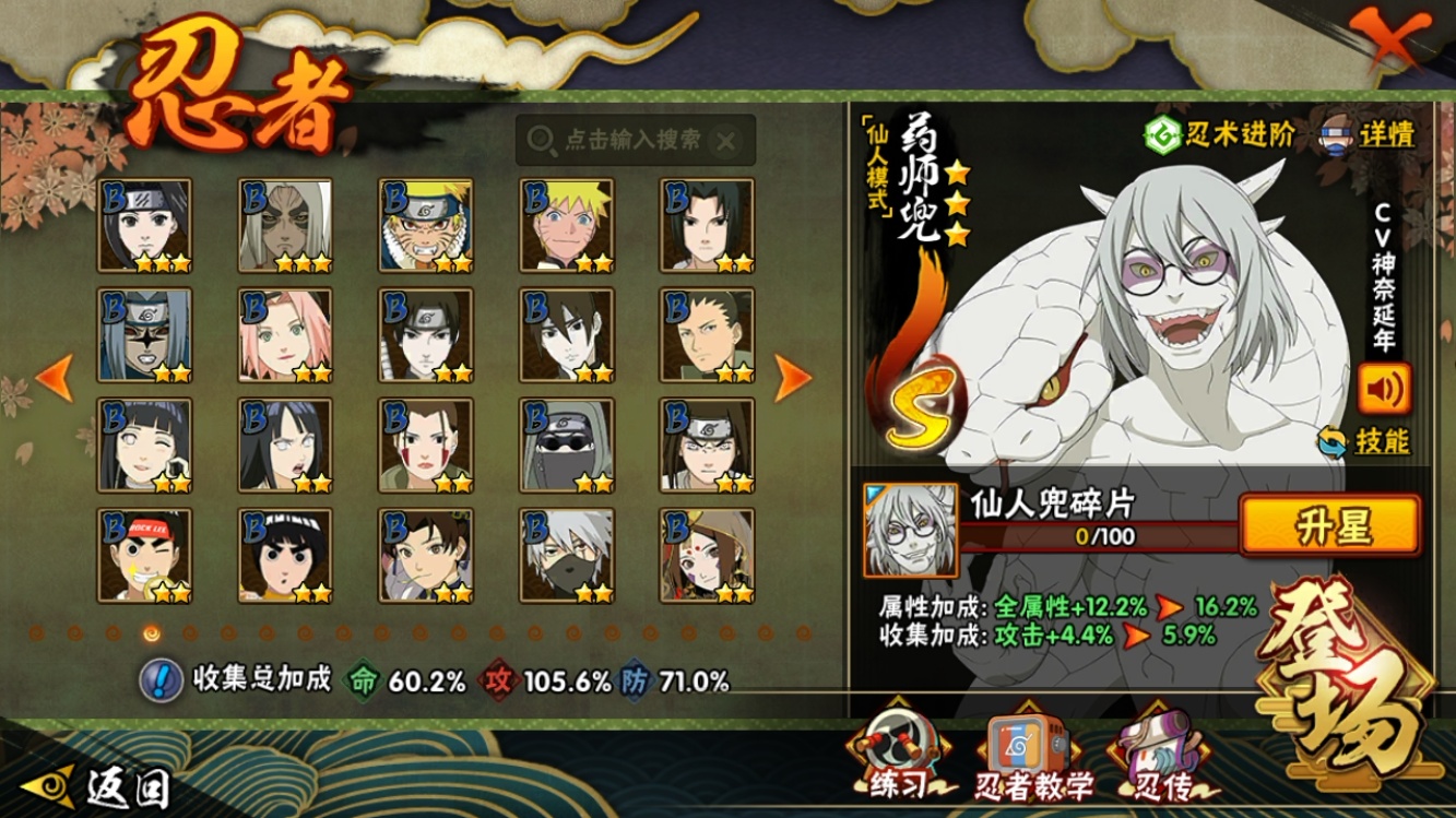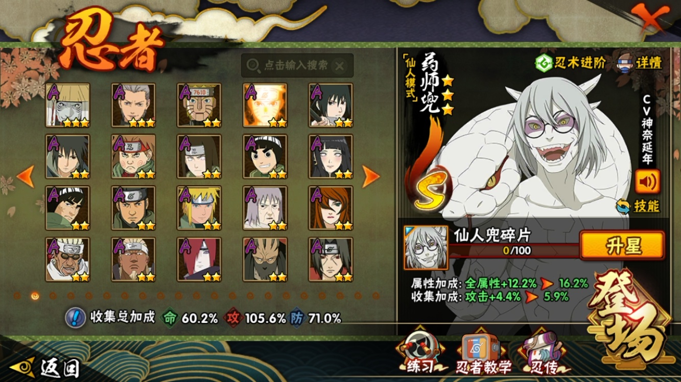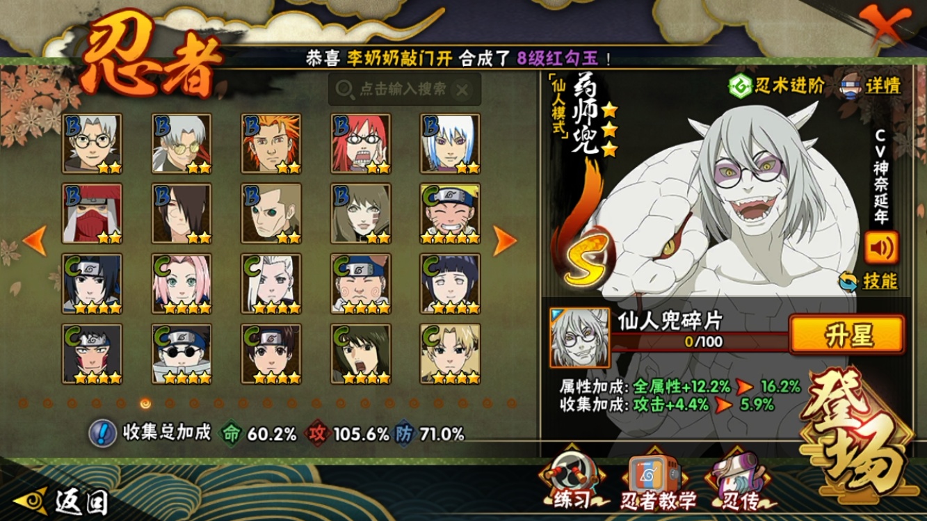 【火影忍者】【lyhy9449】战斗力:825w;段位:上忍2阶;本服排名:524;vip:v12级;s忍:17个;a忍:29个;通灵兽:16个,s忍:九喇嘛连结漩涡鸣人|传说中的三忍自来也|永恒万花筒宇智波佐助|须佐能乎旗木卡卡西|红夜之刃神秘面具男|波风水门|舞之豪杰自来也|大蛇丸(普通)|秽土转生解宇智波斑|超佩恩天道|仙人模式药师兜|须佐能乎宇智波止水|须佐能乎宇智波鼬|大筒木桃式|忍界大战大野木|五影会谈宇智波斑|天道佩恩__a忍:迈特凯(普通)|疾风传我爱罗|蝎(普通)|干柿鬼鲛(普通)|飞段(普通)|初始形态机械鸣人|九尾查克拉漩涡鸣人|须佐能乎宇智波佐助|宇智波泉奈|忍界大战秋道丁次|忍界大战日向宁次|忍界大战李洛克|最终章日向雏田|青春爆炸迈特凯|猿飞阿斯玛(普通)|青年波风水门|近松十人卫千代|五代目水影照美冥|奇拉比(普通)|青年艾|青年长门|绯流琥蝎|宇智波鼬(普通)|夏日限定宇智波鼬|迪达拉(普通)|死司凭血飞段|桃式显现漩涡博人|六代目水影长十郎|仙人模式巳月__通灵兽:忍犬(普通)|蓝蛇|蛤蟆吉|忍龟|镰鼬|猿魔|砂之守鹤|山椒鱼|蜃|蛤蟆仙人|鲛鲨|蛤蟆健|乌鸦(普通)|蛤蟆龙|蛞蝓(普通)|蛤蟆广