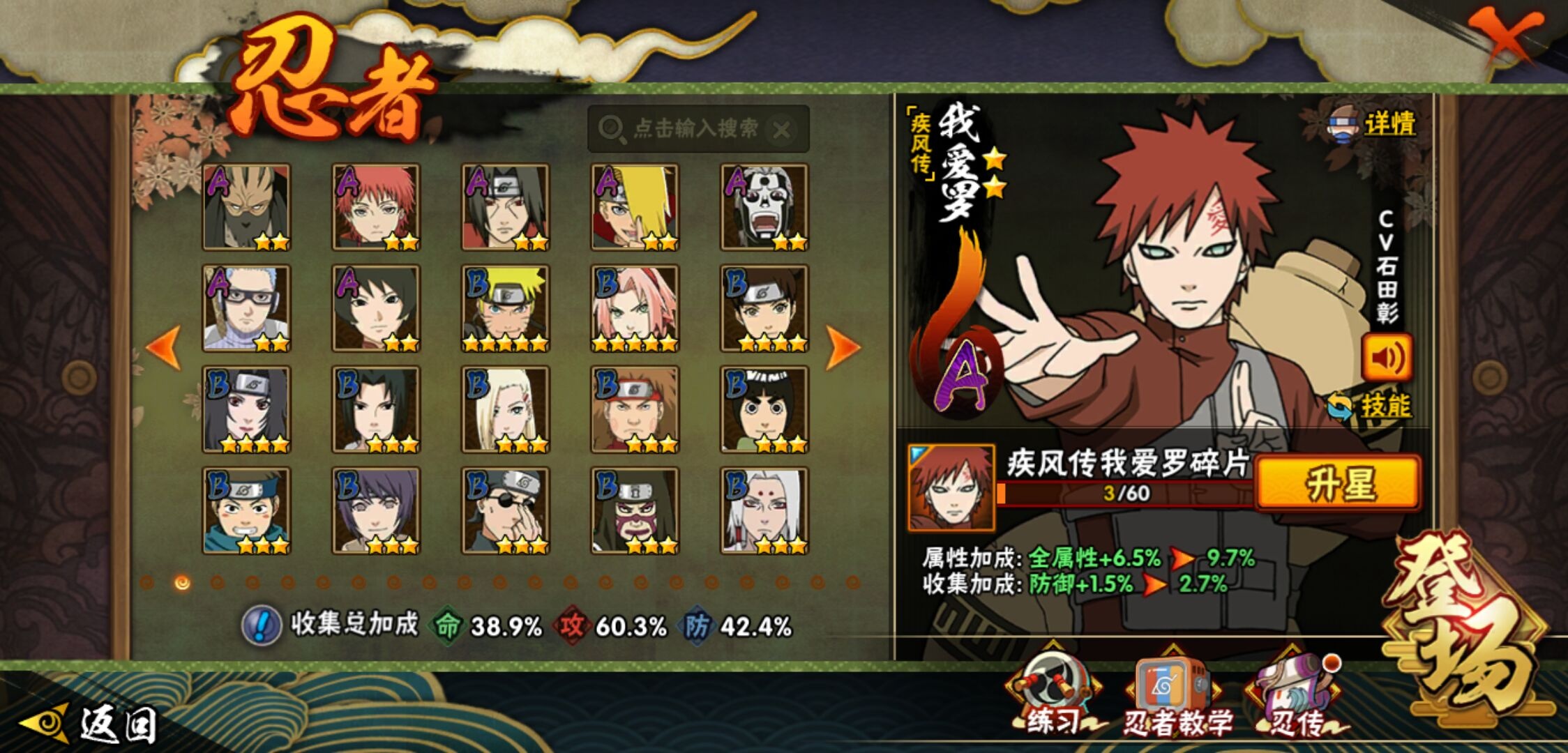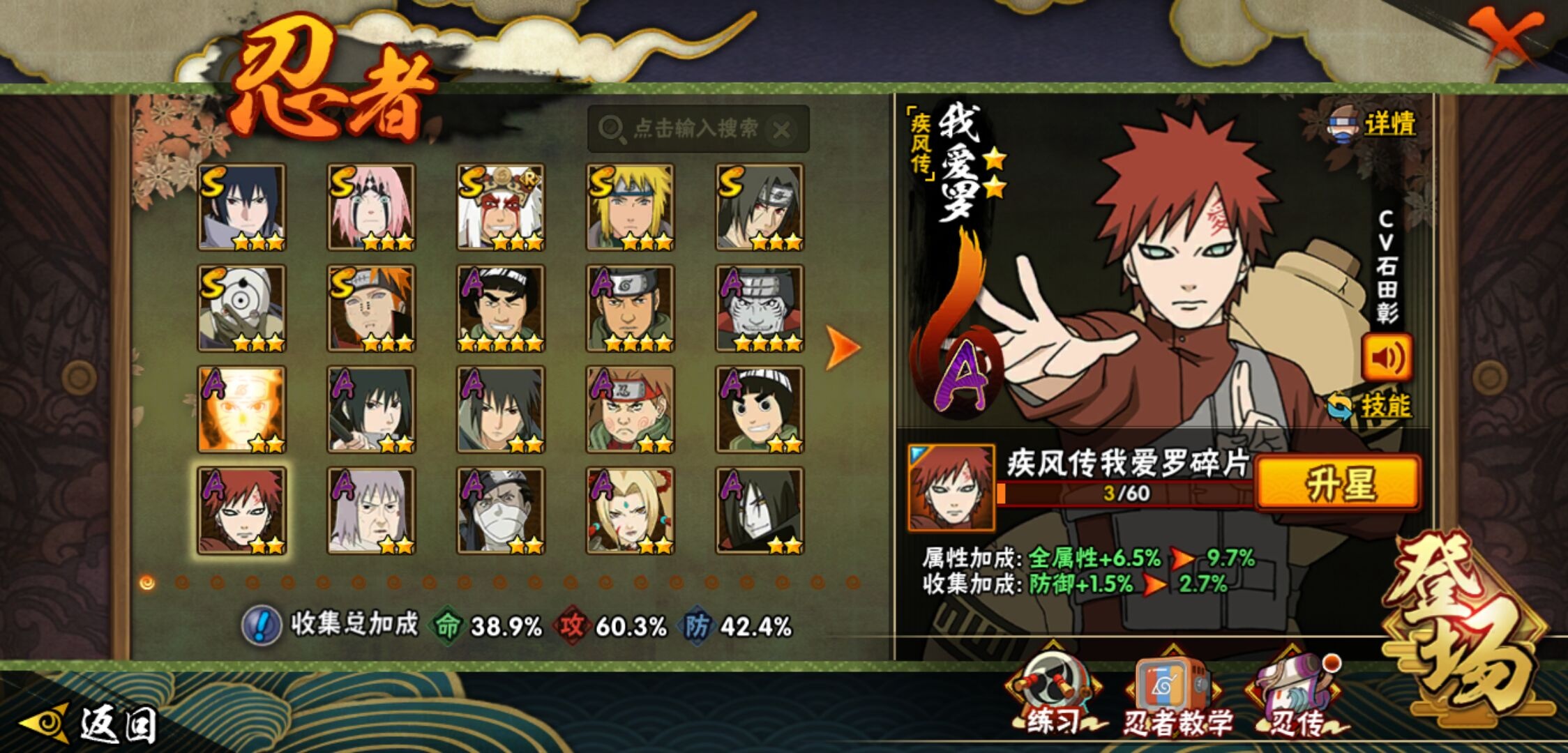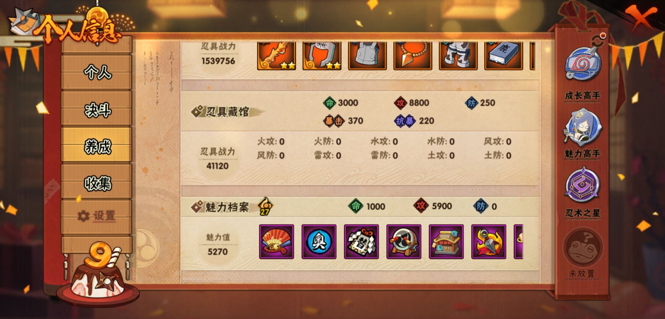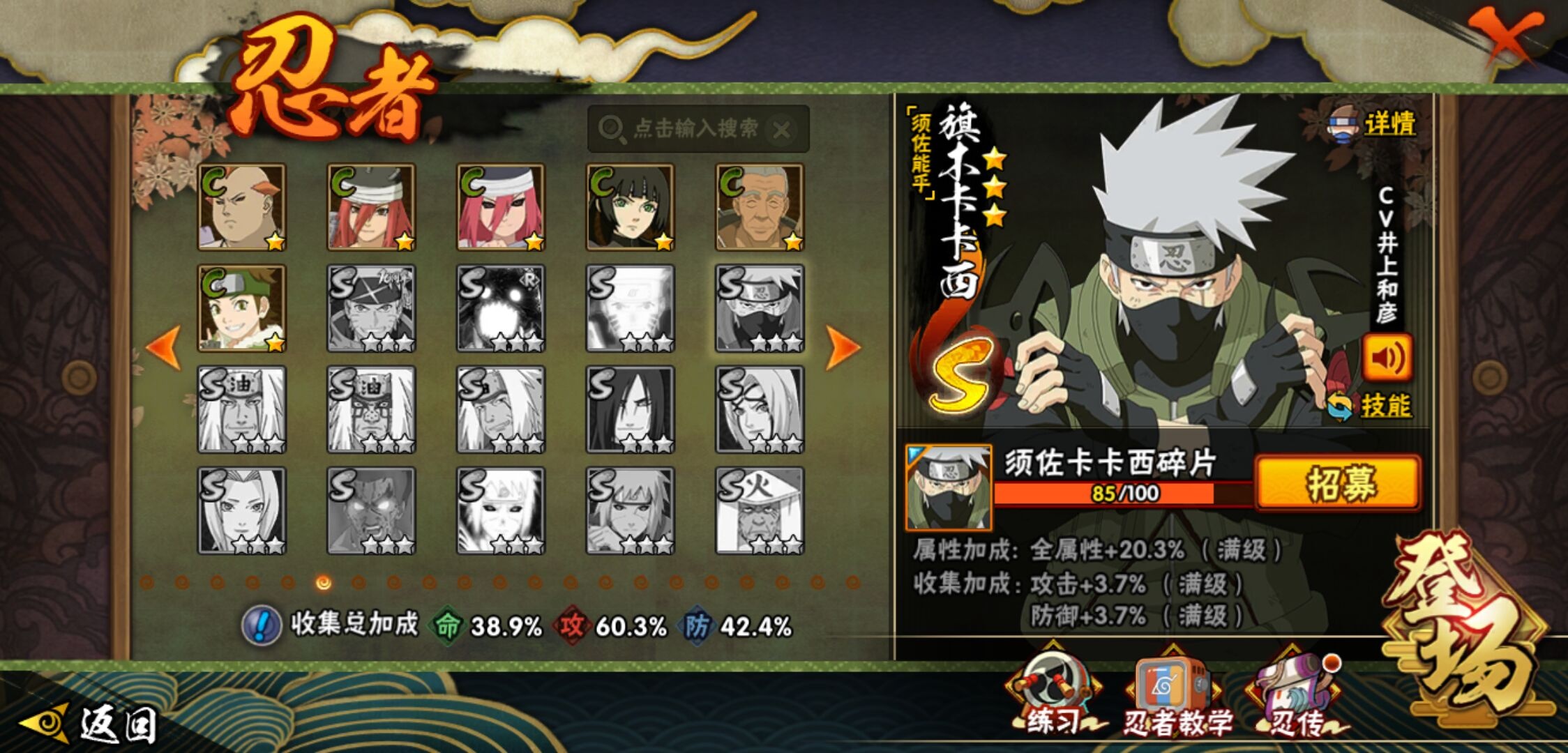 【火影忍者】【lyhy9438】战斗力:632w;段位:见习2阶;本服排名:1210;vip:v5级;s忍:7个;a忍:20个;通灵兽:13个,s忍:永恒万花筒宇智波佐助|忍界大战春野樱|舞之豪杰自来也|波风水门|须佐能乎宇智波鼬|白面具宇智波斑|天道佩恩__a忍:迈特凯(普通) 5星|猿飞阿斯玛(普通) 4星|干柿鬼鲛(普通) 4星|九尾查克拉漩涡鸣人|须佐能乎宇智波佐助|宇智波泉奈|忍界大战秋道丁次|忍界大战李洛克|疾风传我爱罗|近松十人卫千代|桃地再不斩|妖怪奇谭纲手|晓大蛇丸|绯流琥蝎|蝎(普通)|宇智波鼬(普通)|迪达拉(普通)|死司凭血飞段|六代目水影长十郎|四代目土影黑土__通灵兽:忍犬(普通)|蓝蛇|蛤蟆吉|砂之守鹤|忍龟|镰鼬|猿魔|山椒鱼|蜃|蛤蟆仙人|鲛鲨|蛤蟆健|乌鸦(普通)