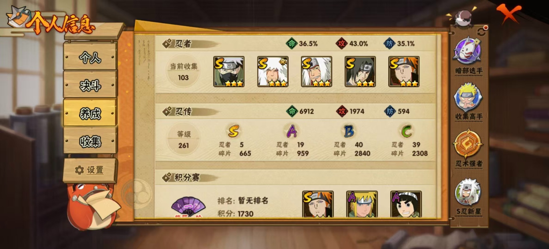 [14712988]v9 5s忍 19a忍 12通灵 283.9w战力 可二次 可修改实名 【s级忍者】:自来也 「舞之豪杰」旗木卡卡西「须佐能乎」宇智波鼬 「须佐能乎」佩恩「天道」自来也
