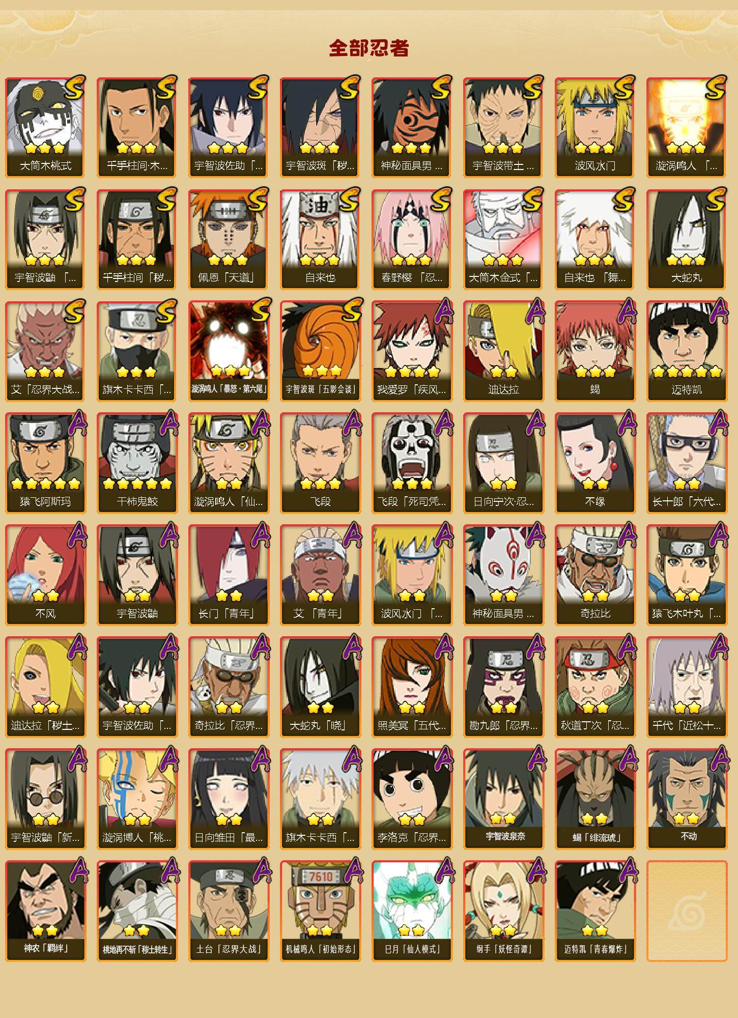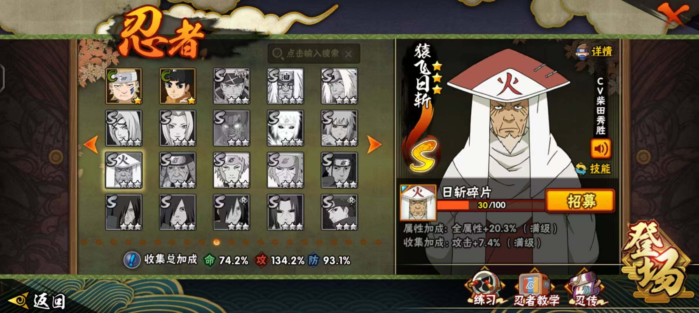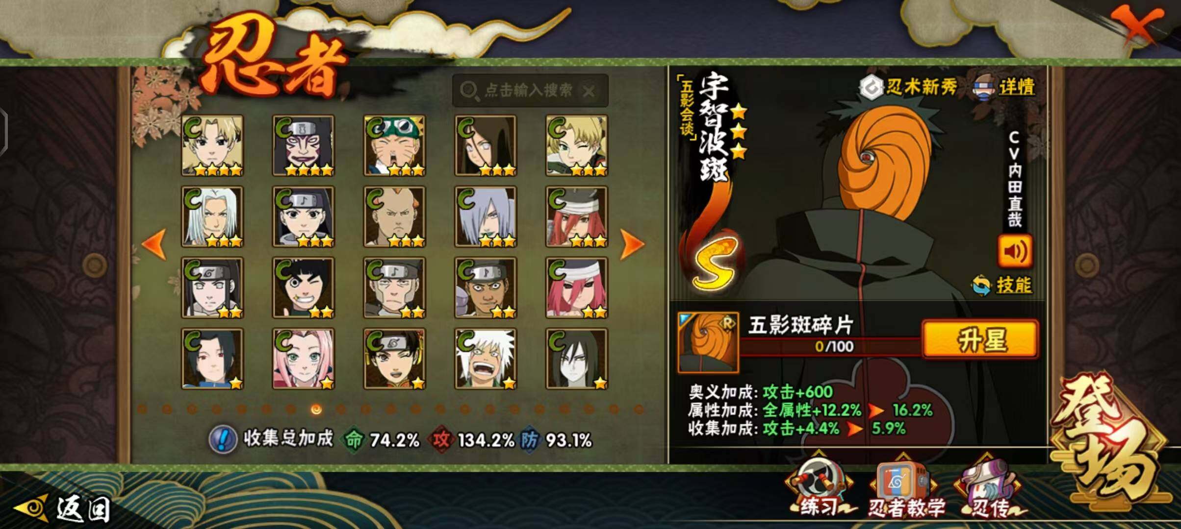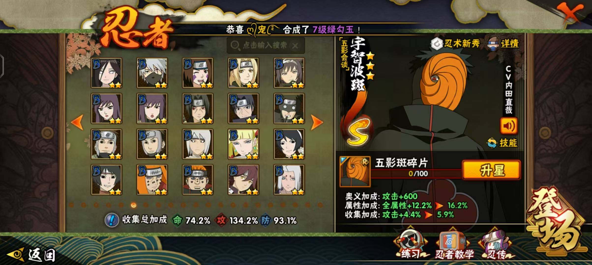 【hysa1010】v11/战力1050w/s忍20/a忍43/通灵兽17/5星猿飞阿斯玛/须佐能乎旗木卡卡西/照美冥/3星蝎/5星迈特凯/新春鼬/自来也/忍战奇拉比/创立柱间/忍者之路面具男/大筒木桃式/长十郎/蝎「绯流琥」/漩涡鸣人暴怒·第六尾/2星桃地再不斩「秽土转生」/忍战勘九郎/秽土迪达拉/2星纲手「妖怪奇谭」/神农「羁绊」/3星飞段「死司凭血」/忍战樱/迪达拉/4星我爱罗「疾风传」
