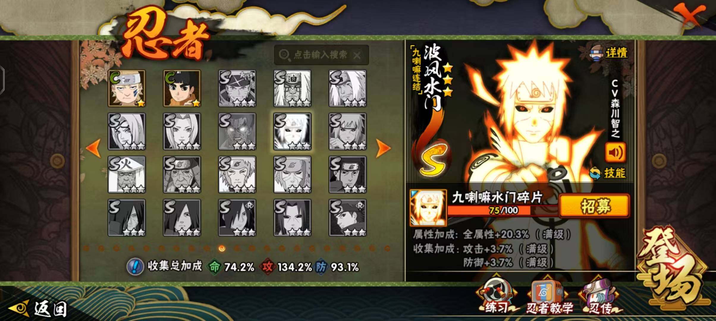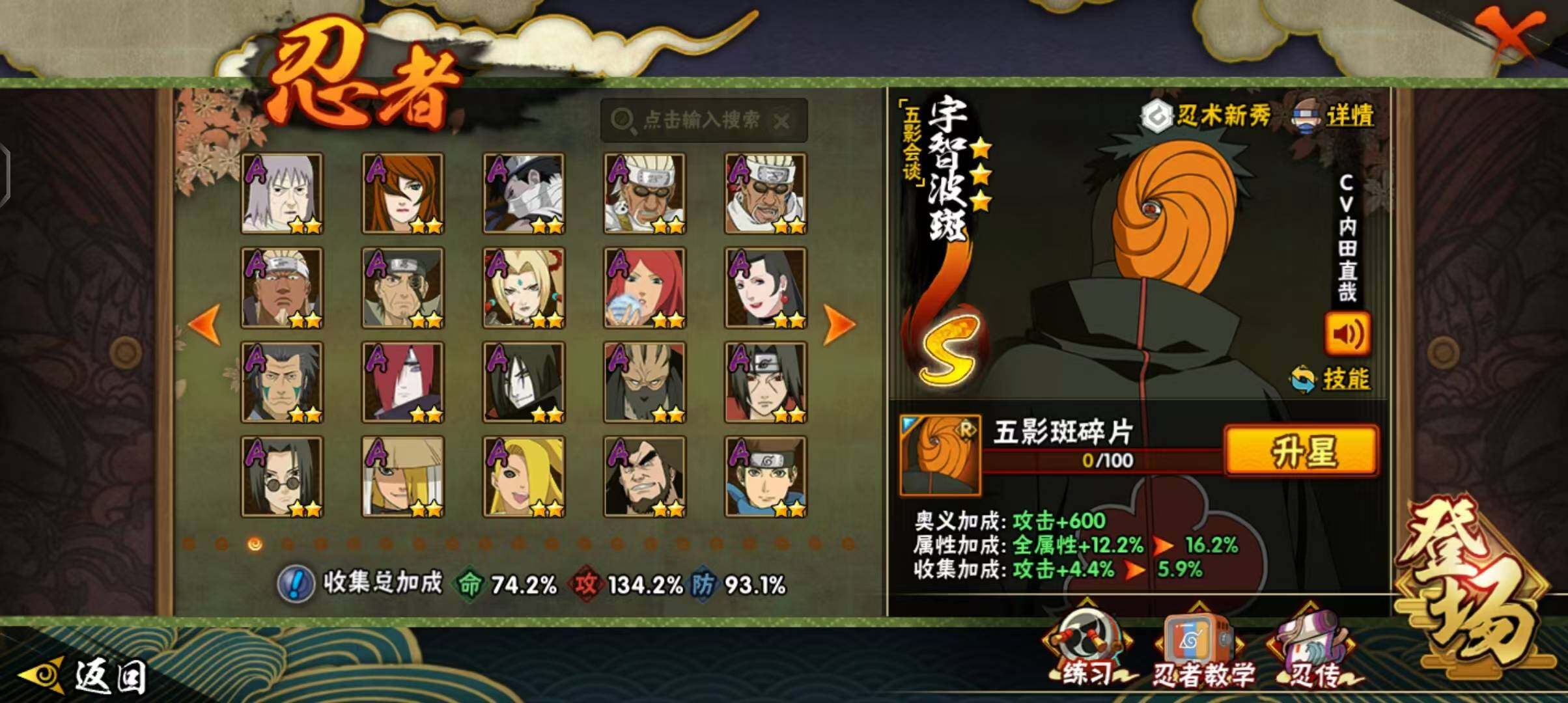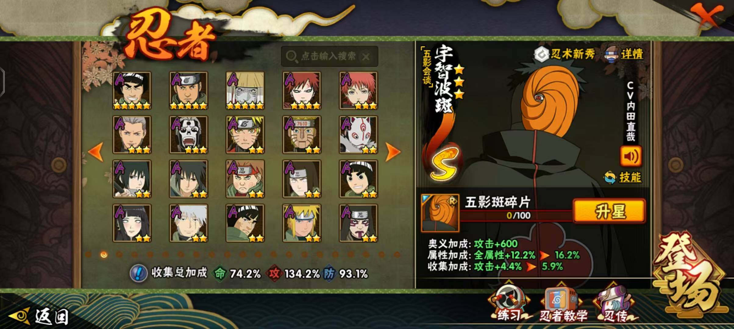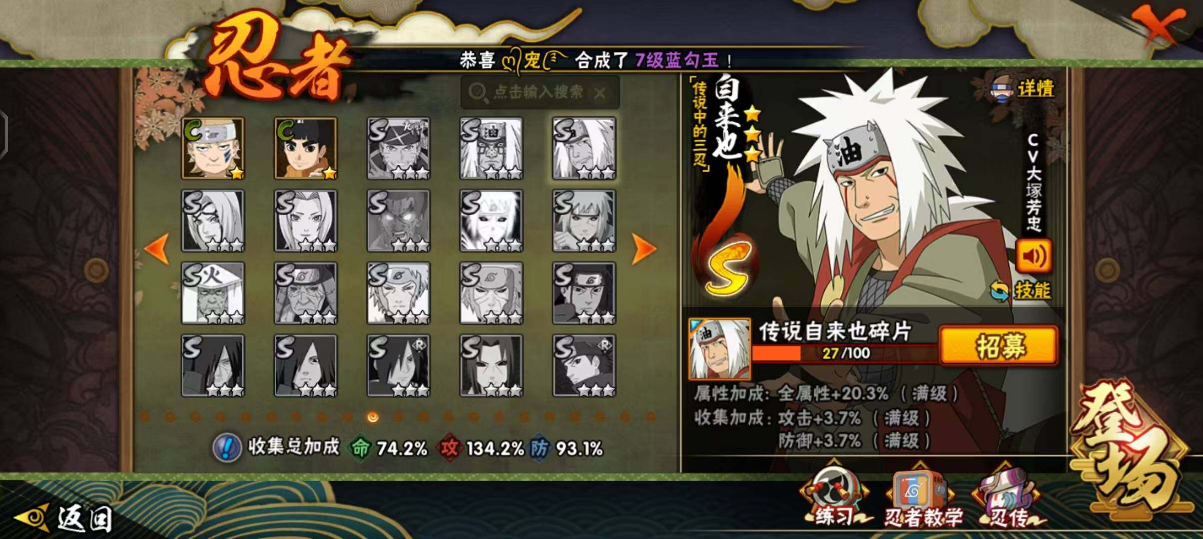 【hysa1010】v11/战力1050w/s忍20/a忍43/通灵兽17/5星猿飞阿斯玛/须佐能乎旗木卡卡西/照美冥/3星蝎/5星迈特凯/新春鼬/自来也/忍战奇拉比/创立柱间/忍者之路面具男/大筒木桃式/长十郎/蝎「绯流琥」/漩涡鸣人暴怒·第六尾/2星桃地再不斩「秽土转生」/忍战勘九郎/秽土迪达拉/2星纲手「妖怪奇谭」/神农「羁绊」/3星飞段「死司凭血」/忍战樱/迪达拉/4星我爱罗「疾风传」