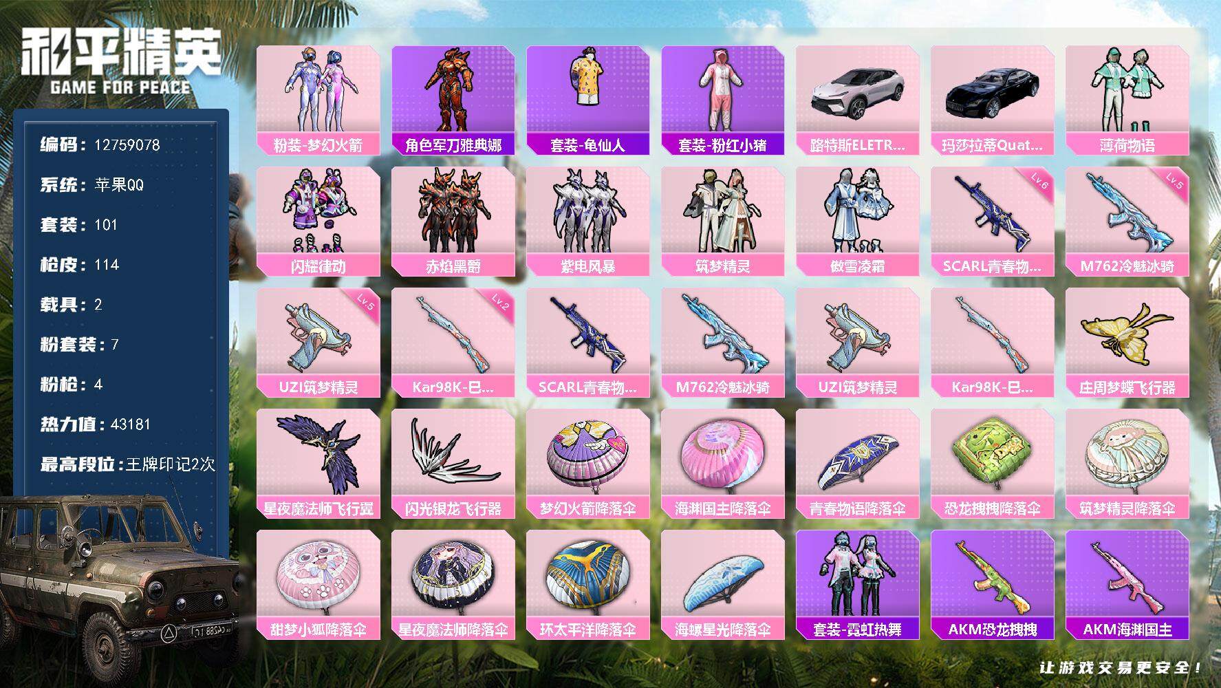 _2287821-可二次-安卓q-1稀有6粉装10特效呛10热门177套装186呛皮62143热力值精品女号125扭蛋碎片68荣耀勋章猪妹千金淑猫彩虹鹿灵胖达青涩年华山涧鹿灵守护天翼满级m416心之恋语满级416电玩时刻1印记历史超级王牌1星【1稀有】浪漫天命【6粉装】千金淑猫异瞳寒姬守护天翼缤纷油彩山涧鹿灵彩虹鹿灵【10特效呛】scar-l-锦绣绵绵5级m416-心之恋语7级m416-电玩时刻5级kar98k-巳巳如意5级m762-青锋波束5级dp-28-豹影疾电5级aug-暖羊咩咩5级蜜獾-异瞳寒姬4级ump45-量子极限5级groza-镜光银凌4级【10热门】龟仙人青涩年华雪山精英胖达圆圆团圆交子瑞龙福将狂沙舞者破蛋小黄鸡m762-瑞龙福将mk47-林间仙鹿【2头盔】梦幻火箭头盔百万伏特头盔【1背包】幻影战神背包营地id:760199182