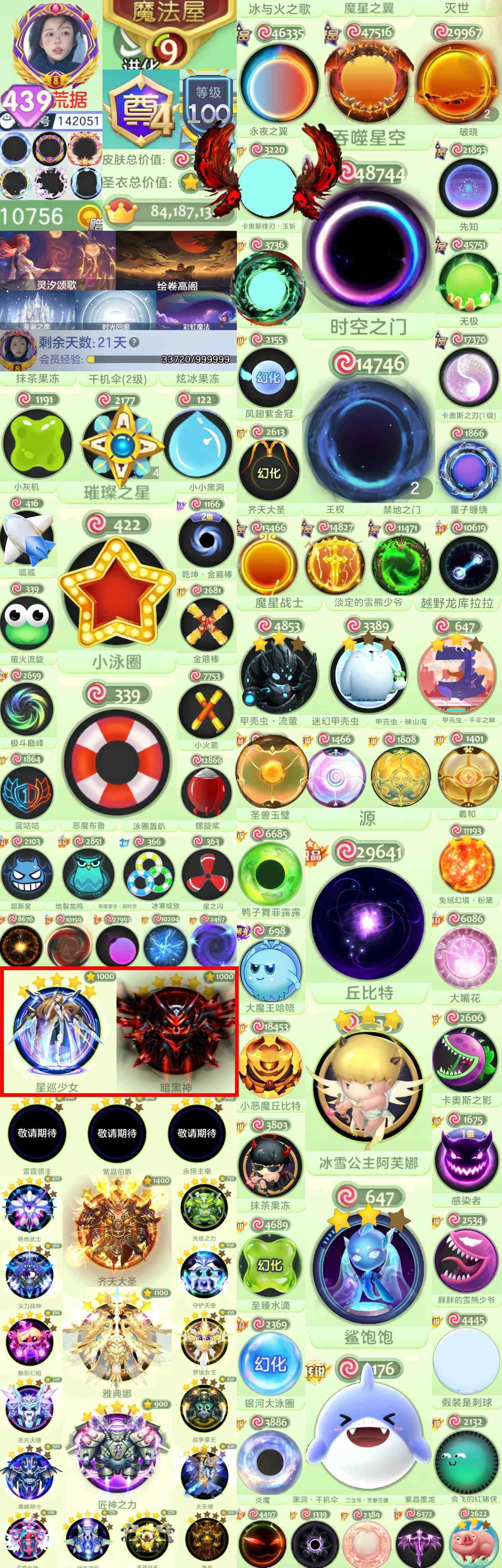 【525】439秀!尊4 100级铁匠铺 9屋!璀璨之星 小泳圈 抹茶 水滴 金箍棒 小灰机 呱呱!3敬请期待 满级大圣 满级星讯少女 满级暗黑神!黑洞 时空之门!魔星战士 满级丘比特 2级阿芙娜 鲨饱饱 4款甲壳虫 鸭子舞!编码142051
