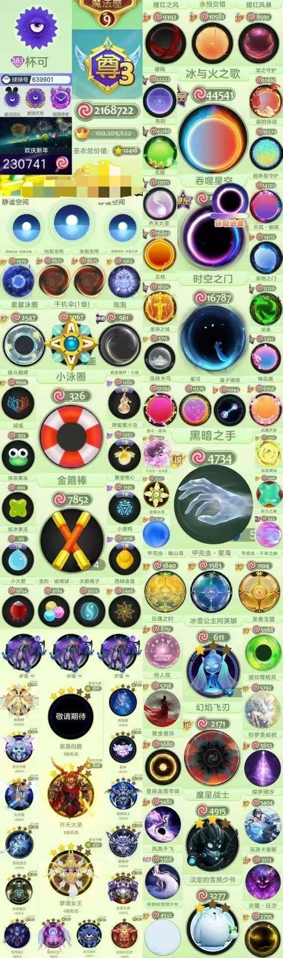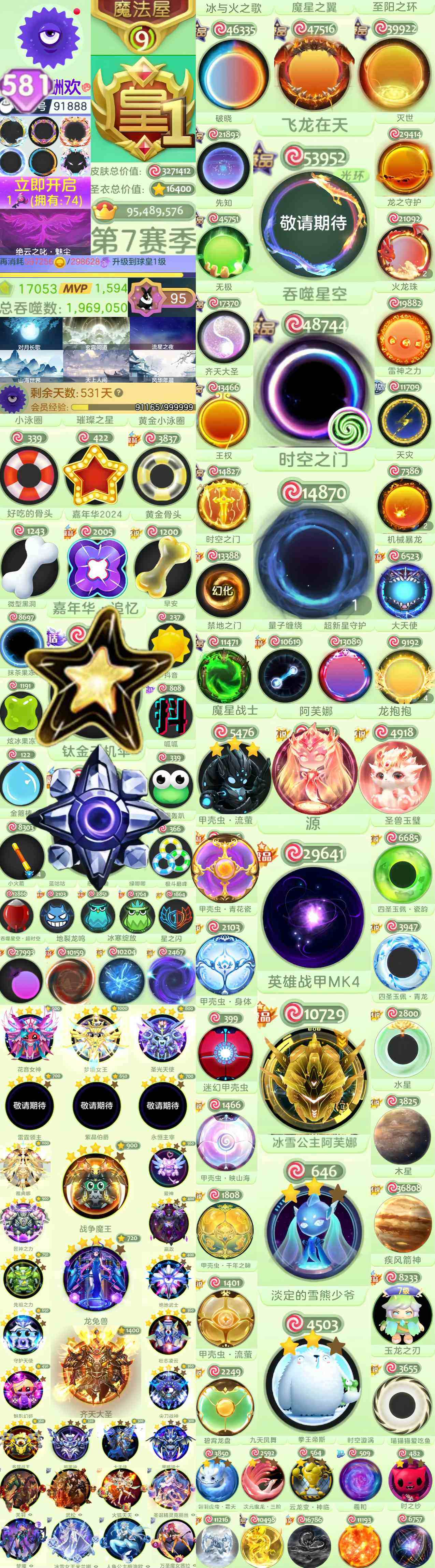 球球大作战黑洞时空之门泳圈璀璨满级暗黑神阿芙娜雷霆万钧甲壳虫大白魔星战士尊id800701