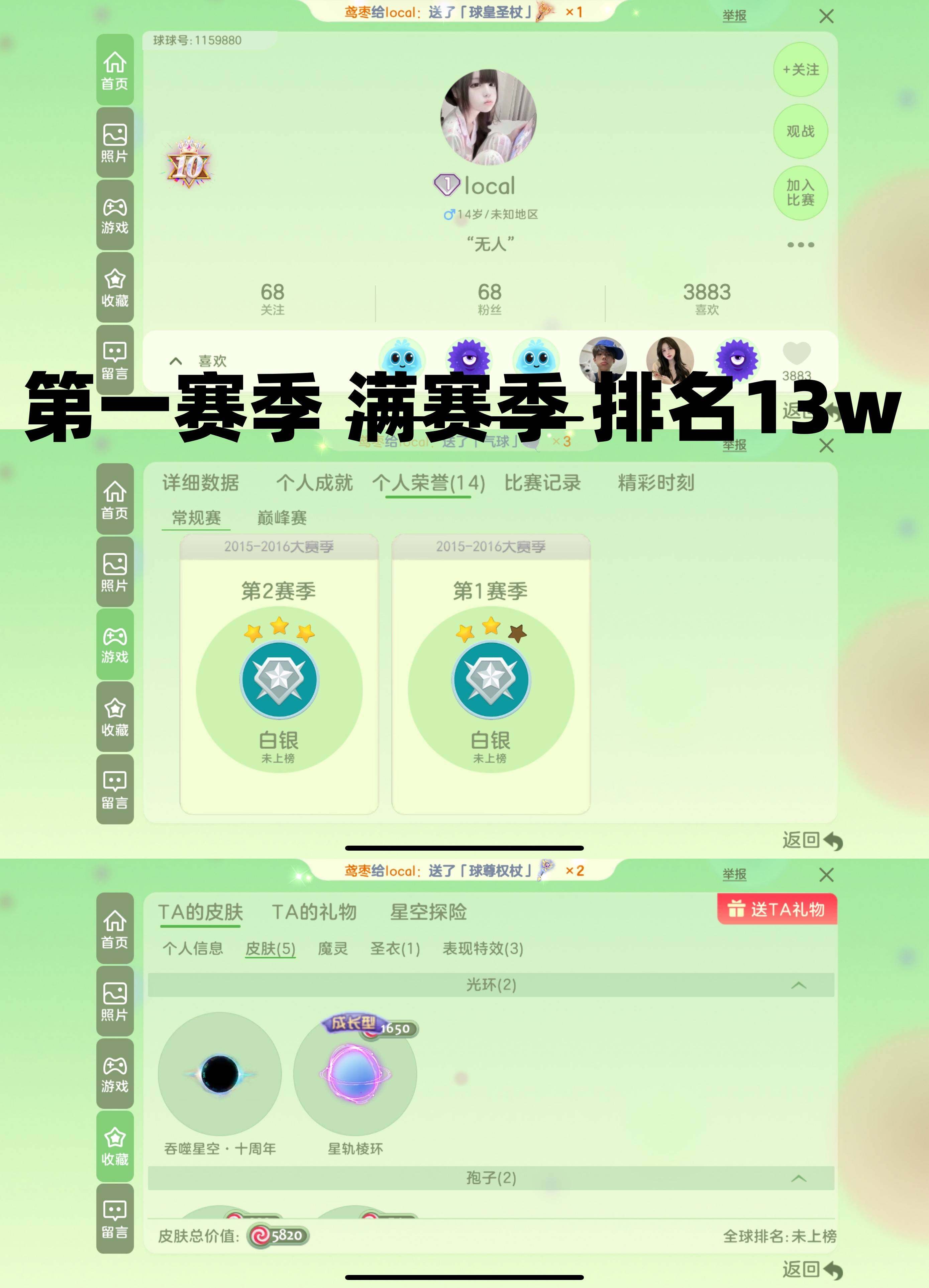 s1秀!第一赛季 满赛季!排名13w!编码1159880