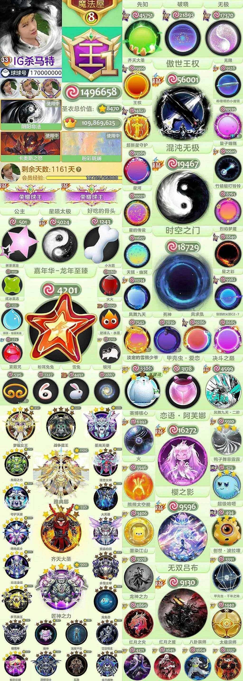 s331秀!氪金王号 阴阳背景!年卡还有1000多天!【龙年嘉年华 公主 骨头 抹茶 水滴】!恋语阿芙娜 爱恋甲壳虫 樱之影 无双吕布 鸭子舞 超级哈塔!【傲视王权 混沌无极 时空之门】!id:170000000
