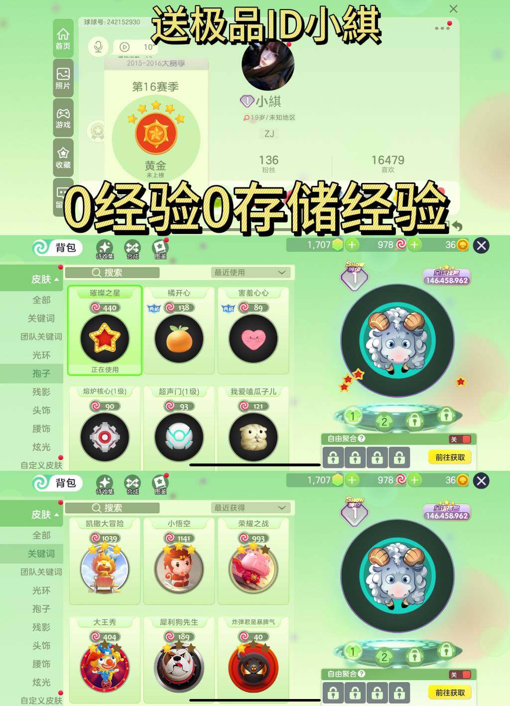 【qx187】【圣衣】:匠神之力,雅典娜,雷霆领主 【袍子】:金箍棒,抹茶,游泳圈,千机伞,小火箭 【关键词】:至臻水滴,会飞的红猪侠,淡定的雪熊少爷,圣兽玉璧 【极品光环】:先知,无极,王权,齐天大圣,超新星守护,天狐·幽冥,禁地之门,量子缠绕,胖胖飞船,星之彩,幽冥墨龙,凤求凰 尊1,紫薇框(免责申明,账号可能存在限时皮肤,体验卡,会员,到期情况,这种情况不可避免,此种情况不属于描述不符!!!请买家看主图搜索id进游戏确认好在下单,防止后面扯皮)/先知/无极/王权/齐天大圣/超新星守护/天狐·幽冥/禁地之门/量子缠绕/胖胖飞船/星之彩/幽冥墨龙/凤求凰/至臻水滴/会飞的红猪侠/淡定的雪熊少爷/圣兽玉璧/金箍棒/抹茶/游泳圈/千机伞/小火箭/匠神之力/雅典娜/雷霆领主