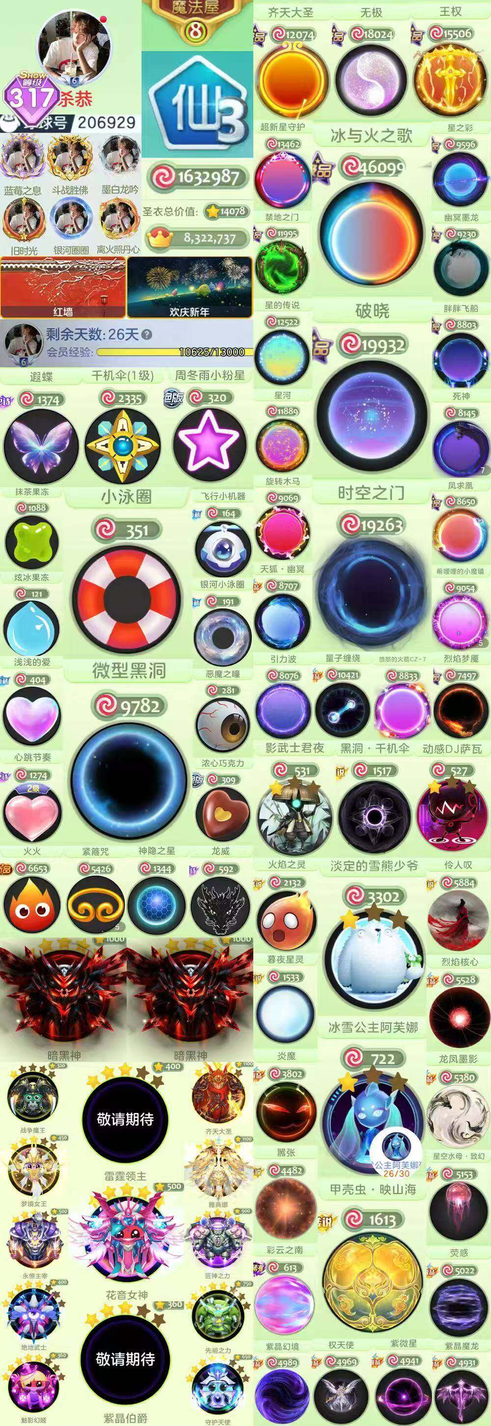s317秀!仙3 准9屋!微型黑洞 小泳圈 小粉星 水滴 抹茶!冰火 时空之门!满级暗黑神 满级花音 双敬请期待!大白 准阿芙娜 多款皮肤!编码206929