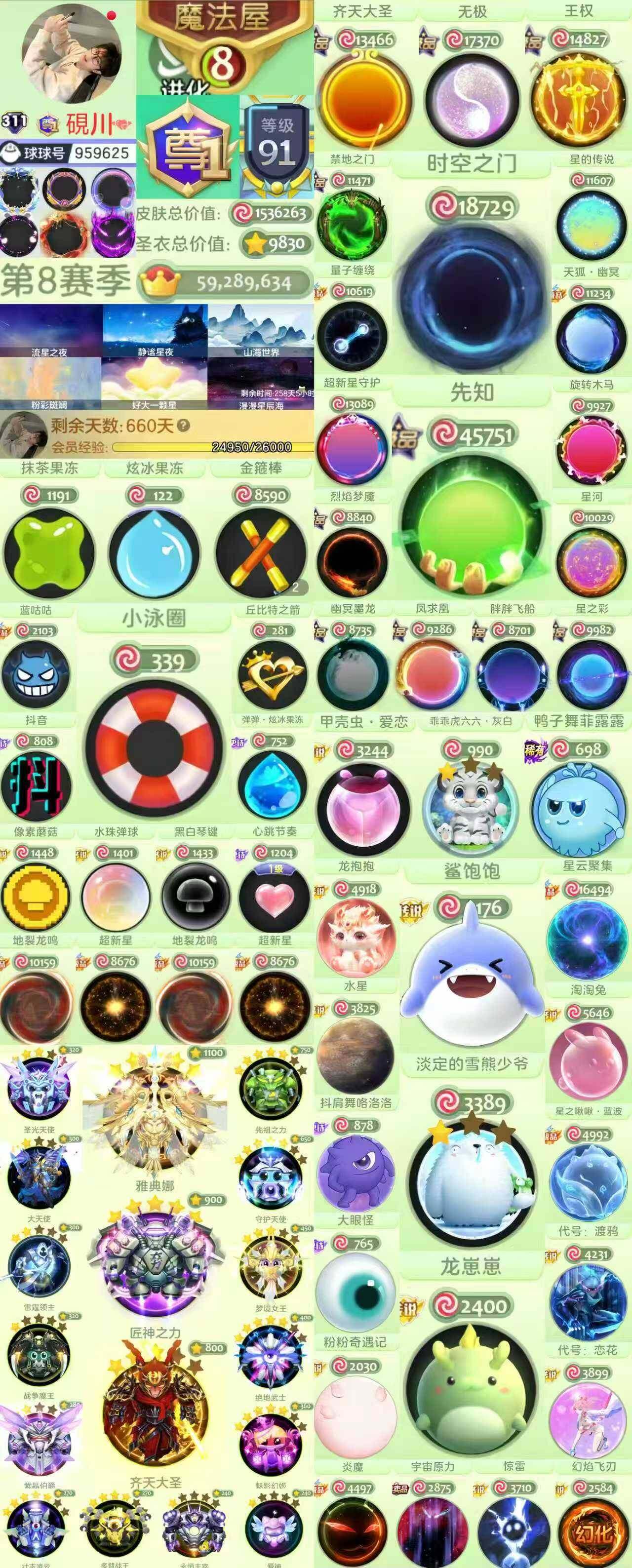 【qx196】【袍子】:炫冰果冻,好吃的骨头,千机伞,抹茶,璀璨之星 【关键词】:圣兽玉璧 【极品光环】:胖胖飞船,幽冥墨龙,凤求凰,禁地之门,量子缠绕,天狐·幽冥,星之彩,王权,齐天大圣,超新星守护 尊3,紫薇框,凌霄框,双髻鲨,璀璨之星 (免责申明,账号可能存在限时皮肤,体验卡,会员,到期情况,这种情况不可避免,此种情况不属于描述不符!!!请买家看主图搜索id进游戏确认好在下单,防止后面扯皮)/胖胖飞船/幽冥墨龙/凤求凰/禁地之门/量子缠绕/天狐·幽冥/星之彩/王权/齐天大圣/超新星守护/圣兽玉璧/炫冰果冻/好吃的骨头/千机伞/抹茶/璀璨之星