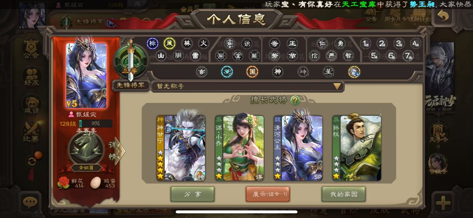 区服:三国杀手游 官服个性