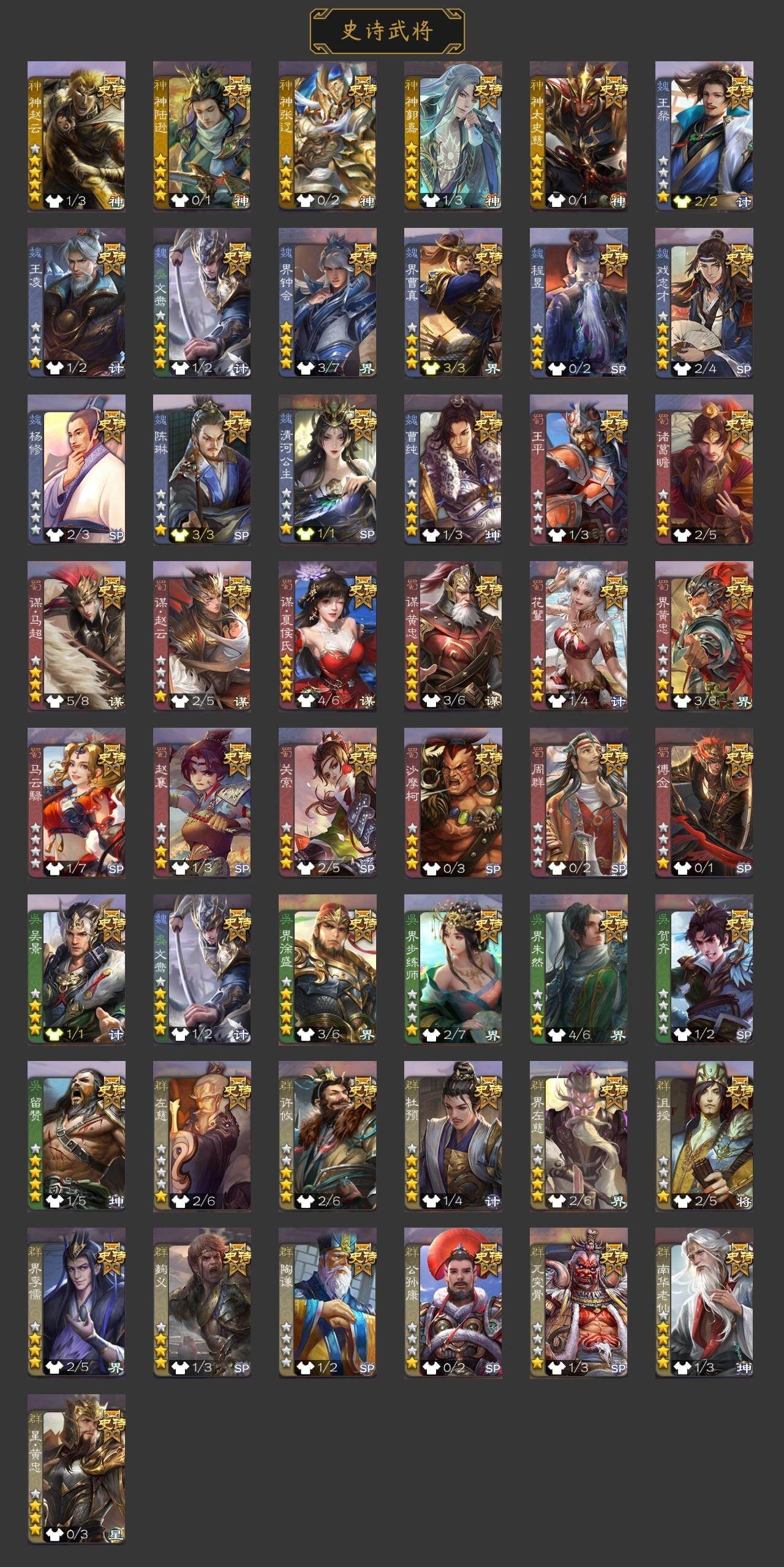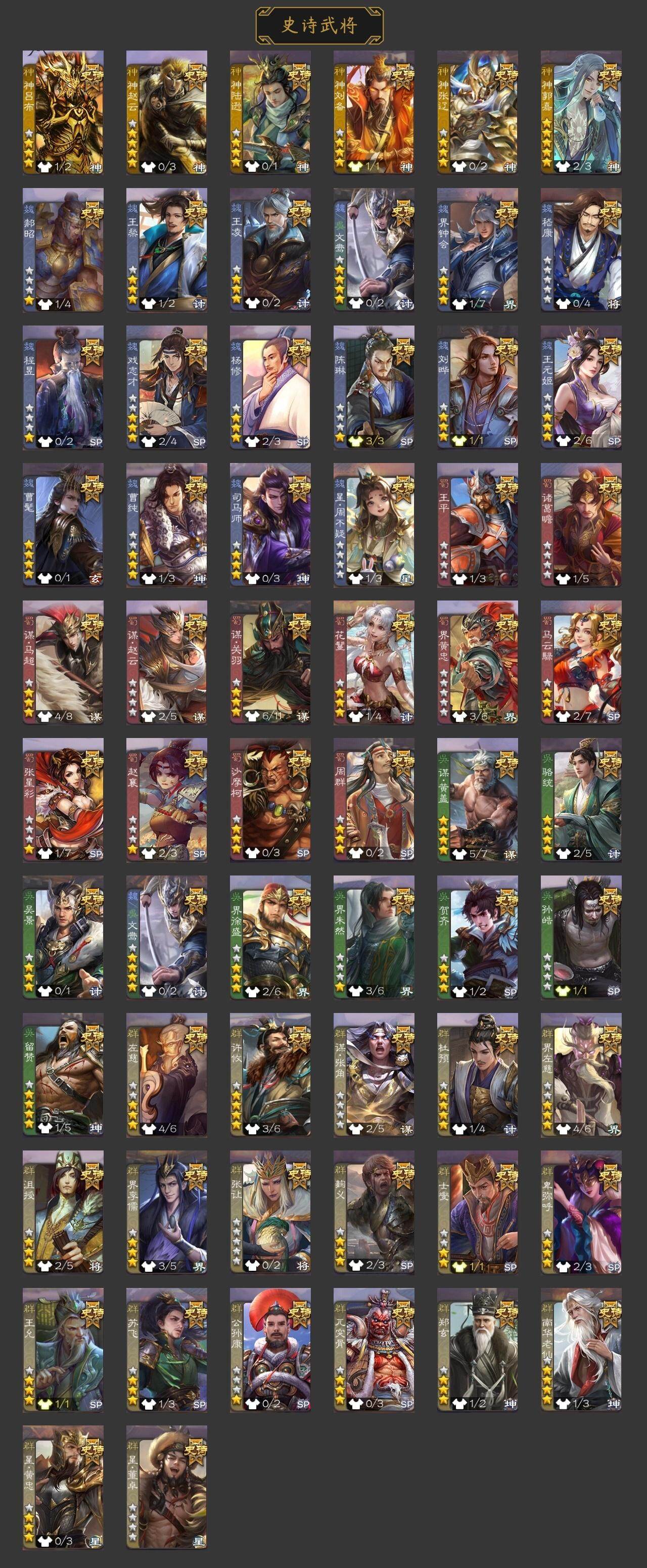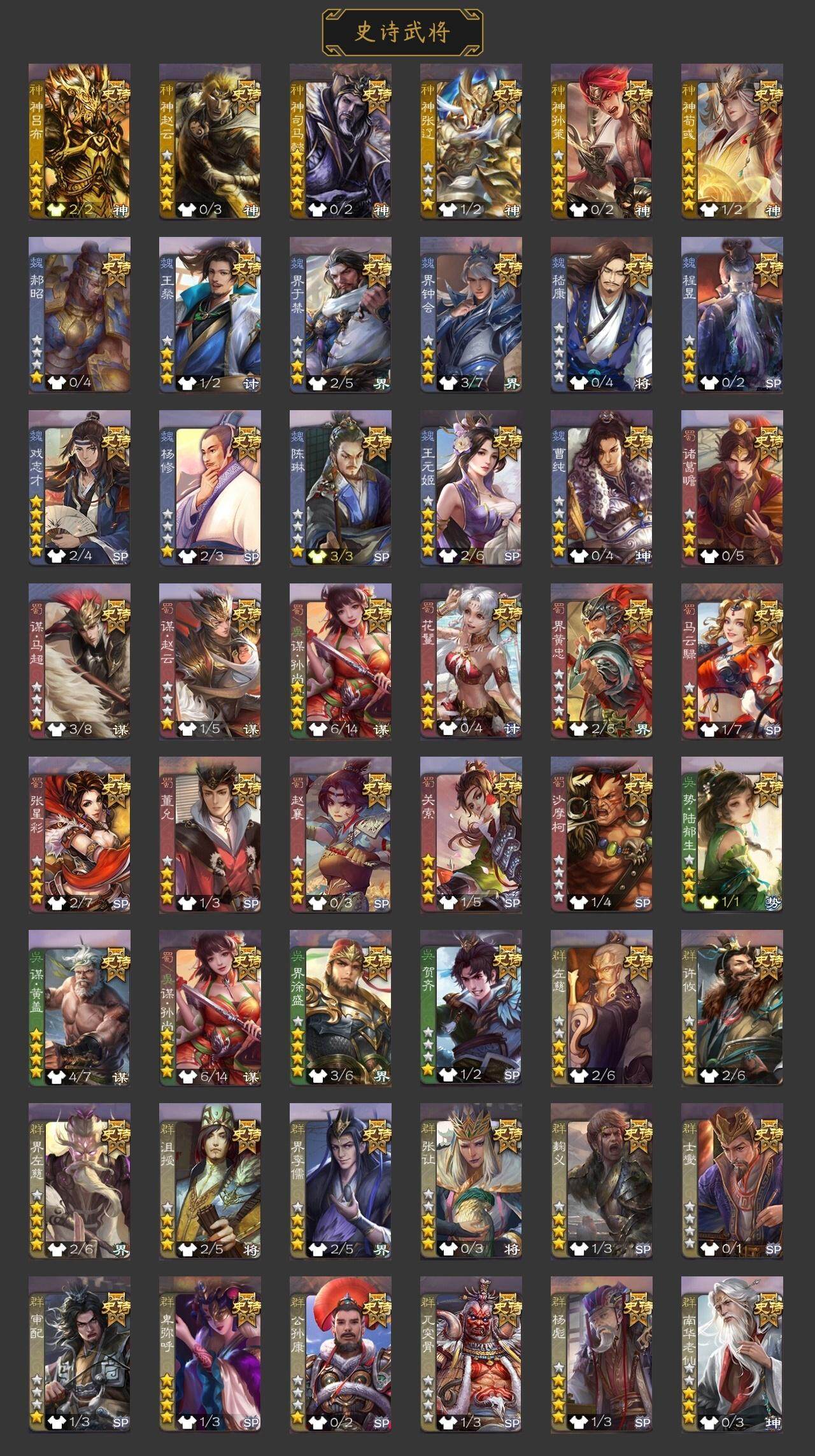 [15177085]【607】官阶:大将军;vip等级:vip10;史诗武将数量:50;动态皮肤数量:32;武将总数:391;史诗宝珠数量:4;将魂数量:5065;神将:9;魏国史诗武将:23;蜀国史诗武将:11;吴国史诗武将:6;群史诗武将:17 神吕布神赵云神司马懿神陆逊神甘宁神张辽神吕蒙神周瑜神诸葛亮曹髦星周不疑王粲文鸯魏-司马昭界钟会界于禁郝昭曹纯戏志才谋曹丕清河公主谋赵云谋马超诸葛瞻赵襄张星彩王平沙摩柯谯周傅佥花鬘董允吴景孙皓留赞界朱然界徐盛贺齐谋黄月英左慈张让星黄忠审配麹义庞德公沮授界左慈界李儒公孙康卑弥呼谋张角李傕阎象许攸友徐庶神张辽-散敌擒孙神司马懿-鉴往知来动态星周不疑-才广志宏动态曹植-龙年中秋动态钟会-潜蛟觊天动态曹丕-气荡山河(动态)甄姬-明珠耀躯(动态)曹丕-龙年中秋动态sp蔡文姬-兔年冬日动态张春华-雪中舞刃动态戏志才-举棋若定动态朱灵-以战破氐动态司马昭-昭威淮南(动态)清河公主-魅影萦心动态花鬘-依心缱绻动态刘备-龙御天下动态卧龙诸葛-龙跃凤鸣动态费祎-安民护祚(动态)马超-虎年冬至动态张飞-据水断桥动态诸葛瞻-绵竹之殇动态界张飞-据水断桥动态张星彩-临军对阵动态周处-义除三害动态陆逊-龙年七夕动态孙权-永开吴祚动态周瑜-兔年七夕动态孙尚香-星流霆击动态界孙尚香-星流霆击动态刘赞-灵魂歌王动态文鸯-势若万钧动态袁绍-声震寰宇动态麹义-扬刀立威动态吕布-傲睨万物动态左慈-役使鬼神动态李儒-鸠杀少帝动态界李儒-鸠杀少帝动态