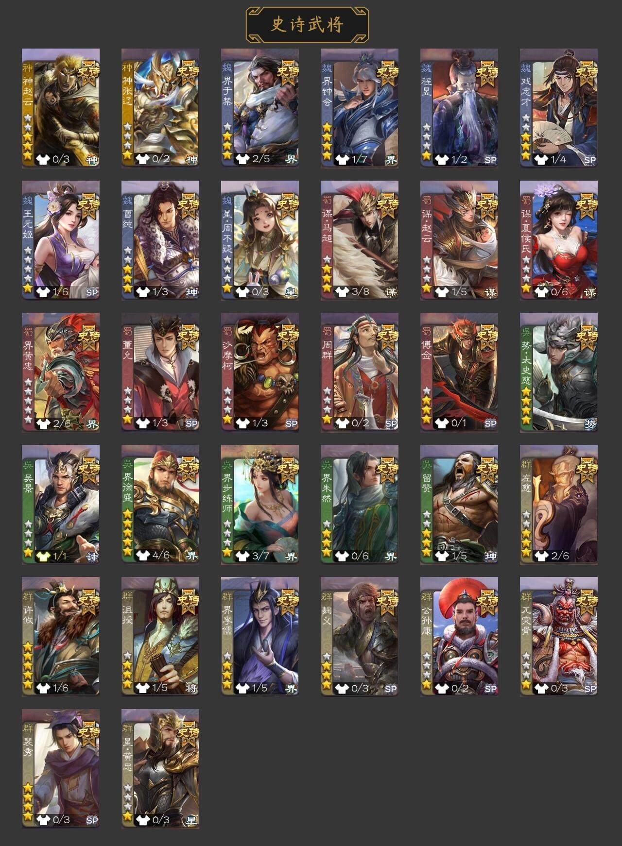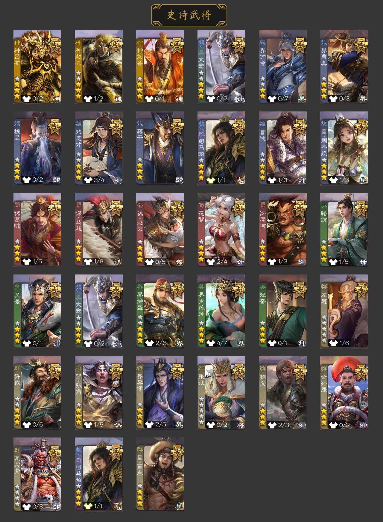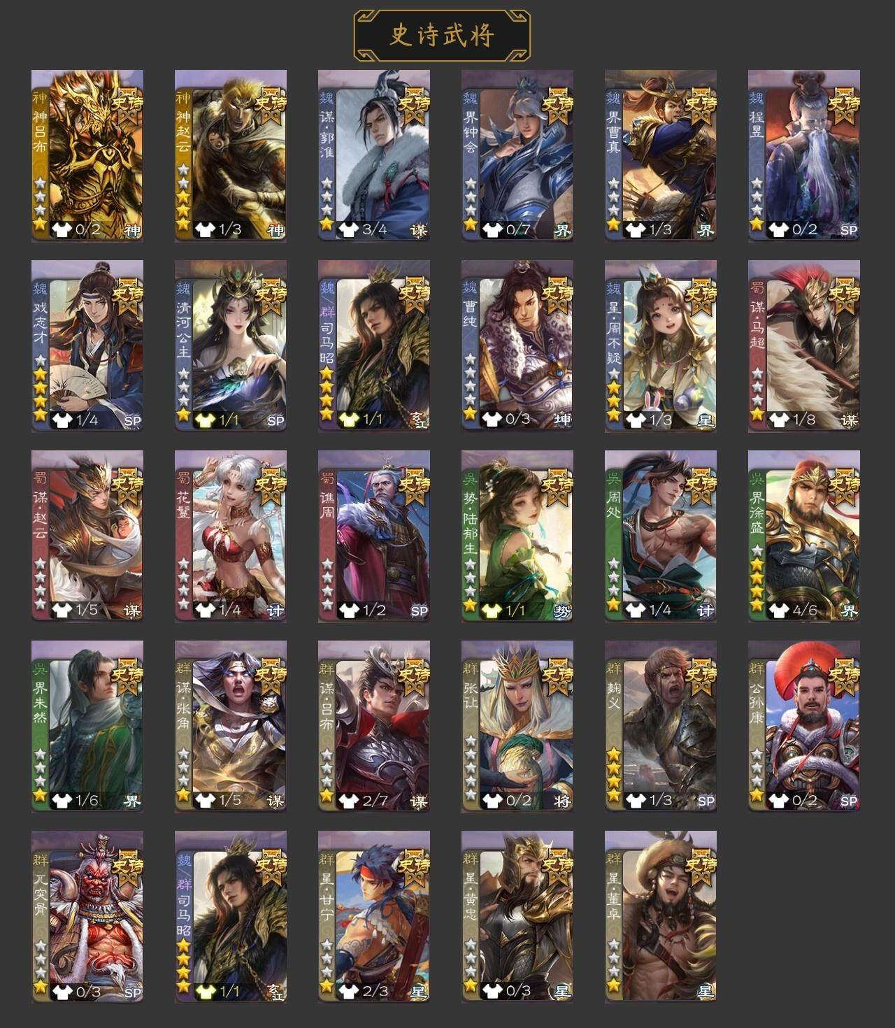 [15168750]【492】官阶:骠骑将军;vip等级:vip6;史诗武将数量:31;动态皮肤数量:19;武将总数:330;史诗宝珠数量:2;将魂数量:16;神将:5;魏国史诗武将:12;蜀国史诗武将:9;吴国史诗武将:2;群史诗武将:9 神吕布神赵云神张辽神太史慈神吕蒙星周不疑谋曹仁界钟会界曹真曹纯戏志才马云騄谋孙尚香谋夏侯氏谋赵云谋马超赵襄张星彩沙摩柯吴景贺齐左慈张让杨彪苏飞司马徽审配麹义界李儒卑弥呼神太史慈-勇撼日月动态曹植-龙年中秋动态许褚-兔年端午动态邓艾-神兵天降动态界邓艾-神兵天降动态钟会-谋谟之勋动态曹真-虎年春节动态界钟会-谋谟之勋动态马超-牛年春节动态诸葛亮-明良千古动态界马超-牛年春节动态界诸葛亮-明良千古动态张星彩-临军对阵动态鲍三娘-虎年七夕动态卧龙诸葛-火烧博望动态周处-义除三害动态孙权-牛年七夕动态界孙权-牛年七夕动态麹义-扬刀立威动态李儒-鸠杀少帝动态界李儒-鸠杀少帝动态杨彪-忧心国事动态皇甫嵩-奋钺振旅动态谋刘赪-冠绝天下动态