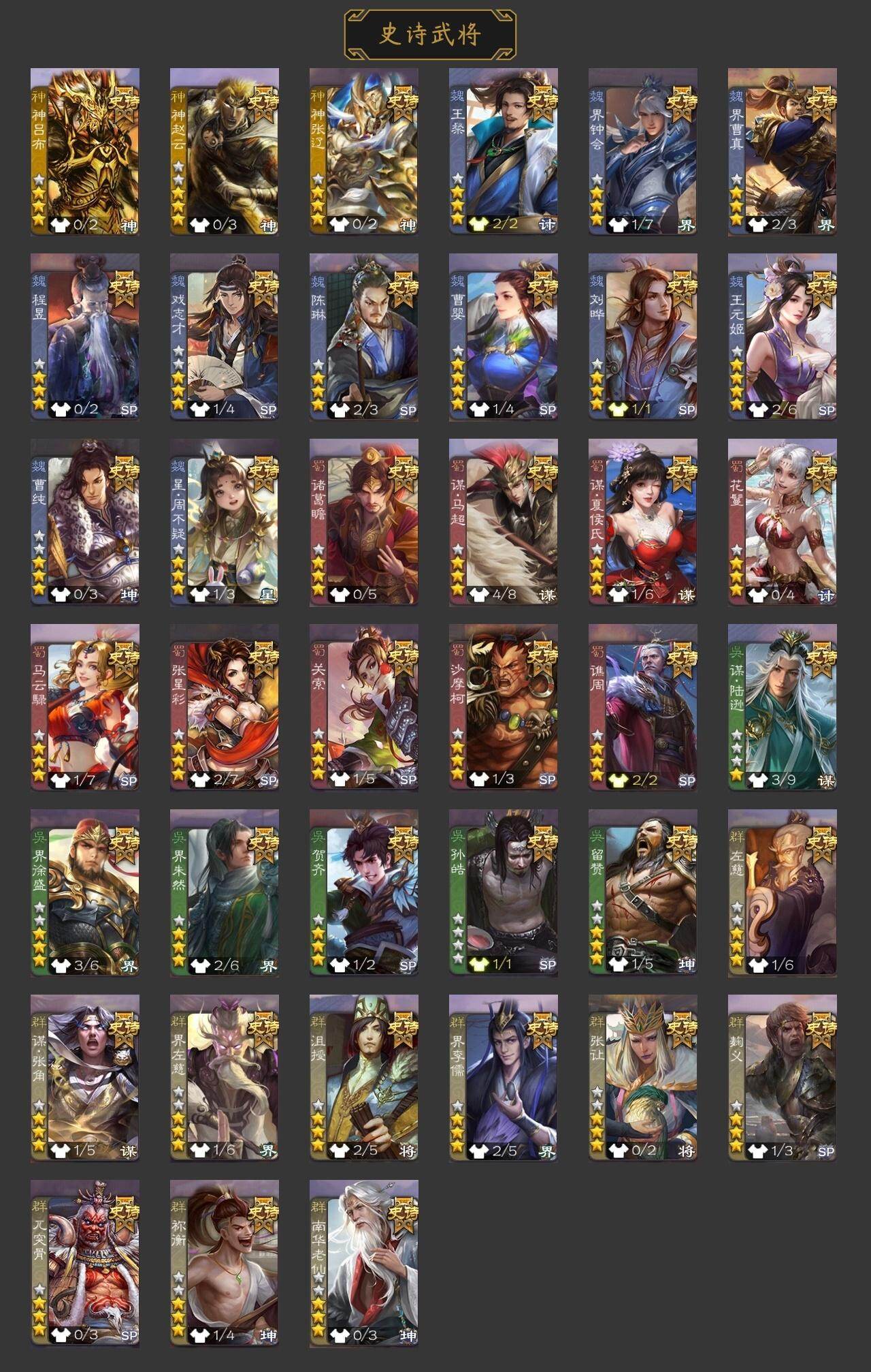 [15168741]【427】官阶:大将军;vip等级:vip9;史诗武将数量:39;动态皮肤数量:31;武将总数:353;史诗宝珠数量:0;将魂数量:4147;神将:5;魏国史诗武将:23;蜀国史诗武将:9;吴国史诗武将:6;群史诗武将:9 神吕布神赵云神张辽神吕蒙神周瑜星周不疑王粲王元姬界钟会界曹真陈琳曹婴曹纯戏志才刘晔关索马云騄谋夏侯氏谋马超诸葛瞻张星彩沙摩柯谯周花鬘谋陆逊孙皓留赞界朱然界徐盛贺齐左慈张让麹义南华老仙祢衡沮授界左慈界李儒谋张角神曹操-天下归心星周不疑-才广志宏动态张昌蒲-龙年端午(动态)曹植-龙年中秋动态甄姬-明珠耀躯(动态)sp蔡文姬-兔年冬日动态荀彧-驱虎吞狼动态邓艾-神兵天降动态王粲-笔翰如流动态界邓艾-神兵天降动态张春华-雪中舞刃动态曹婴-兔年春节动态朱灵-以战破氐动态王元姬-鼠年冬至动态刘备-龙御天下动态卧龙诸葛-龙跃凤鸣动态费祎-安民护祚(动态)马超-西凉雄狮动态马超-虎年冬至动态赵云-牛年春节动态黄月英-鼠年春节动态界赵云-牛年春节动态界马超-西凉雄狮动态界黄月英-鼠年春节动态张星彩-猪年中秋动态李丰-太仓聚粟动态孙策-兔年中秋动态周处-义除三害动态吕蒙-剑起惊澜动态孙权-兔年中秋动态孙权-永开吴祚动态孙策-虎踞江东动态孙尚香-星流霆击动态界孙尚香-星流霆击动态凌统-长风破浪动态界凌统-长风破浪动态刘赞-灵魂歌王动态袁绍-声震寰宇动态吕布-鼠年七夕动态界吕布-鼠年七夕动态李儒-鸠杀少帝动态界李儒-鸠杀少帝动态刘焉-雄踞益州动态张琪瑛-虎年冬至动态