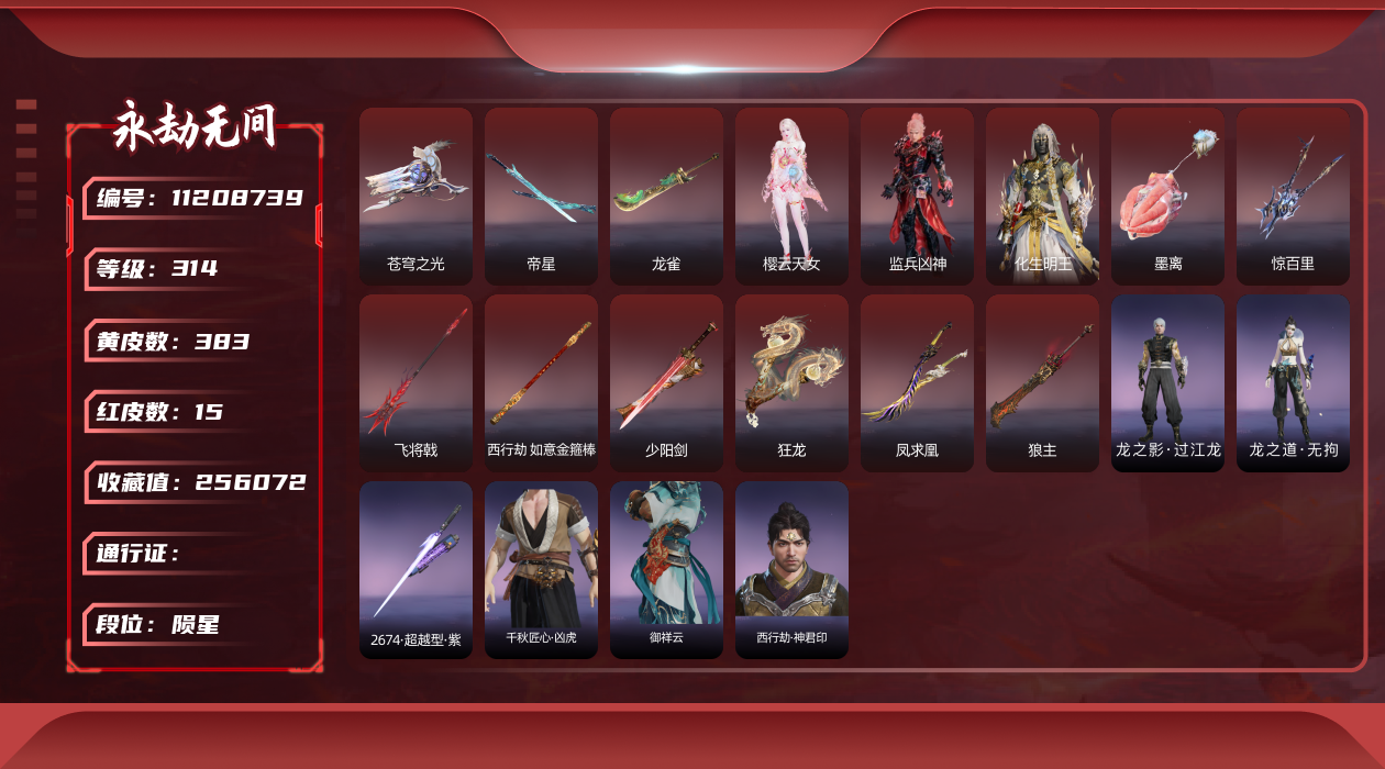 [10993532]0acsg5网易手机17个红皮泳装1个【椰风夕照(季沧海),精武魂(季沧海),】奥义特效5个【赤徽(岳山),荆魂岳山,炎烈珠(季沧海),绿野守护·竹韵悠(沈妙),珥冰(天海),】下次换绑时间2025/9/24,等待换绑期间可以登入网易大神直接进入游戏不影响游戏体验。网易支付无法注销道具货币都是默认已使用.武器红皮6个【帝星,烈阳,西行劫·如意金箍棒,狂龙,少阳剑,狼主,】其他红皮11个【流金晓锦,星辉魔纱,监兵凶神,赤皓新囍,长天藏锦,香雪水兰,凌霄之羽,初代玄女,戎金狼,绝代风华,熛怒炼火,】飞鼠,劫涛·潮,杨戬,自动人形·2b,悟空,唐三,信手斩龙,霜天红叶,枫行者,孽炎祸斗,百战·破荆者,观山海·夏神祝融,巨阙,紫金玉女,夜华朝,金羽圣鹰,浣烟纱,火罗圣女,千秋匠心·玉叶景,御宅花织黑丝,天钿女命,日道神子,武道无穷·少林,决战平安京·御神之刃,龙之影·过江龙,守誓者,常胜袍,镇海龙,伏波龙女,掌珠仙子,金羽客,一品仙君,逆水寒·极夜天曦,姑射真人,枫狩,干将莫邪,街头狂欢·不败擂主,护世四法·广目天王,夜绸袍,西行劫·紫衣仙子,街头狂欢·涂鸦少女,劫涛·潮,观山海·朱明,西行劫·三尖两刃刀,葫芦兄弟·蛤蟆头领,封神录·申公豹,封神录·龙吉公主,封神录·姜子牙,梨园传奇·柳生,九骊之君