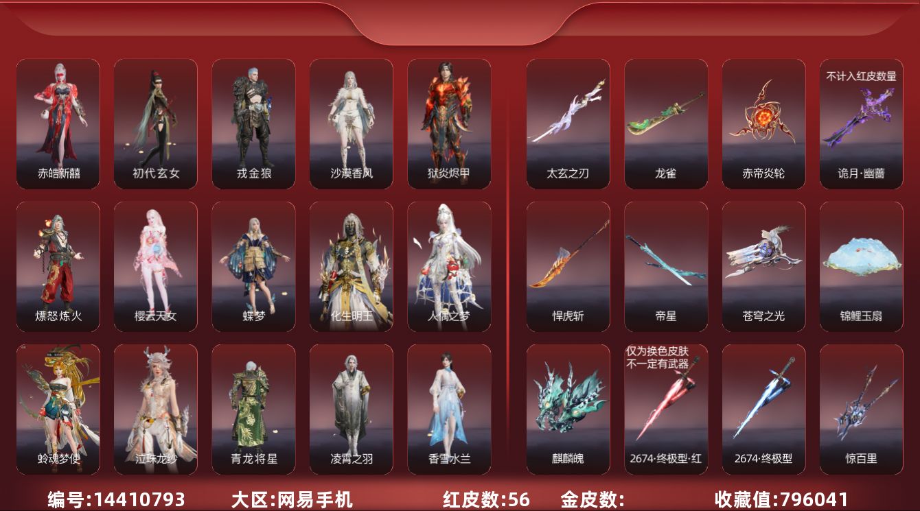 [14410793]wj3221,网易手机,1月10日可换绑,三人段位铂金2,2谪星,56红,797金,谪星无定法,2孔2蓝,谪星沧澜绡,2孔1蓝1紫,幻梦鲸彩,御祥云,雪霜姿,镇冥司,噬骨,霜翎,夜蔷薇,凶虎,神君印,2674初代机,神乌造像,炎烈珠,墨离,赤帝炎轮,麒麟魄,少阳剑,2674终极型,2674终极型红,太玄之刃,2674九阴,灵狐幻刃,帝星,比羿,龙雀,烈阳,狼主,悍虎斩,飞将戟,涯角,灵犀,如意金箍棒,天琼,锦鲤玉扇,逆晦朔,狂龙,凤求凰,诡月幽蔷,惊百里,天罚,苍穹之光,毕方,赤皓新囍,初代玄女,星辉魔纱,朱雀星衣,化生明王,长天藏锦,戎金狼,狱炎烬甲,熛怒炼火,樱云天女,蝶梦,人偶之梦,蛉魂梦使,泣珠龙纱,青龙将星,凌霄之羽,香雪水兰,沙漠香风,监兵凶神,夜魅游莹,通天狐袄,化道者,执明神君,流金晓锦,守墨麒,逐光者,画中仙,自知,求真,龙虎斗,精武魂,至纯,生死局,无拘,过江龙,不惧,灵心,午后瑰夏,椰风夕照,昭夏流金,高校水着,热海白珊,弄潮逐浪,仲夏霜华,赤夏悠漾,长夏清澜,初夏绯莓,盛夏白阳,半夏晚风,极光夏夜,甜筒兔,华阳针,无相印,毅魂守,冰辉,判官笔,腾云歌,胧夜狐影,夜华朝,白熊,鹅黄纱梦,唐三,暗沼摩罗,黄庭道,禄运玉霄,自动人形a2,祸津素盏,男性发型14,木棉,活动中心手机绑定无法解绑,找回包赔,