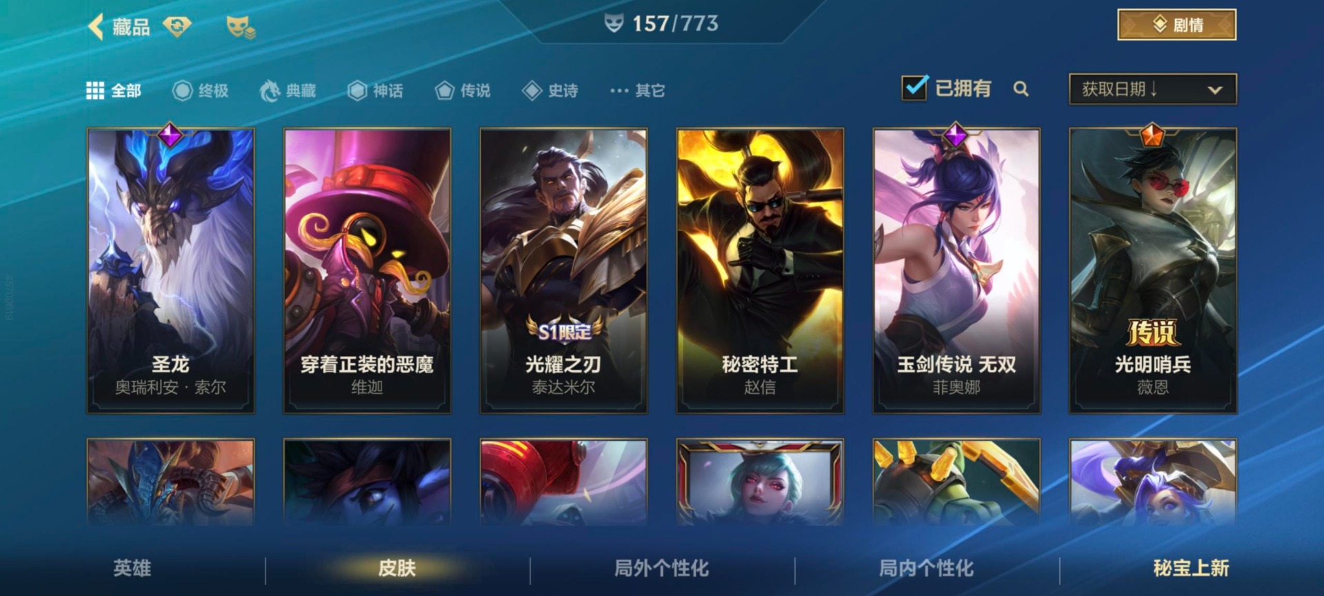 【lssa200】132英雄/196皮肤/5神话/17传说/87史诗/璀璨钻石/此志凌云 嘉文四世/龙的传人 李青/斗魂耀世 德莱文/最终boss 里·大魔王 维迦/灰烬骑士 派克/鸡里奥 加里奥/光明哨兵 薇恩/星之守护者 金克丝/星域游侠 崔斯特/黑夜使者 亚索/斗魂无双 亚索/天煞 劫/驯龙炮手 崔丝塔娜/星之守护者 陨 洛/律政大亨 蒙多医生/福牛守护者 厄运小姐/源计划:林 易/灌篮高手 德莱厄斯/神王 德莱厄斯/女主播 迦娜/源计划:泯灭 雷克顿/最终boss 维迦/霸天零式 赛恩/钢铁军团 盖伦/星之守护者 拉克丝/殇之机器人 阿木木/地狱火 阿木木/霸天战士 雷恩加尔/腥红之月 黛安娜/无限烈焰 黛安娜/恶魔之刃 泰达米尔/霸天异形 卡兹克/清剿小队 金克丝/喵喵魅影金克丝/猛虎 布隆/源计划:升华 烬/霸天龙神 奥瑞利安·索尔/灰烬领主 奥瑞利安·索尔/圣龙 奥瑞利安·索尔/东恒之曜 奥瑞利安·索尔/玉剑传说 苍鸾 莫甘娜/猎龙勇士 潘森/清剿小队 潘森/未来战士 潘森/k/da all out 阿卡丽/泳池派对 菲奥娜/福牛守护者 菲奥娜/苹果机器人 布里茨/战场之王 布里茨/源计划:风 亚索/战场之王 亚索/源计划:阴 劫/死亡誓约 劫/灵能特工 劫/未来战士 卢锡安/泳池派对 蕾欧娜/欧米伽小队 魔鬼伞兵 崔丝塔娜/小恶魔 崔丝塔娜/我,羽饰骑士 崔丝塔娜/娜就去看看 崔丝塔娜/大魔王 提莫/小蜜蜂 提莫/驯龙女巫 璐璐/银河魔装机神 希瓦娜/暮星之羽 霞/晨星之翎 洛/裂帛剪春 卡蜜尔/福牛守护者 嘉文四世/地下拳王 李青/奈落之炎 凯南/盗梦者 内瑟斯/太空律动 “狗头” 内瑟斯/魅惑女巫 厄运小姐/海之歌 泽丽/龙腾虎跃 瑟提/心之钢 瑟提/心之钢 永恩/西部魔影 德莱厄斯/禁卫机甲 格雷福斯/星之守护者 迦娜/玉剑传说 风仙子 迦娜/神龙尊者 苍龙 艾希/霸天巨兽 墨菲特/暗星 墨菲特/欧米伽小队 鬼影蛙人 菲兹/战场之王 吉格斯/奥术大师 吉格斯/暗星 韦鲁斯/光明哨兵 艾瑞莉娅/死亡誓约 卡特琳娜/源代码 索拉卡/地狱火 加里奥/天启骑士 杰斯/战地机甲 厄加特/猎龙勇士 奥拉夫/奈落之炎 慎/丧尸 布兰德/灵魂烈焰 布兰德/战场之王 布兰德/泳池派对 雷克顿/欧米伽小队 天雷爆破手 维迦/我,怒角 维迦/玉剑传说 无影 泰隆/西部魔影 锤石/盗梦暗影 锤石/源计划:末日 沃里克/宇航员 诺提勒斯/魅惑女巫 薇古丝/红帽迷影 薇古丝/s1光耀之刃/s2光耀之芒/s3光耀之灵/s4光耀之心/s5绯金魅影/s6绯金丽刃/s7绯金战斧/s8绯金鮫灵/s9王牌舰长/s10王牌上将/s11王牌勇将/s11王牌司令/s12龙冕先锋/s13龙冕御盾/s14龙冕神策/s16冠翎飞行员/s17冠翎御风使/s18冠翎巨神像/s19冠翎征服者/海上霸主 盖伦/光明骑士 卡尔玛/脏兮兮 努努和威朗普/三昧真火 孙悟空/斗战胜佛 孙悟空/时之砂 艾克/哥特女仆 奥莉安娜/光耀之心 奥莉安娜/光耀之刃 泰达米尔/秘密特工 赵信/龙冕先锋 赵信/死亡绽放 卡兹克/末路狂花 金克丝/光耀之芒 金克丝/双城之战 金克丝/猎龙勇士 布隆/狮心 布隆/龙冕御盾 布隆/探戈灵魂 崔斯特/王牌舰长 崔斯特/冠翎征服者 尼菈/探戈灵魂 伊芙琳/绯金魅影 伊芙琳/钢铁意志 潘森/超武乾坤:暗影 阿卡丽/皇家守卫 菲奥娜/绯金丽刃 菲奥娜/擂台皇帝 布里茨/小红帽 安妮/西部牛仔 亚索/腥红之月 亚索/偶像歌手 阿狸/焰尾妖狐 阿狸/宗师级钓鱼训练师 贾克斯/光明骑士 贾克斯/末世天使 凯尔/兔宝宝 提莫/熊猫 提莫/邪恶女巫 璐璐/光耀之灵 璐璐/冰霜亚龙 希瓦娜/铁拳执事 蔚/女警官 蔚/孤胆英豪 嘉文四世/王牌上将 嘉文四世/至高之拳 李青/海牛骑手 库奇/冠翎飞行员 库奇/超武乾坤:电弧 凯南/战争血统 蒙多医生/熔火之心 拉莫斯/制胜金球 拉莫斯/创世魔神 内瑟斯/西部牛仔 厄运小姐/女帝 厄运小姐/暗影 易/热血班长 德莱厄斯/末路教父 格雷福斯/无情重炮 格雷福斯/冠翎御风使 迦娜/金牌主播 德莱文/德莱德莱 德莱文/绯金战斧 德莱文/极地女神 艾希/王牌司令 艾希/哞利斯塔 阿利斯塔/黑暗骑士 阿利斯塔/无畏号 墨菲特/兔宝宝 菲兹/科学狂人 吉格斯/龙冕神策 吉格斯/飞车暴走族 古拉加斯/鲛妮座人 娜美/绯金鲛灵 娜美/迅箭 韦鲁斯/冰霜之刃 艾瑞莉娅/冲浪高手 辛吉德/炼金狂士 辛吉德/光执事 伊泽瑞尔/冰川勇者 伊泽瑞尔/冠翎巨神像 加里奥/铁哥们儿 奥拉夫/王牌勇将 奥拉夫/铁血狙击手 凯特琳/鳄霸 雷克顿/战争机器 赛恩/腥红之月 锤石