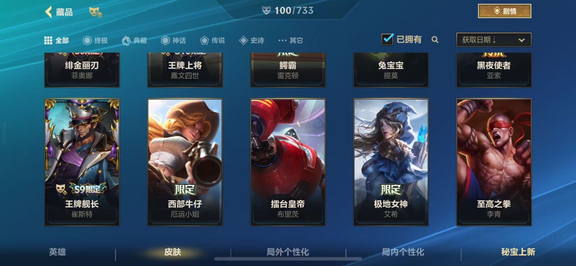 可二次 2神话 9传说 51史诗 139皮肤 126英雄 铂金 皮肤:艾希-王牌司令艾希-神龙尊者 苍龙艾希-极地女神艾希-源计划:联合璐璐-星之守护者璐璐-光耀之灵璐璐-邪恶女巫璐璐-泳池派对蕾欧娜-烧烤女神蕾欧娜-月蚀骑士蕾欧娜-日蚀骑士劫-灵能特工劫-死亡誓约劫-冲