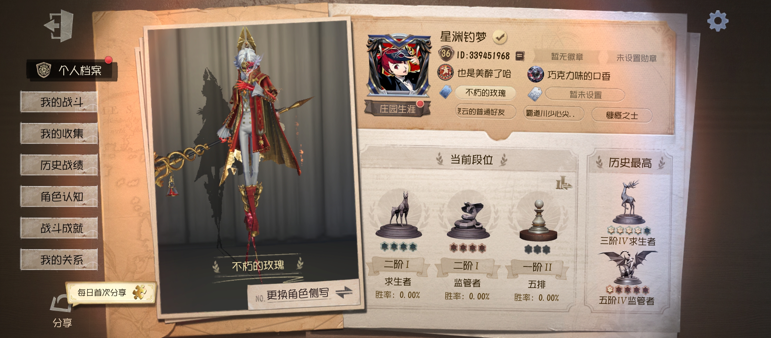 [11935129]第五人格 安卓官服 换绑冷却10.21 守夜人二限 万薯 4金皮 2金挂 哲人石 民谣乐手 司药 片刻闲暇 芳泽霞 坂本龙司 辉锑矿 冬 流离的月光 长腿小姐