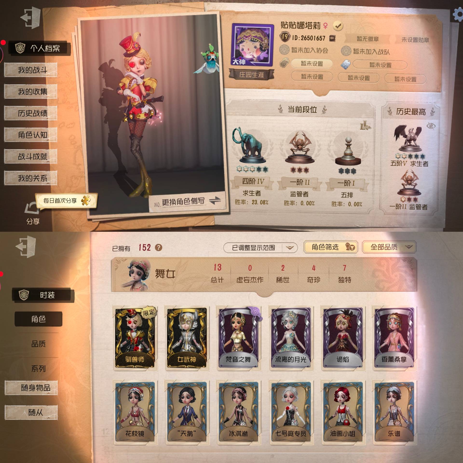 [11935198]第五人格 vivo渠道服 舞女情号 全女金 万薯 5金皮 3金挂 驯兽师 中岛敦 女武神 花序 片刻闲暇 陶梦嫣 年岁 流离的月光 海女巫 动植物学教授 香薰桑拿 苏珊娜 梦之使者 女仆装