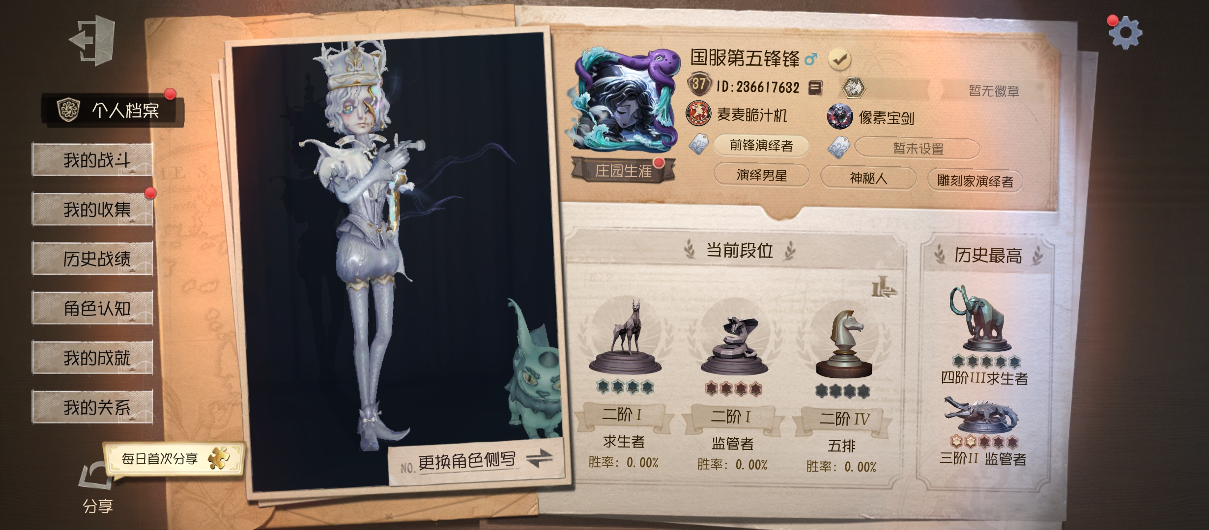 [14339230]第五人格 安卓官服换绑冷却12.31 1紫皮卡 7金皮 木偶师限定king-h1 川上富江 冠军舵手 花祭 司药 渊 片刻闲暇 芳泽霞 skull 坂本龙司