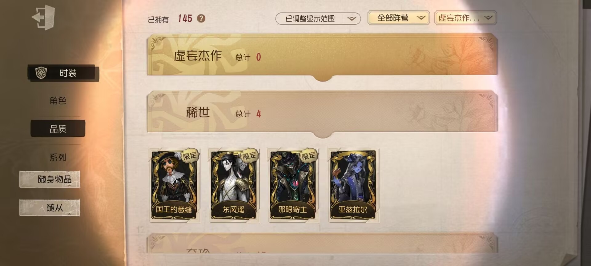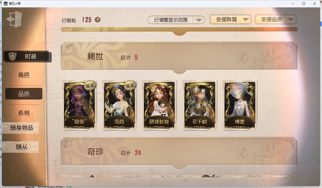 [16602964]安卓官服 手机账号 125时装 6金皮 24紫皮 7随从 49随身物品 【时装】爱丽丝·德罗斯-片刻闲暇医生-永生花咒术师-“宿命”“小女孩”-欧律狄刻空军-梅爱丽教授-吟游诗人气象学家-茶歇小姐昆虫学者-缚愿小说家-无归的昨日爱哭鬼-善恶的本性园丁-郁金香之梦医生-司药玩具商-花千树哭泣小丑-熄灭的太阳小说家-“伊始新篇”勘探员-矿业董事“杰克”-绿纹大触园丁-真相小姐调香师-时之砂盲女-音波盲女-吉尔达摄影师-阿波罗 【随身物品】诅咒黑云稀世转相仪奇珍作响的铃铛奇珍枯萎的花冠奇珍厂长-家庭时光奇珍“女王蜂”-命茧奇珍“慈善家”-谎言之杖稀世日晷密钥(奇珍)法典(奇珍)无尽森林稀世尼古拉斯的遗嘱奇珍