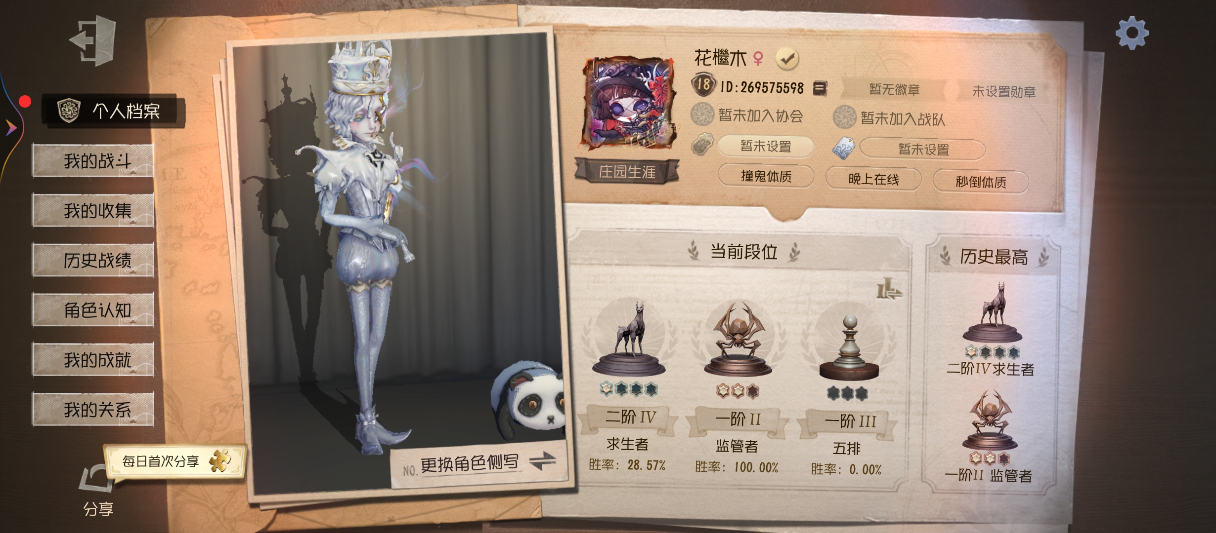 [16541535]第五人格 oppo渠道服 求生小号 296时装 5金皮 4金挂 芙莉莲 盖提亚之遗 渊 变彩 片刻闲暇 广津柳浪 肖驰 花边新闻 江户川乱步 温暖的平安夜