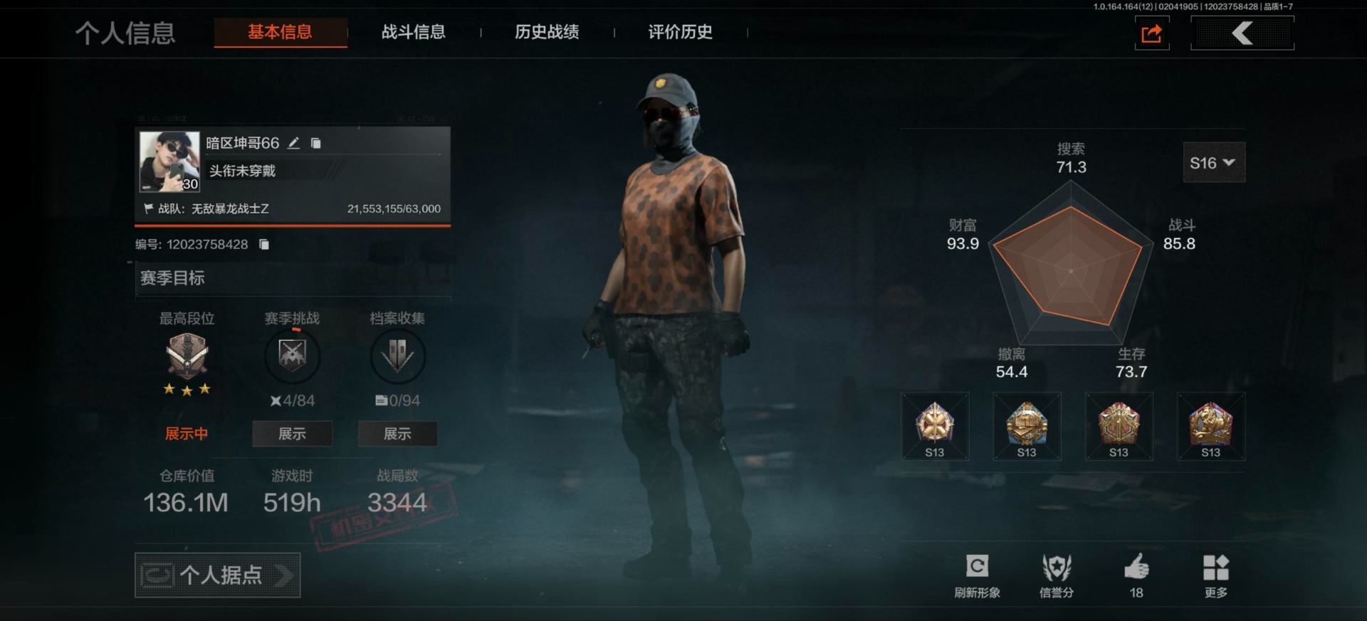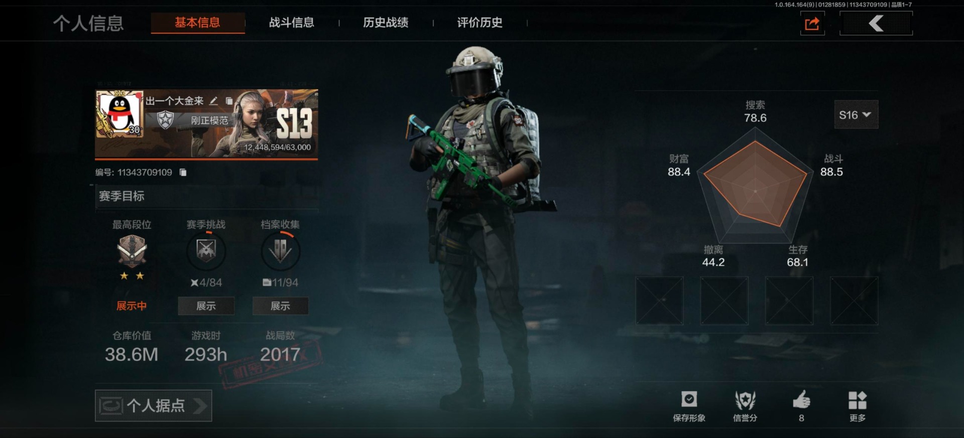 【aqzg1228】等级:30/段位:暗区传说/仓库价值百万:57.1/柯恩币:16325168/涂鸦利刃/棱光裂变qbu191