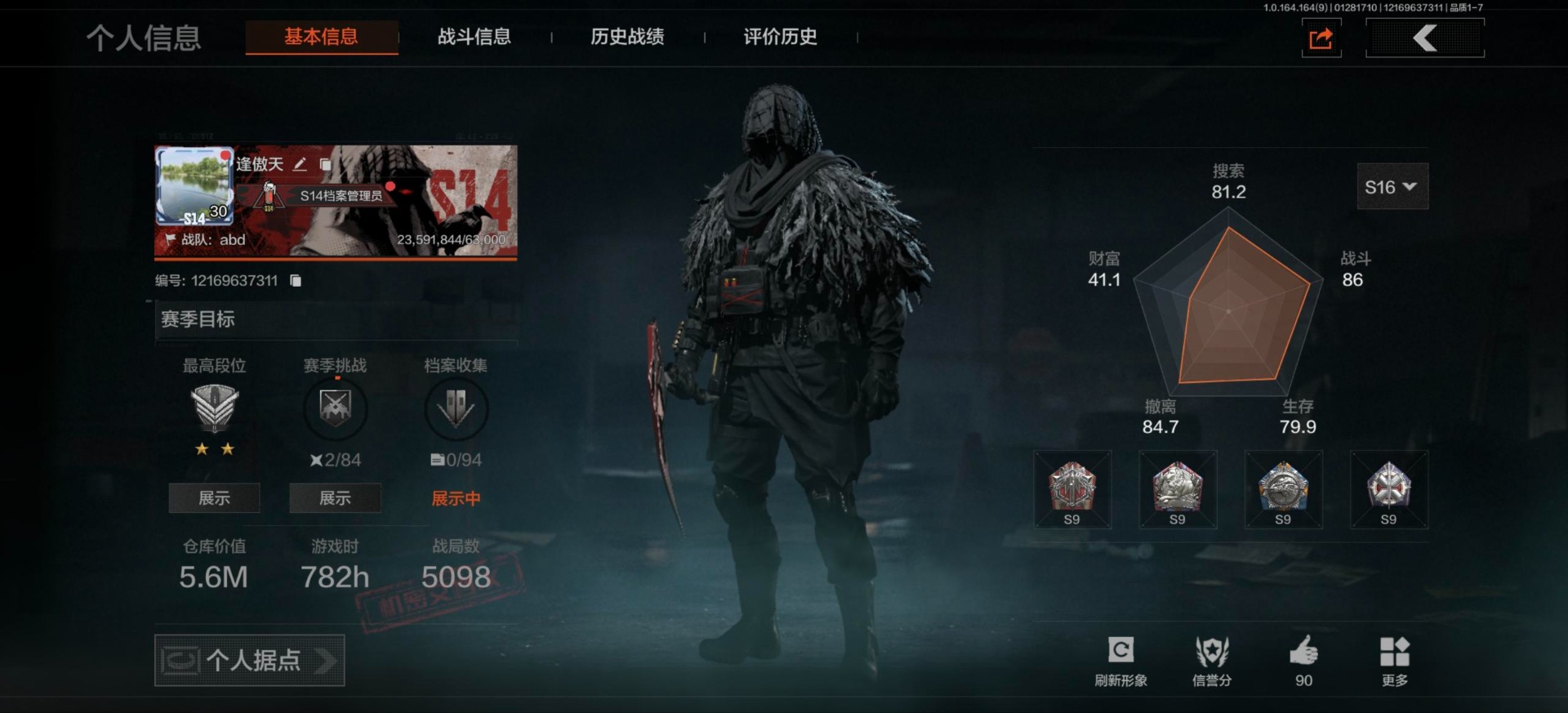 库存价值12.2 4近战武器 4金呛皮 可修改实名 【柯恩币数量】12182k 【近战武器】工兵铲收割者苍穹利爪来战·开山刀 【金色呛皮】战术大师·aek旧王圣谕·vss骑士之剑·ax50告丧夜曲·aug 【紫色呛皮】鱼跃丹青·ak102鱼跃丹青·qbu191鱼跃丹青·dt md