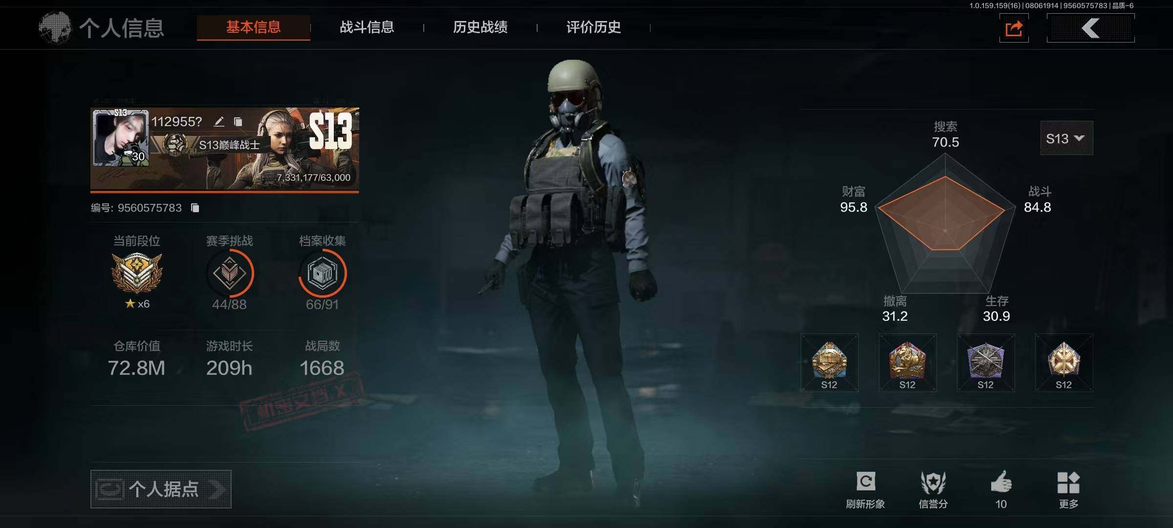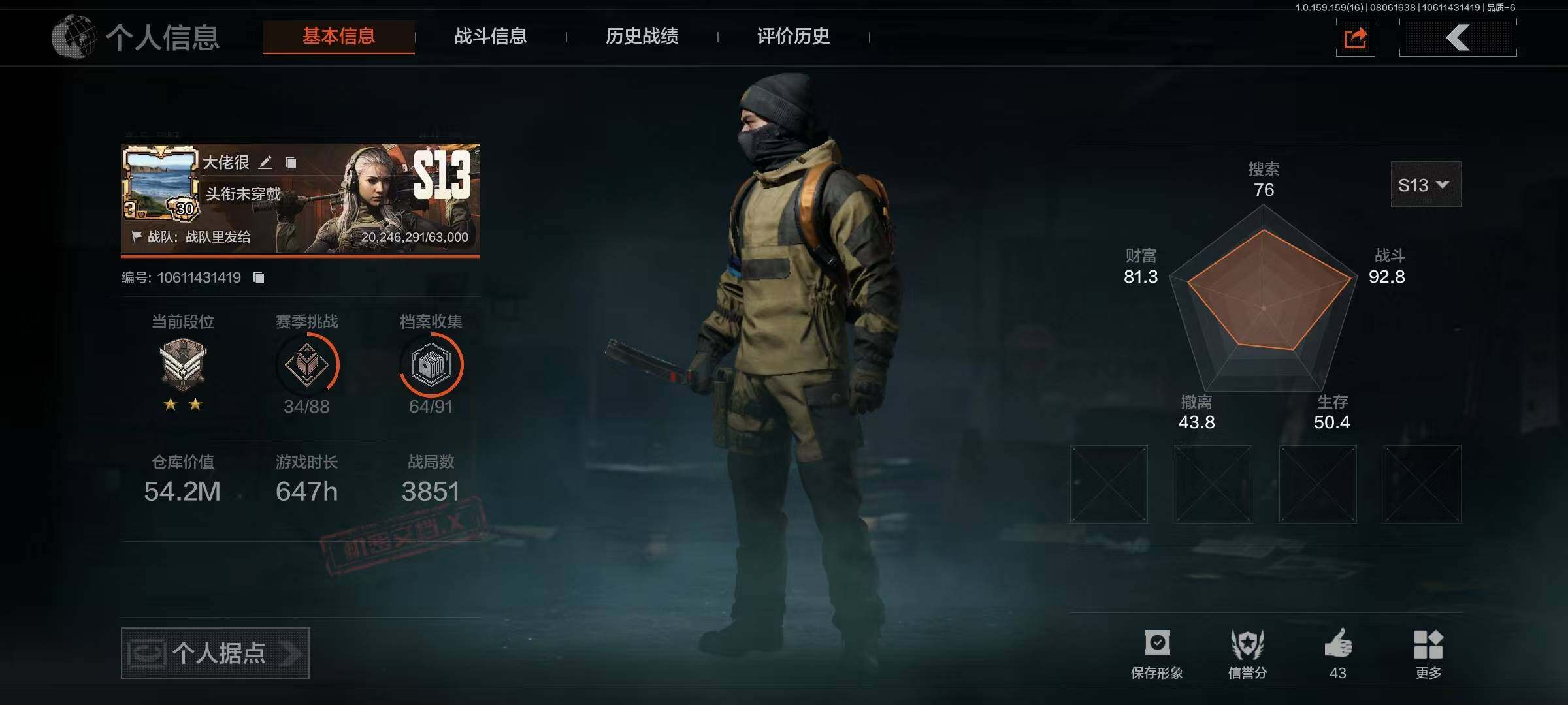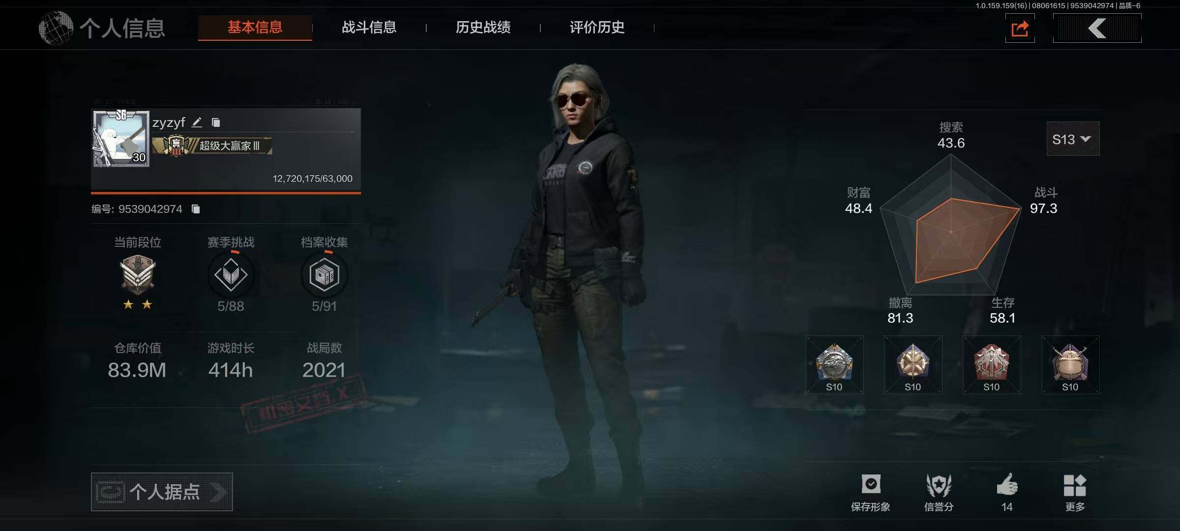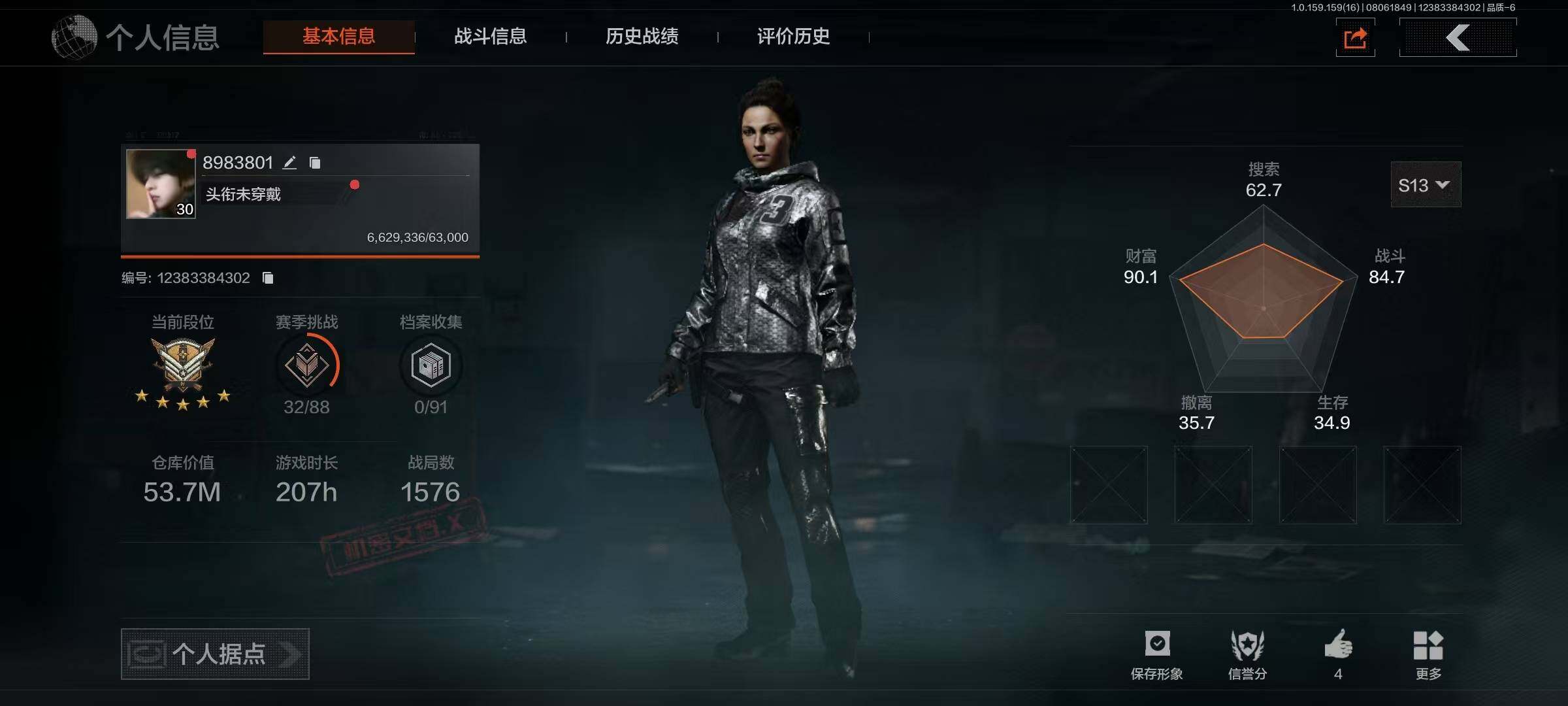 [10442717]暗区 可二次 现金号 仓库价值83.9m 8000万现金 多未开礼包 竞技·aug 湖冰倒影·ace31 骑士之剑·mk14 敬伙伴·m16 暗区无限·联动夹克衫