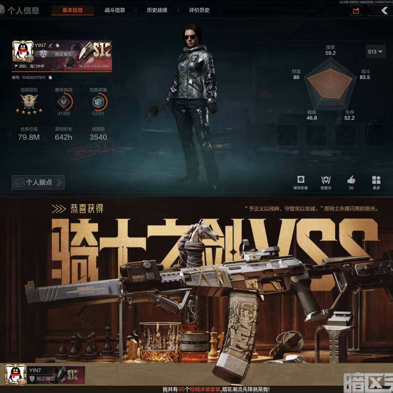 [10450718]暗区 可二次 6套猛攻号 男神带妹号 仓库价值79.8m 4800万现金 多满改呛 1金呛 骑士之剑·vss 骑士之剑·mk14 都市夜影套装 竞技·m4a1 火力倾泻·akm 炎夏浪花·h416 竞技·aug 炎夏浪花·ar57 骑士之剑·ace31