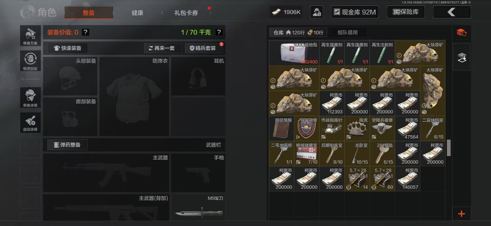 [9940453]暗区 可二次 精美小号 1金呛 多钥匙 仓库价值36.8m 2559万现金 竞技·fal 火力倾泻·akm 炎夏浪花·h416 炎夏浪花·ar57 无畏·usas12 暗区无限·联动夹克衫 工兵铲
