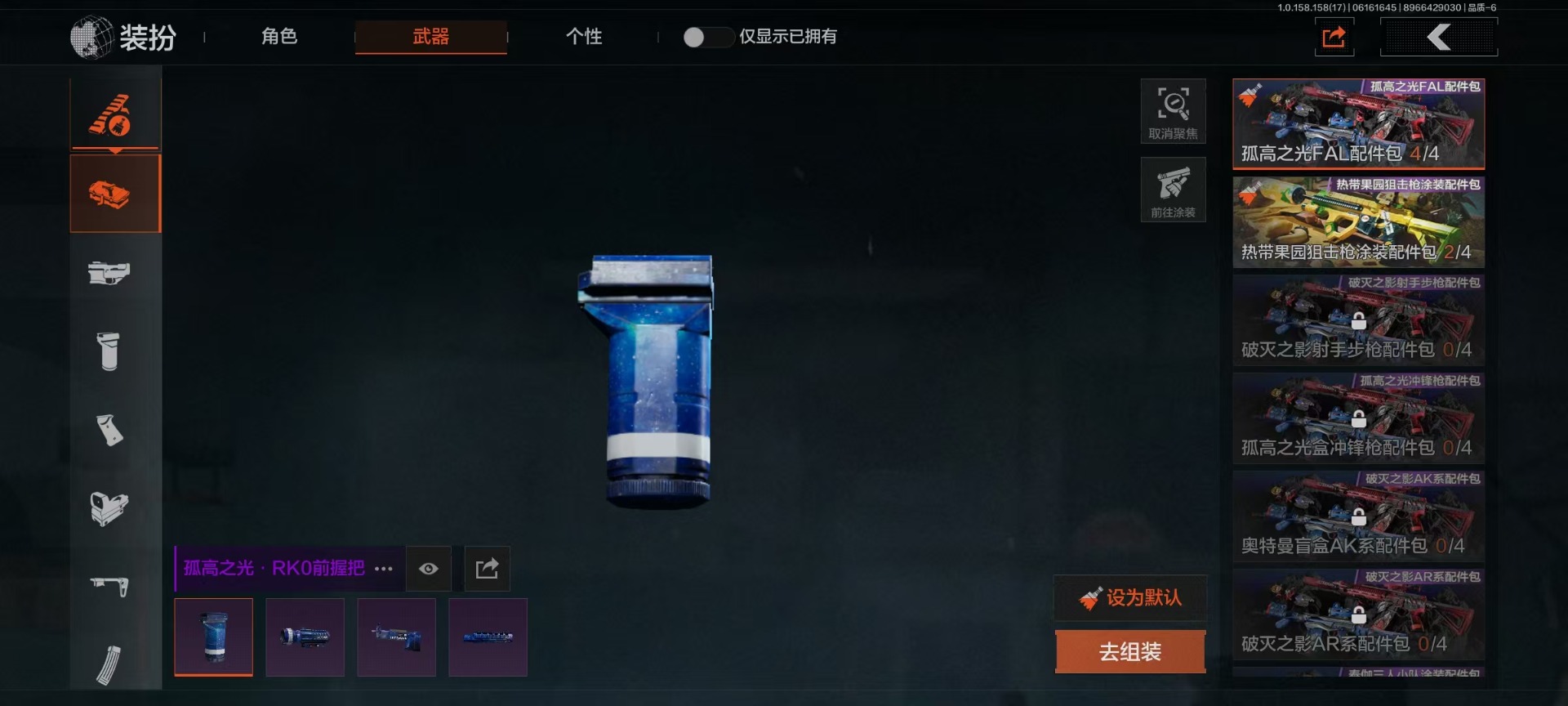 段位:王牌 冬日手套,玉鸾挂枝·手套,下弦月,贝利亚黄昏,冬日冰镐,裁决手杖剑,工兵铲,涂鸦利刃,三尺万仞·战术剑,寒牙手刺,旧日主宰,来战·开山刀,瀚星斩铁,07式林地迷彩·q191,百锻寒芒·t03,百锻寒芒·t951,冬日手套,苍白之触手套,蓝色咆哮·h416,伸冤者迷踪·m4a1,银月·an94,冬夜·ak12,骑士之剑·m4a1,诸星之子·fal,林中人fal,堕落者h416,午夜梦魇·m110,水果·ar57,冰河碎影·mk14,战术大师·fal,伦琴幻影·h416,苍白隐者·伪装服,都护铁衣·战术甲胄,黑暗行者特摄戏服,噤声者吉利服,钢铁壁垒作战服,危崖魅影作战服,等高线·scar,盛冬·s12k,全地形数码·m110,和平之手·fal,火绒草·aug,玄戈梨花·m110,冬日姜兵·t03,山地伪装·ak74n,雪山之王·f2000,阴影·an94,壁垒·an94,骑士之剑·mk14,危崖敌影·f2000,来战·akm,来战·ak74n,自喷网格·h416,迅影毒锋·ak12,胜利锋刃·aek,深暗星云·m4a1,巅峰·m4a1,德尔塔小队·m4a1,竞技·m4a1,电动工具·mdr,飞鲨·ace31,涂鸦·ak102,极恶·aug,缟兵玄墨·akm,玄戈梨花·t03,缟兵玄墨·t03,缟兵玄墨·vss,玄戈梨花·vss,缟兵玄墨·m110,雪原凌锋·svds,冬日姜兵·scar,湖冰倒影·ace31,幽灵大游行·vss,幽灵大游行·t951,白垩游魂·ak102,白垩游魂·ace31,万众狂欢套装,台风iv竞技运动服