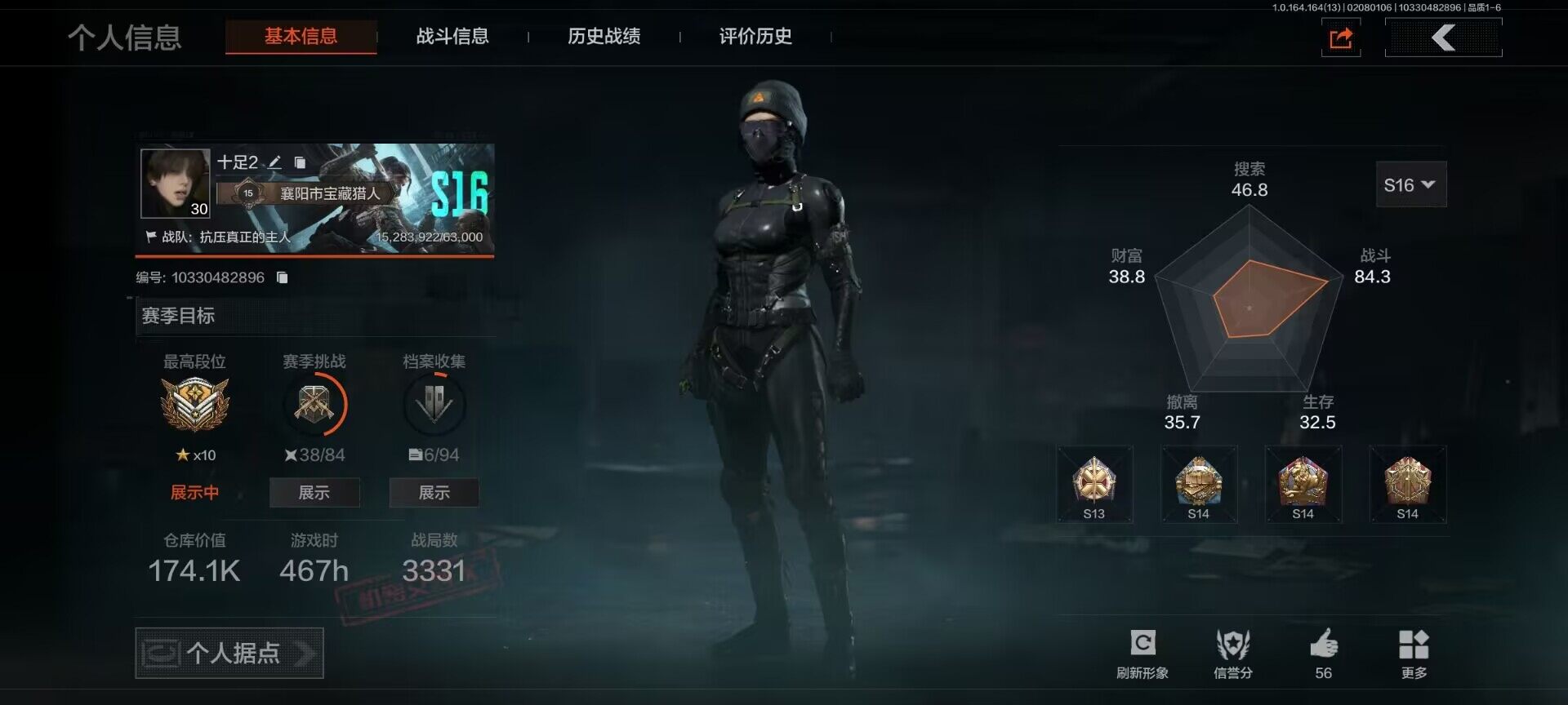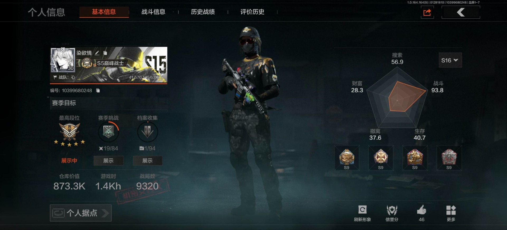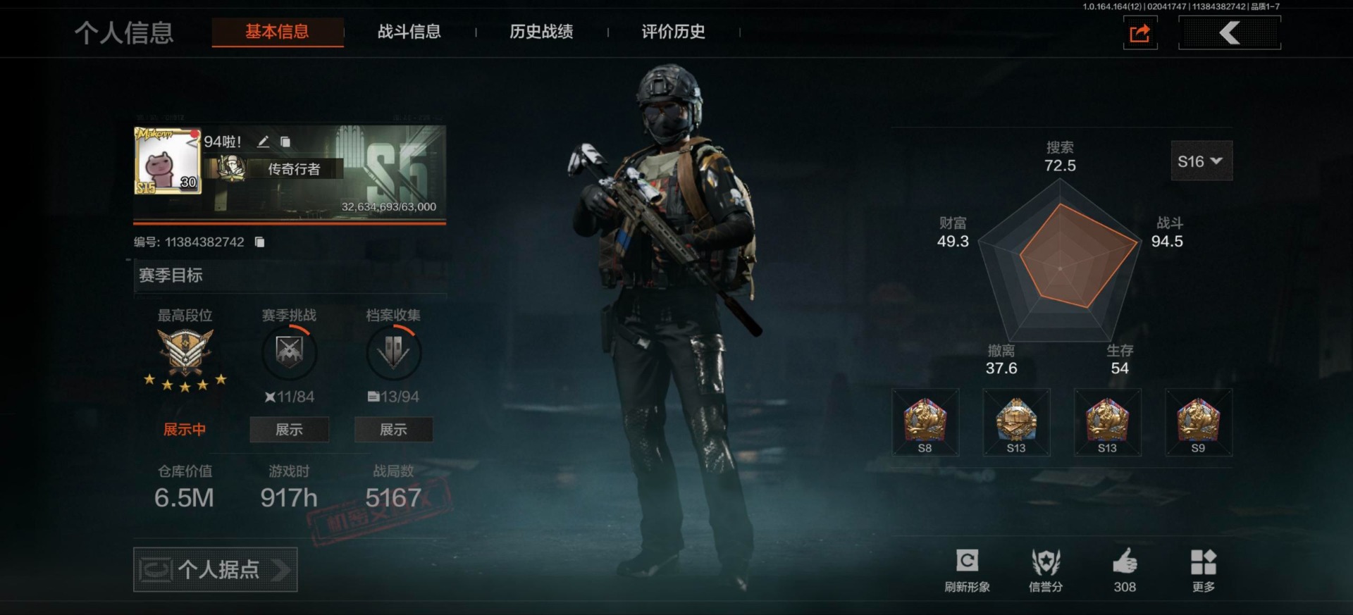 【aqzg1237】等级:30/段位:大师/仓库价值百万:20.4/柯恩币:273290000/百炼恒常/工兵铲/地脉深处fal/战术大师aek