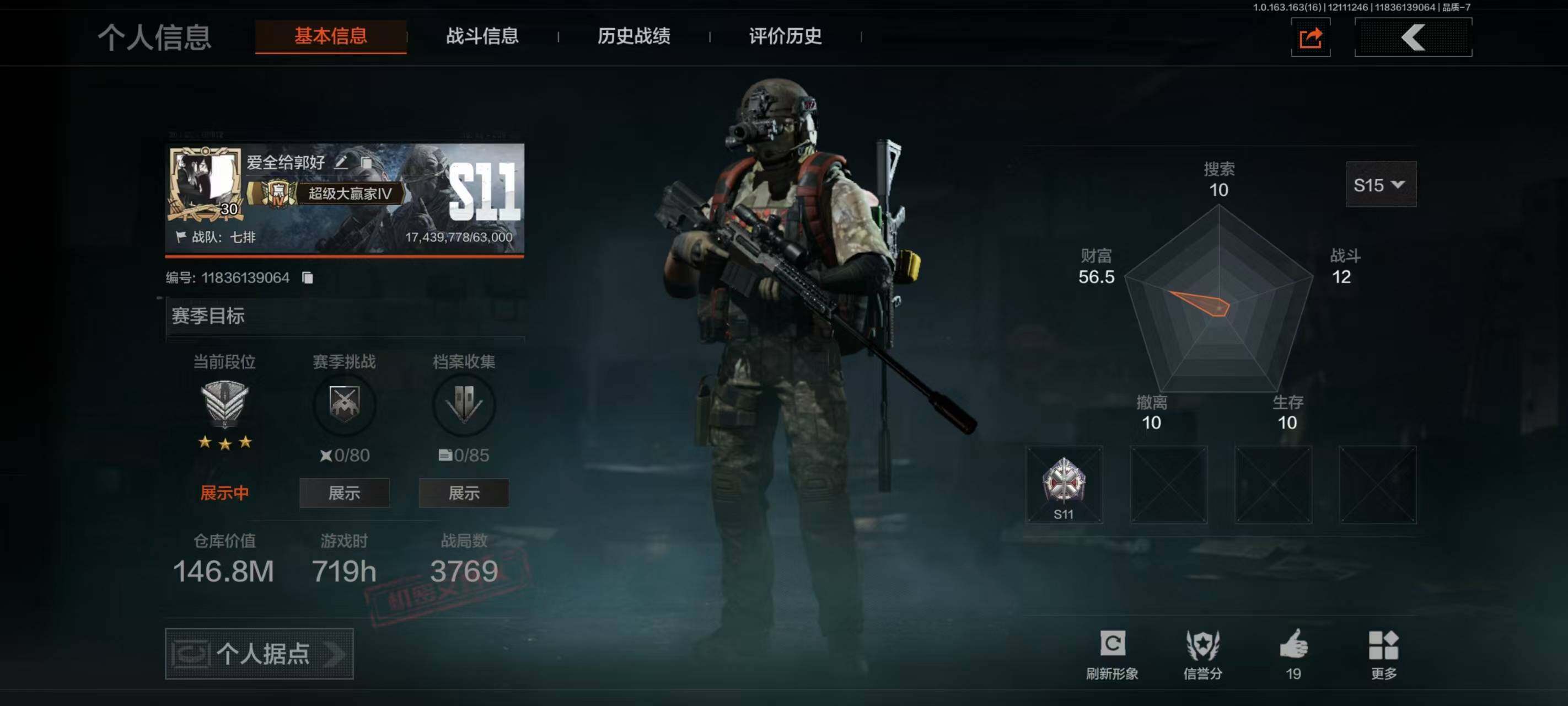 【aqn50】等级:30/段位:暗区传说/仓库价值百万:2.2/柯恩币:1592/涂鸦利刃/苍穹利爪