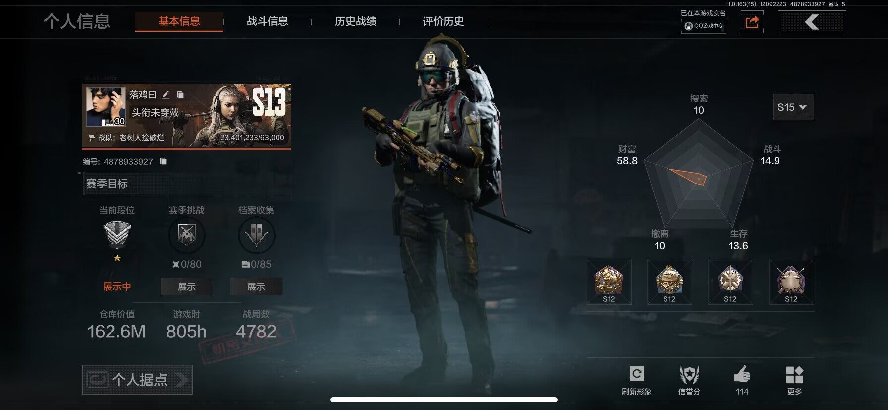 【aqqh47】段位:精英/仓库价值百万:162/裁决手杖剑