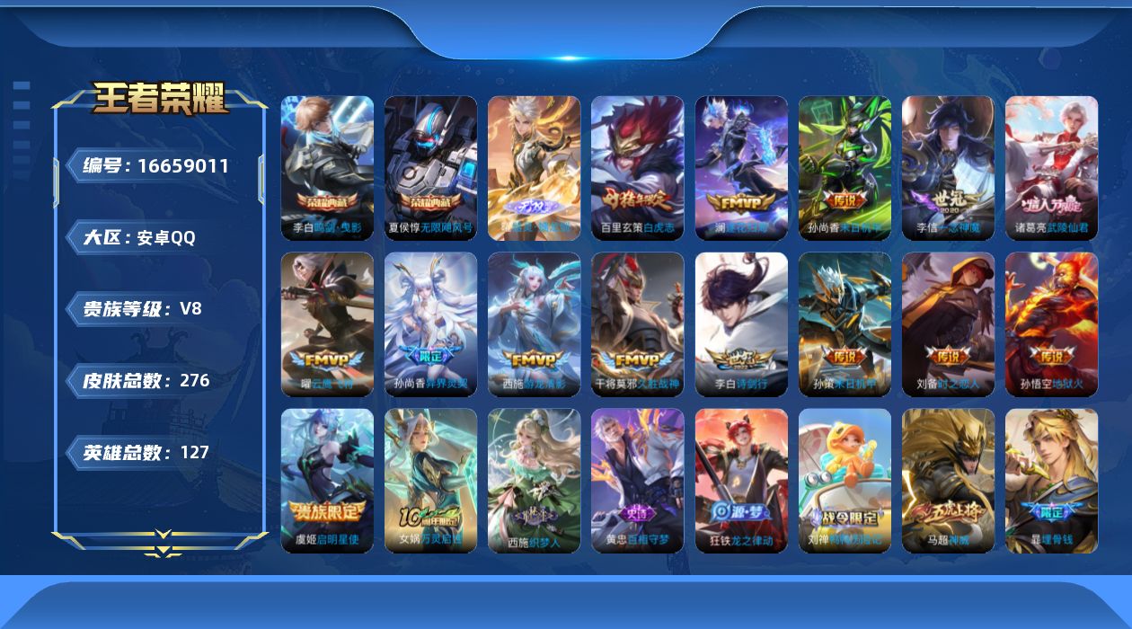 [16659011]v8 2典藏 1无双 14传说 127英雄 276皮肤 可修改实名 【英雄全皮】敖隐全皮影全皮 【稀有英雄】敖隐小龙人大司命嬴政始皇帝韩信韩跳跳夏洛特夏师傅艾琳橘右京橘子娜可露露鸟人不知火舞赵云金蝉唐僧戈娅 【荣耀水晶】鸣剑·曳影无限飓风号高达 【无双皮】器灵·螭龙剑 【传说皮】游龙清影小青龙地狱火末日机甲-孙尚香绿蚂蚱一念神魔久胜战神云鹰飞将小将军时之恋人-刘备电焊工末日机甲-孙策澜逐花归海 【珍宝阁皮】妄想食味万物之道蔷薇恋人 【赛季/战令皮】噬灭天穹s37古海寻踪s33星界游侠海盐诗旅s30擒涛扼浪s31潮玩骑兵探海日志s32流音漫舞顽趣-梦奇地狱燃心剑破天穹s35天穹祈灯s34青焰无极苍威无极天穹之誓s36暖冬·兔眠驱傩正仪s24千军破阵s25云间偶戏神迹守卫-墨子航海奇遇记火炮绅士沙漠行僧s26幻夜卜梦吟游魔法夜都怪侠金庭之子s27电玩高手电玩铁子午后时光大漠名商s28云中旅人s29 【史诗皮】琥珀纪元伽罗化蝶舞鸭鸭历险记-刘禅龙之律动百相守梦-黄忠织梦人蔬乡物语鲁班七号茶境仙星界战将埋骨钱万灵启世遇见神鹿白龙吟黄金分割率特工魅影高渐离燃音魔法蒙恬荣光圣徽冰冠公主偶像歌手晚萤江河有灵暗夜猫娘末日机甲-吕布猫狗日记-孙策猫狗日记-大乔乱世虎臣修罗女仆咖啡摇滚巨星水果甜心绅士熊喵天才门将星夜王子心灵骇客时之奇旅-安琪拉功夫厨神德古拉伯爵暗隐猎兽者鬼剑武藏心灵战警乐园奇幻夜天秀·启明舞动绿茵地狱岩魂纤云弄巧拒霜思缤纷独角兽乘风破浪逐浪之夏月团寄思水晶猎龙者曙光守护者箭羽风息金属风暴原初追逐者圣诞狂欢鹰眼统帅暗夜贵公子魅力维加斯黎明之约赏金猎手无心未来纪元-赵云 【限定皮】白虎志电光耗子武陵仙君小桃花异界灵契白毛香傲雪梅呛神威电光马子瑞麟志木兰年限高山流水诗剑行五谷丰年游园惊梦山海·玄木吟马可年限 【普通皮】神迹守卫铁骨偃魂大乔绒语心约魅影绮裳访茗客苍林狼骑雪境奇遇-西施