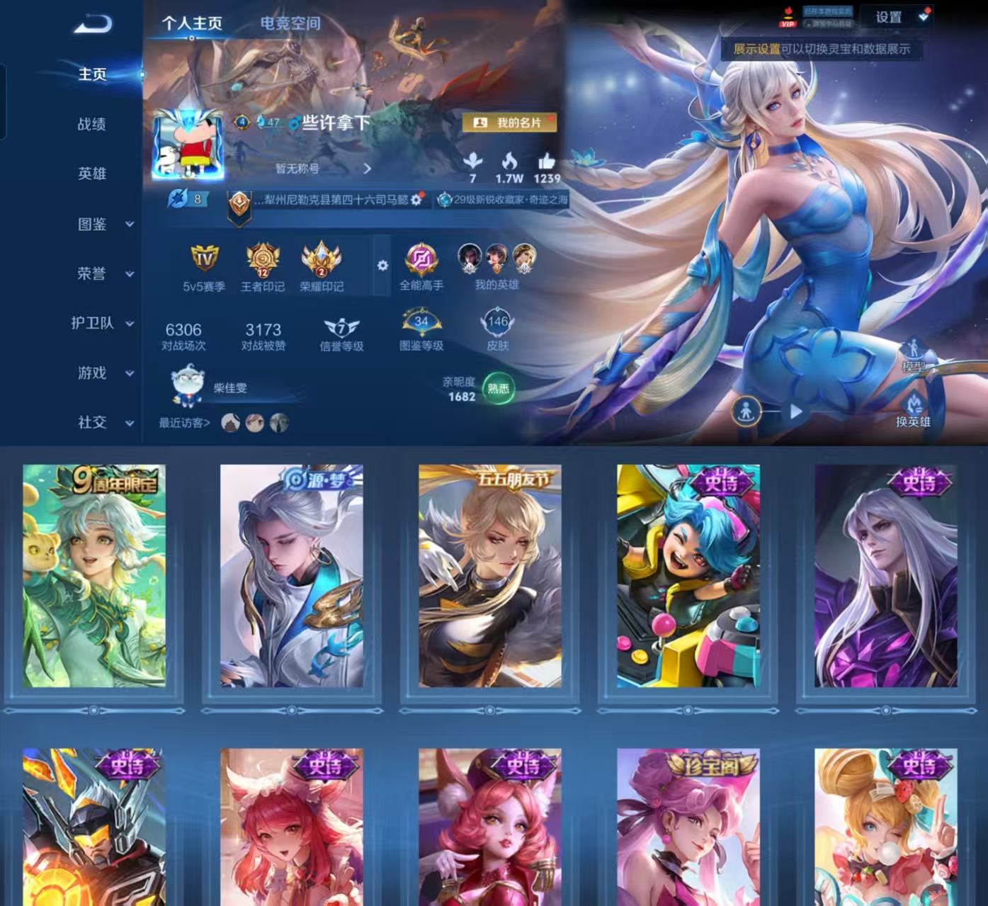 贵族10/皮肤358/典藏6/传说35/史诗103/英雄125/孙悟空全息碎影/夏侯惇无限飓风号/李白鸣剑曳影/花木兰九霄神辉/铠银白咏叹调/韩信弑呛猎影/武则天神器明辉仪/李白碎月剑心/曜器灵螭龙剑/嬴政优雅恋人/高渐离玩趣恶龙/狂铁特工战影/吕布天魔缭乱/孙悟空地狱火/宫本武藏地狱之眼/孙尚香末日机甲/李白凤求凰/百里玄策白虎志/刘备时之恋人/孙悟空零号赤焰/虞姬启明星使/镜炽阳神光/铠绛天战甲/周瑜音你心动/西施游龙清影/王昭君乞巧织情/赵云淬星耀世/蔡文姬花朝如约/李白诗剑行/吕布怒海麟威/曜山海苍雷引/孙悟空齐天大圣/项羽无限倾心/夏洛特浮生妄/澜电玩雷克斯/宫本武藏惊梅引/吕布遇见神鼓/艾琳觅芳踪/澜逐花归海/铠琥珀纪元/赵云乘龙铭钟鼎/吕布曦玄引/亚连落雪白狼/铠冥王哈迪斯/桑启鸣野蒿/裴擒虎祥瑞亨通/澜愿照九州拓/铠冥王哈迪斯/蔡文姬夏日便利店/虞姬夏日便利店/姜子牙天穹之誓/狄仁杰阴阳师/赵云皇家上将/赵云引擎之心/赵云龙胆/墨子神迹守卫/嬴政优雅恋人/鲁班七号狮舞东方/高渐离玩趣恶龙/阿轲迷踪丽影/钟无艳超时空战士/扁鹊奇幻香踪/芈月幻夜卜梦/吕布天魔缭乱/吕布猎兽之王/吕布御风骁将/吕布遇见神鼓/周瑜赤莲之焰/元歌云间偶戏/元歌无心/夏侯惇朔风刀/甄姬落雪兰心/马可波罗暗影游猎/狄仁杰魔术师/狄仁杰万华元夜/达摩星际陆战队/达摩沙漠行僧/项羽海滩派对/项羽无限倾心/老夫子醍醐杖/老夫子航海奇遇记/关羽冰锋战神/程咬金演武夺筹/刘邦夺宝奇兵/韩信逐梦之影/韩信飞衡/兰陵王驯魔猎人/兰陵王金庭之子/亚瑟潮玩骑士王/孙悟空美猴王/孙悟空至尊宝/孙悟空大圣娶亲/孙悟空零号赤焰/孙悟空孙行者/孙悟空齐天大圣/后羿如梦令/后羿圣弓游侠/刘备百相守梦/李元芳银河之约/李元芳云中旅人/虞姬启明星使/钟馗神迹守卫/钟馗驱傩正仪/杨戬潮玩骑兵/雅典娜单词大作战/鬼谷子原初探秘者/鬼谷子五谷丰年/铠青龙志/苏烈玄武志/苏烈千军破阵/百里玄策白虎志/百里守约朱雀志/弈星混沌棋/梦奇顽趣/沈梦溪星空之诺/沈梦溪大漠名商/沈梦溪匿光破解者/明世隐疑决卦/裴擒虎李小龙/裴擒虎擒涛扼浪/狂铁电玩高手/米莱狄胡桃异想国/云中君纤云弄巧/盾山御銮/猪八戒西部大镖客/上官婉儿梁祝/嫦娥暖冬兔眠/曜山海苍雷引/西施玲珑珍味/蒙犽狂想玩偶喵/鲁班大师探海日志/桑启海盐诗旅/夏洛特浮生妄/暃星界游侠/戈娅驭风魔法/艾琳流音漫舞/司空震地狱燃心/阿古朵江河有灵/张良古海寻踪/艾琳觅芳踪/蒙恬荣光圣徽/高渐离燃音魔法/妲己灵卜魔法/鬼谷子天穹祈灯/李白碎月剑心/铠琥珀纪元/赵云乘龙铭钟鼎/吕布曦玄引/亚连落雪白狼/刘邦剑破天穹/镜青焰无极/项羽苍威无极/刘备异域游侠/周瑜熔金海岸/百里玄策白虎志/百里守约朱雀志/铠青龙志/苏烈玄武志/孙悟空美猴王/李白凤求凰/吕布御风骁将/韩信飞衡/马超神威/赵云龙胆/曜山海苍雷引/赵云乘龙铭钟鼎/夏侯惇朔风刀/狄仁杰万华元夜/达摩沙漠行僧/老夫子醍醐杖/程咬金演武夺筹/兰陵王金庭之子/张良古海寻踪/李元芳云中旅人/钟馗驱傩正仪/鬼谷子原初探秘者/苏烈千军破阵/弈星混沌棋/梦奇顽趣/沈梦溪大漠名商/明世隐疑决卦/裴擒虎擒涛扼浪/盾山御銮/鲁班大师探海日志/桑启海盐诗旅/鬼谷子天穹祈灯/蒙恬荣光圣徽/刘邦剑破天穹/姜子牙天穹之誓/墨子神迹守卫/蔡文姬夏日便利店/虞姬夏日便利店/鲁班七号狮舞东方/阿轲迷踪丽影/钟无艳超时空战士/扁鹊奇幻香踪/芈月幻夜卜梦/吕布猎兽之王/周瑜赤莲之焰/元歌云间偶戏/甄姬落雪兰心/马可波罗暗影游猎/达摩星际陆战队/老夫子航海奇遇记/刘邦夺宝奇兵/兰陵王驯魔猎人/艾琳流音漫舞/亚瑟潮玩骑士王/后羿圣弓游侠/李元芳银河之约/钟馗神迹守卫/杨戬潮玩骑兵/雅典娜单词大作战/沈梦溪星空之诺/狂铁电玩高手/米莱狄胡桃异想国/猪八戒西部大镖客/嫦娥暖冬兔眠/西施玲珑珍味/蒙犽狂想玩偶喵/司空震地狱燃心/暃星界游侠/戈娅驭风魔法/高渐离燃音魔法/妲己灵卜魔法/镜青焰无极/项羽苍威无极/鲁班七号电玩小子/项羽苍穹之光/露娜紫霞仙子/阿轲暗夜猫娘/赵云皇家上将/赵云未来纪元/貂蝉圣诞恋歌/甄姬冰雪圆舞曲/王昭君偶像歌手/狄仁杰魔术师/廉颇地狱岩魂/宫本武藏鬼剑武藏/孙尚香水果甜心/嬴政优雅恋人/嬴政摇滚巨星/妲己魅力维加斯/妲己女仆咖啡/墨子龙骑士/墨子金属风暴/吕布圣诞狂欢/刘禅绅士熊喵/曹操幽灵船长/李白千年之狐/吕布末日机甲/张飞乱世虎臣/韩信白龙吟/关羽冰锋战神/孙悟空至尊宝/赵云引擎之心/花木兰水晶猎龙者/刘邦德古拉伯爵/韩信逐梦之影/夏侯惇乘风破浪/小乔缤纷独角兽/兰陵王暗隐猎兽者/诸葛亮黄金分割率/亚瑟心灵战警/雅典娜冰冠公主/安琪拉心灵骇客/百里守约特工魅影/铠曙光守护者/蔡文姬舞动绿茵/刘禅天才门将/李元芳逐浪之夏/程咬金功夫厨神/白起星夜王子/阿轲节奏热浪/孙策猫狗日记/铠青龙志/百里守约朱雀志/孙悟空大圣娶亲/苏烈玄武志/伽罗箭羽风息/鲁班七号狮舞东方/狄仁杰鹰眼统帅/兰陵王驯魔猎人/上官婉儿梁祝/李元芳银河之约/娜可露露晚萤/韩信飞衡/后羿如梦令/大乔白蛇/不知火舞魅语/阿轲迷踪丽影/橘右京修罗/马超神威/赵云龙胆/马可波罗暗影游猎/蒙犽狂想玩偶喵/裴擒虎李小龙/云中君纤云弄巧/元歌云间偶戏/吕布御风骁将/