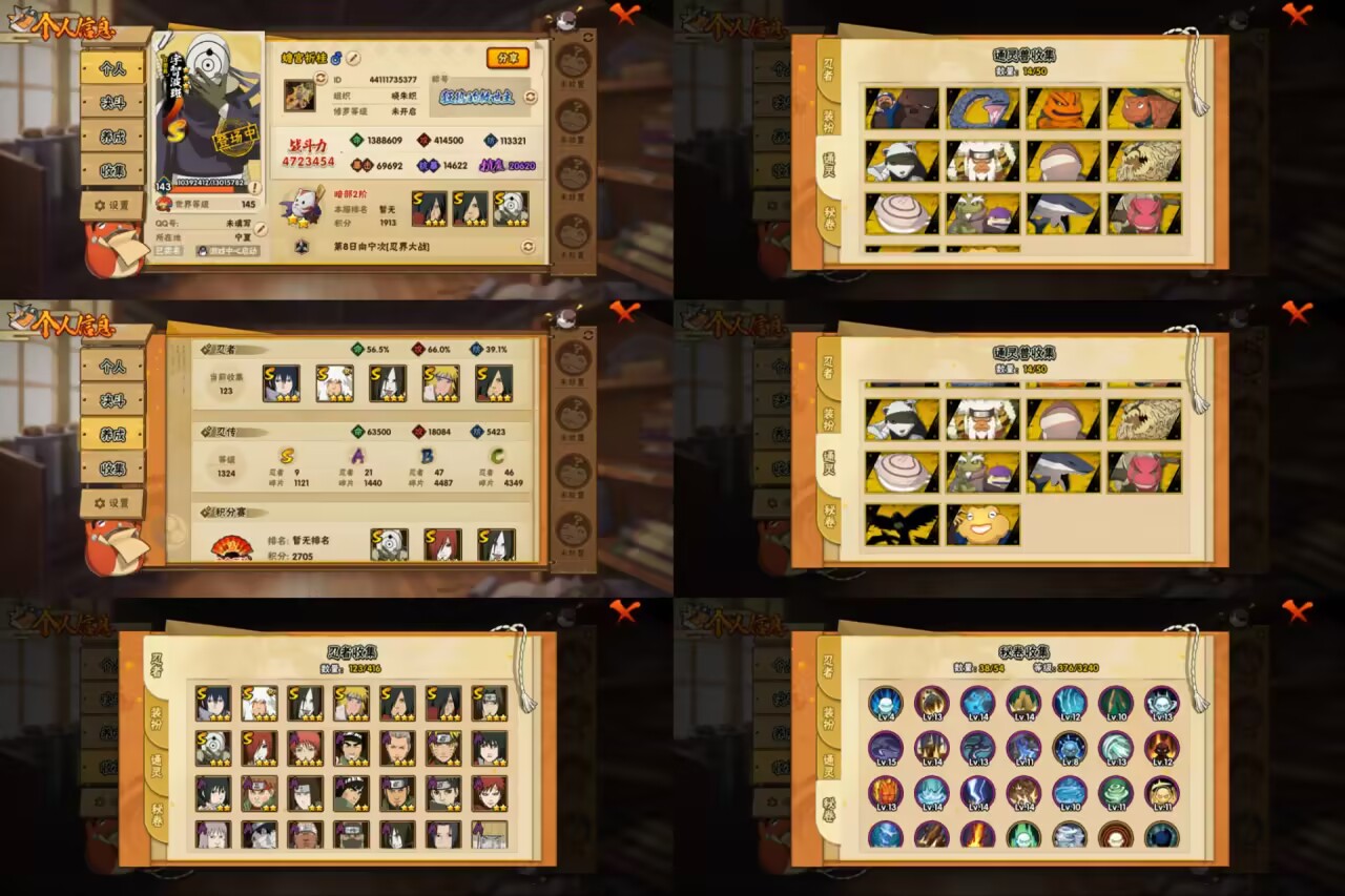 [14496355]v11 14s忍 25a忍 600w战力 金式78片 ll4160 【s级忍者】:千手柱间「秽土转生」3星,宇智波鼬「秽土转生」3星,宇智波斑「秽土转生·解」3星,艾「忍界大战」3星,宇智波止水「须佐能乎」3星,旗木卡卡西「须佐能乎」3星,自来也「舞之豪杰」3星,千手扉间3星,波风水门3星,药师兜「仙人模式」3星,神秘面具男「红夜之刃」3星,佩恩「天道」3星,宇智波佐助「永恒万花筒」3星,大筒木桃式3星 【a级忍者】:波风水门「青年」2星,大蛇丸「晓」2星,奇拉比「忍界大战」2星,飞段3星,飞段「死司凭血」2星,干柿鬼鲛5星,干柿鬼鲛「鲛肌融合」2星,漩涡博人「桃式显现」2星,漩涡鸣人「仙人模式」2星,迈特凯4星,我爱罗「疾风传」3星,我爱罗「忍界大战」2星,蝎2星,猿飞阿斯玛4星,宇智波鼬2星,宇智波佐助「须佐能乎」2星,宇智波佐助「万花筒写轮眼」2星,药师兜「半蛇斗篷」2星,日向宁次「忍界大战」2星,长十郎「六代目水影」2星,李洛克「忍界大战」2星,黑土「博人传」2星,千手扉间「漂泊武士」2星,秋道丁次「忍界大战」2星,千代「近松十人卫」2星