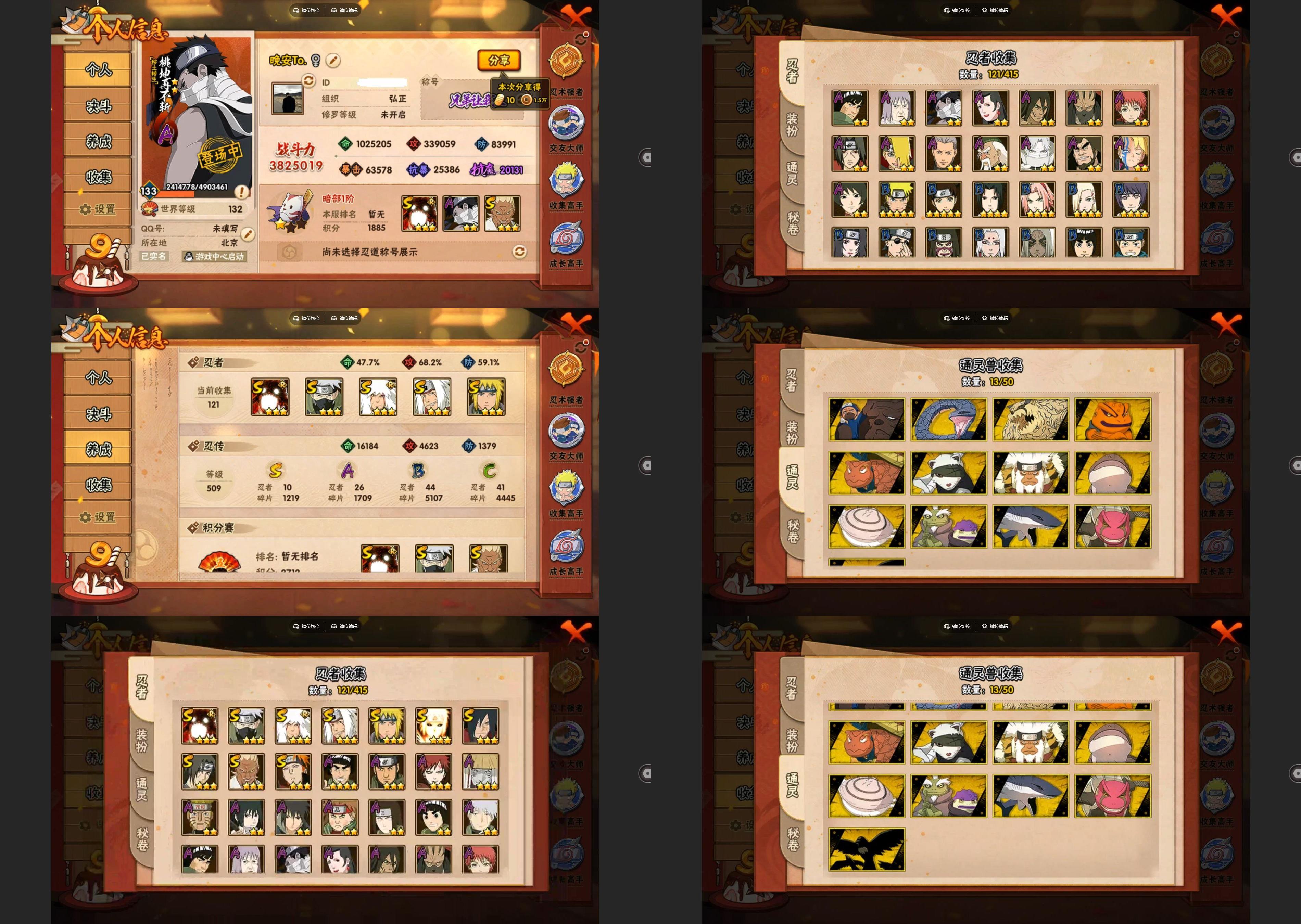13s忍/19a忍/战力701w/v9/区服1624 【s忍者】 千手柱间「秽土转生」,自来也「舞之豪杰」,药师兜「仙人模式」,宇智波斑「秽土转生」,艾「三代目雷影」,宇智波斑「白面具」,半藏「秽土转生」,千手扉间「秽土转生」,纲手「百豪」,神秘面具男,猿飞日斩,大蛇丸,纲手, 【a忍者】 宇智波泉奈,奇拉比「忍界大战」,宇智波佐助「须佐能乎」,迪达拉「秽土转生」,漩涡鸣人「九尾查克拉」,千代「近
