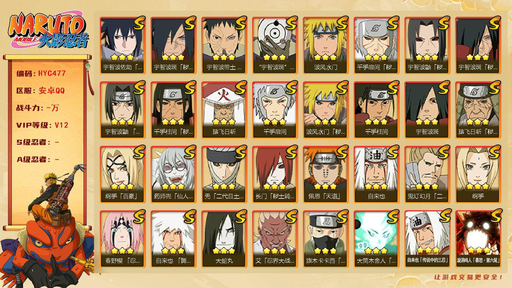【hyyt214】v0/s忍12/a忍22/日向宁次「忍界大战」/博人传达鲁伊/死司飞段/宇智波鼬/永恒万花筒佐助/5星猿飞阿斯玛/2星长门「青年」/2星蝎/秽土日斩/佩恩/3星漩涡鸣人·宇智波佐助/波风水门/忍战丁次/5星迈特凯/博人桃式显现/忍战奇拉比/3星我爱罗「疾风传」/2星李洛克「忍界大战」/长十郎/豪杰自来也/死门凯/2星飞段/忍战樱/宇智波鼬「夏日限定」/2星迪达拉/2星巳月「仙