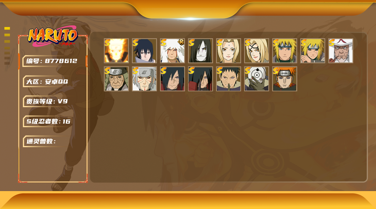 [8778612]v9 16s 可二次 s级忍者:宇智波斑「秽土转生·解」宇智波佐助「永恒万花筒」漩涡鸣人 「九喇嘛连结」宇智波带土 「忍界大战」自来也 「舞之豪杰」宇智波斑「秽土转生」“宇智波斑” 「白面具」千手扉间「秽土转生」纲手「百豪」波风水门「秽土转生」猿飞日斩「秽土转生」佩恩「天道」猿飞日斩波风水门大蛇丸纲手