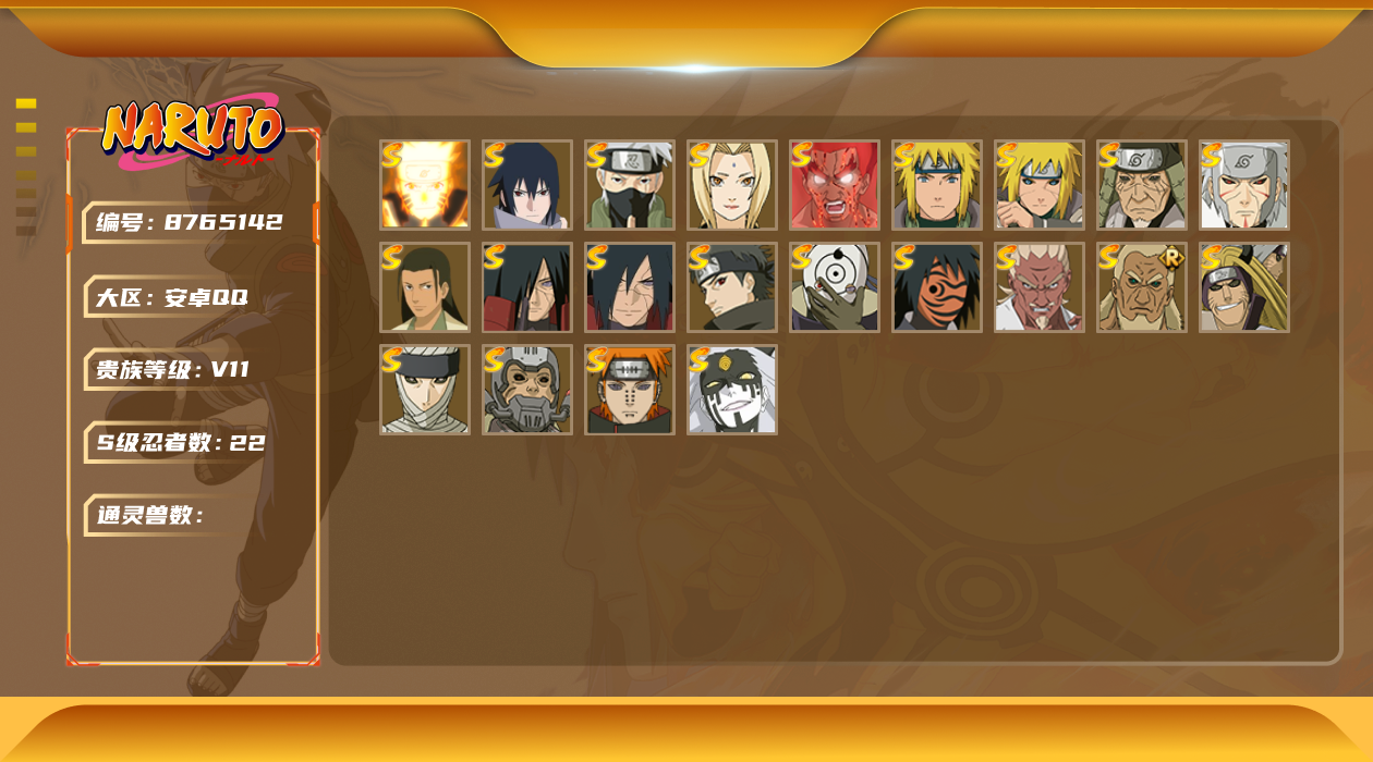 [8765440]v10 12s 可二次 s级忍者:宇智波斑「秽土转生·解」千手柱间·木叶创立宇智波佐助「永恒万花筒」神秘面具男 「红夜之刃」春野樱 「忍界大战」自来也 「舞之豪杰」旗木卡卡西「须佐能乎」“宇智波斑” 「白面具」猿飞日斩「秽土转生」猿飞日斩波风水门纲手